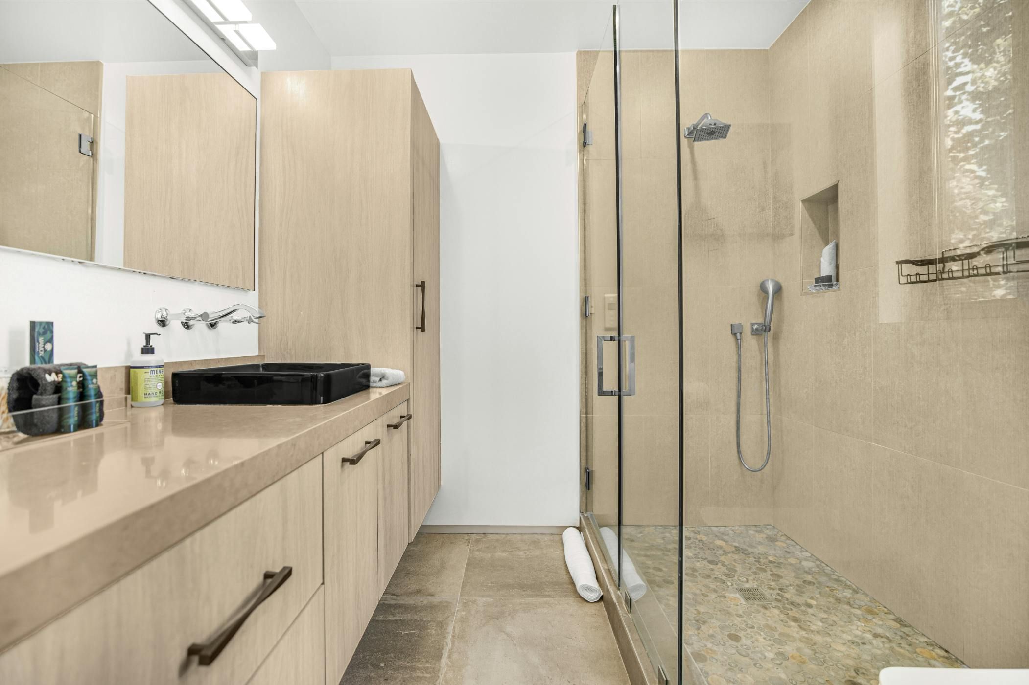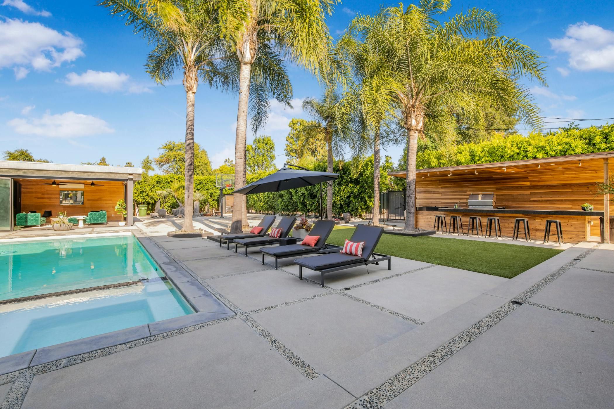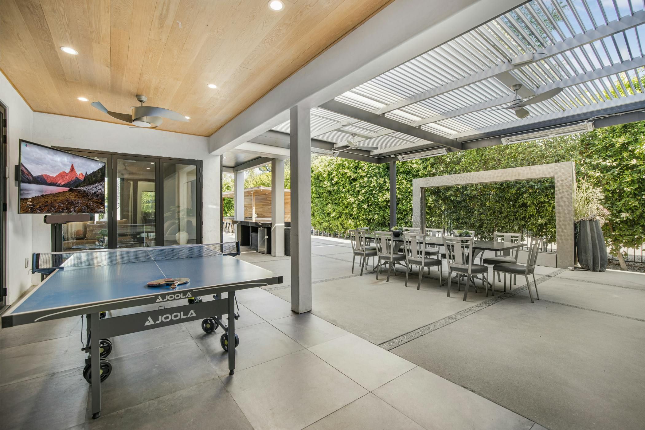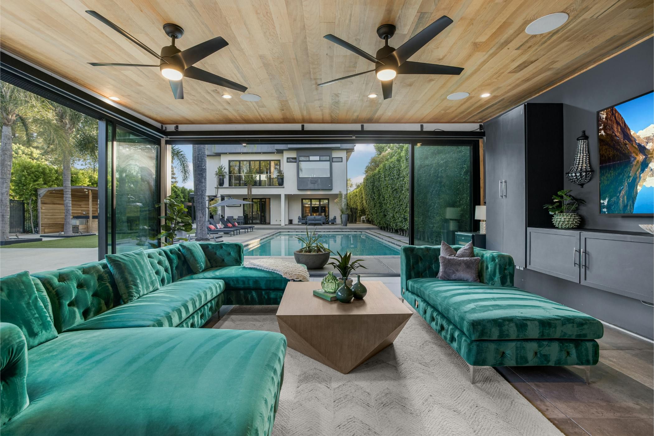 This LA home certainly has the wow factor. Perfect for a group getaway, the resort-style garden boasts a private pool, sauna, spa, cabana, barbecue station, and bar. And if you’re feeling active, the private gym, basketball net, and ping pong table await. While outside is well set up for outdoor living, inside has plenty to shout about too. Here you’ll find a choice of comfy seating areas, a high-end kitchen – your host can even arrange for a private chef to come and cook for you – and a main bedroom with a spa-style en-suite. For daytrips, the Getty Center is a ten-minute drive away, and Santa Monica Beach can be reached in twenty-two minutes.