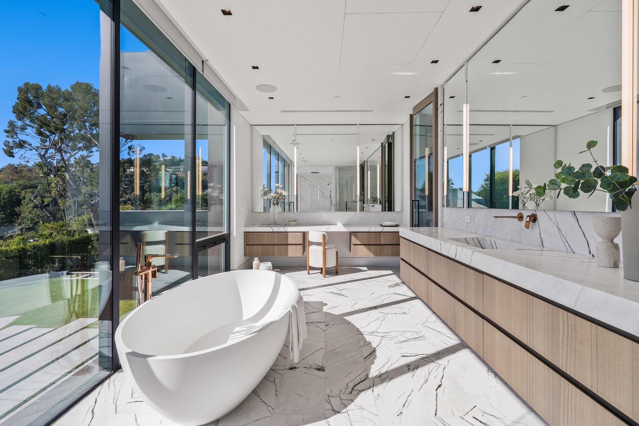 A masterpiece of architecture and design, this contemporary estate delivers the height of luxury living in the Holmby Hills. Spread across multiple levels with lift access, the rooms set the tone for total relaxation and family entertainment. From the outdoor pool and Jacuzzi to the indoor gym and wellness area, this is the perfect setting for a refreshing retreat. You’ll also find a home theatre, a temperature-controlled wine cellar and an office, making this is a great option for business, work and pleasure. There is a concierge service offering a range of extra services. Plus, it’s just ten-miles to Santa Monica and Venice Beach.