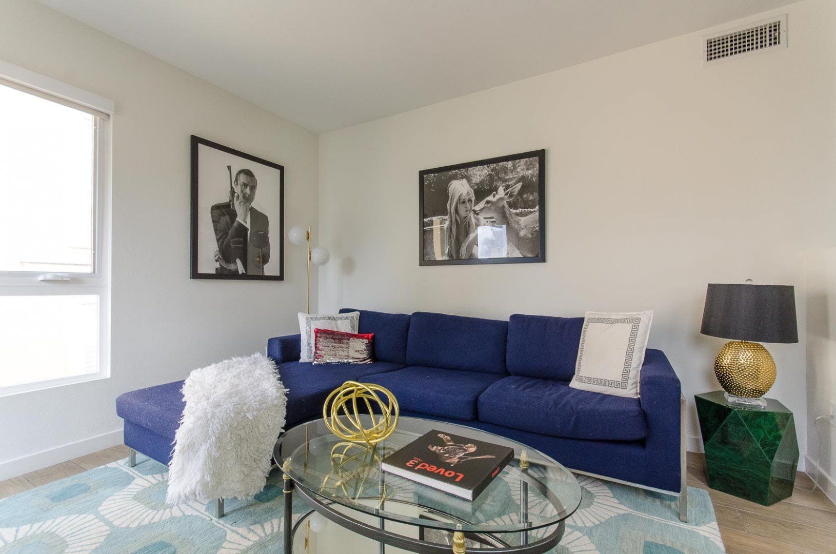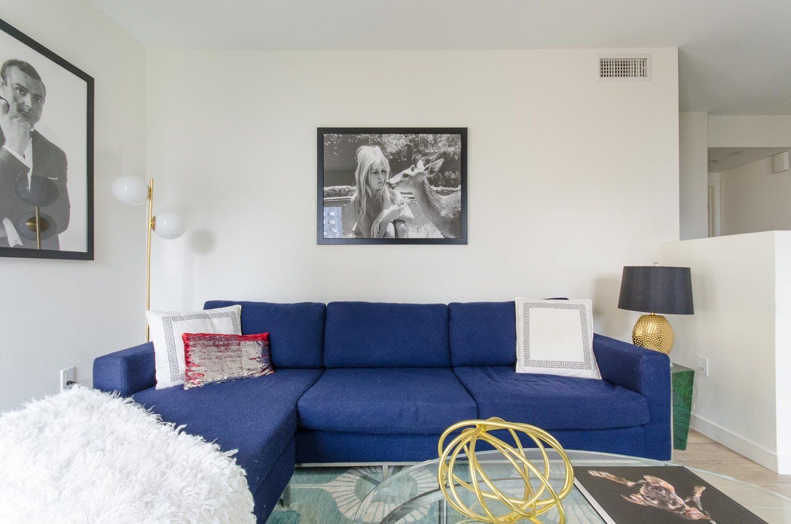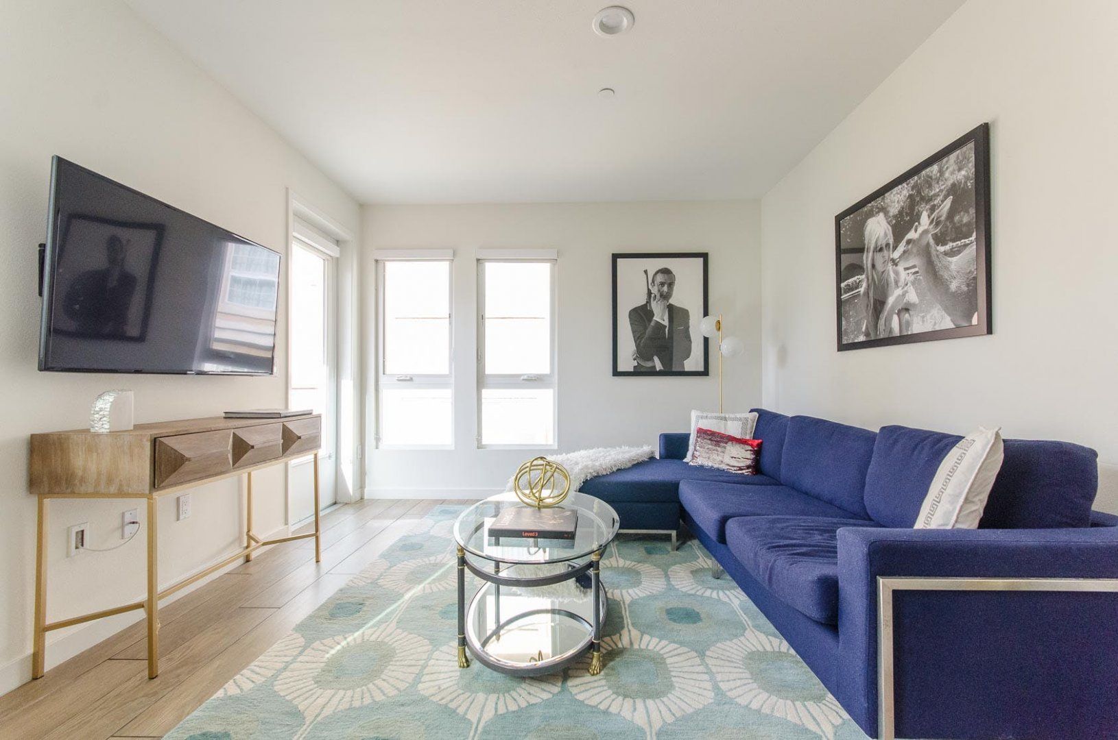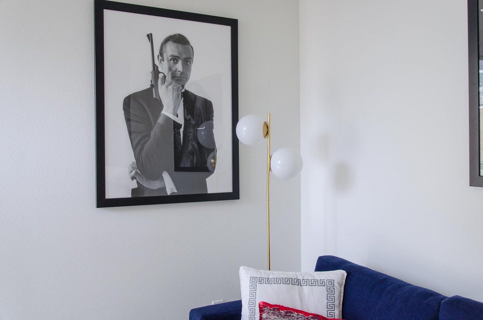 For a purpose-built apartment, this home is remarkably characterful owing to its colourful interior design and memorable artworks, like the large black and white poster of Roger Moore. The communal area feels bright and airy due to the open-plan layout that meets with the well-equipped kitchen and there's a peaceful spot to get some work done too. This won't be for those looking for something typically luxurious, but is great for those wanting a cheerful base in an exemplary location.