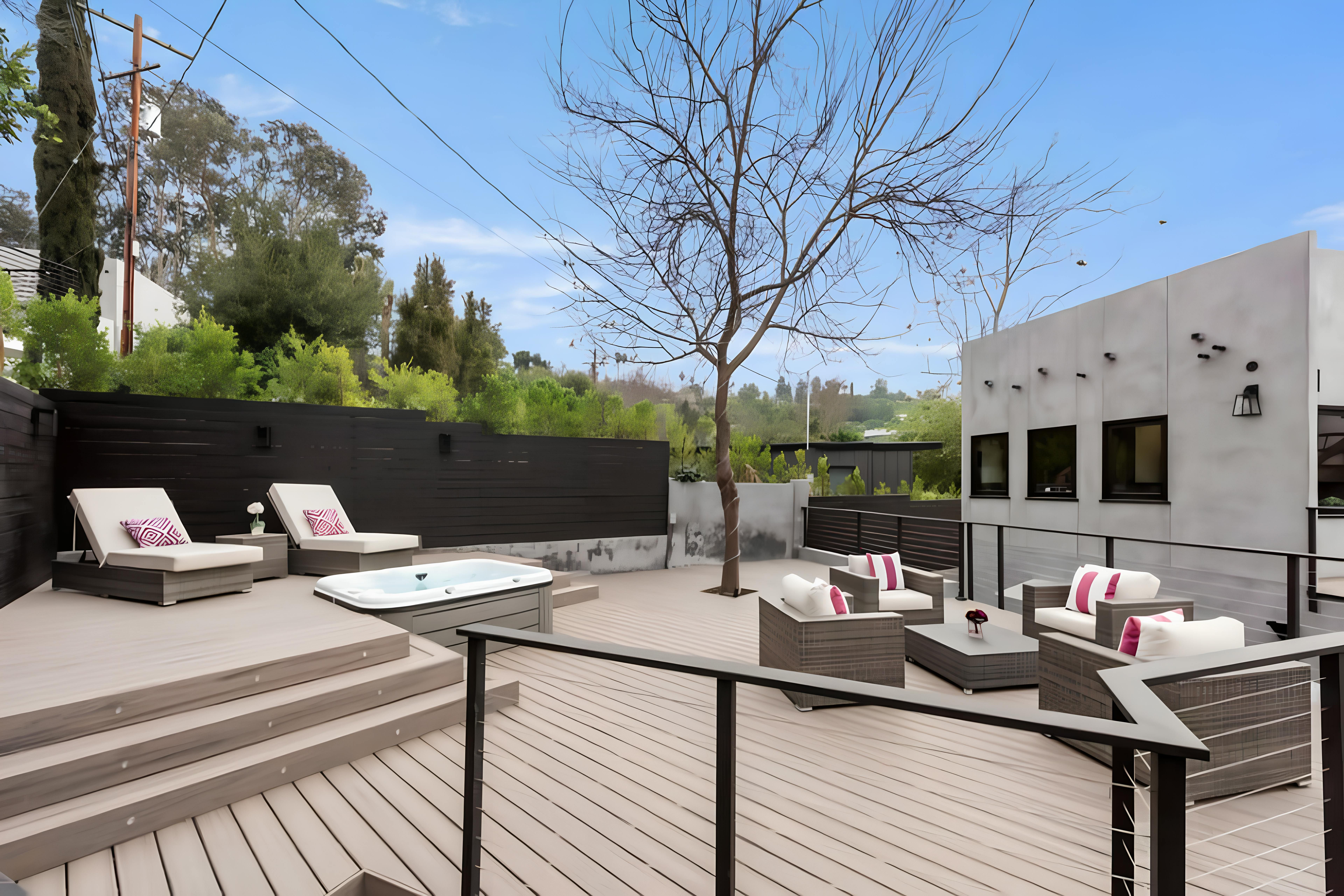 Situated in Studio City, close to smart boutiques, stylish restaurants, and lively nightlife, this home has everything you need to live like a local. Outside, you can relax around the firepit after a busy day or enjoy pre-dinner drinks on the roof terrace, which offers panoramic views of the surrounding scenery. Meanwhile indoors, the open-plan living area offers room to cook, dine, and unwind on the sofa. And with space to stretch out, this pad is a great pick for a group getaway or family trip to LA.