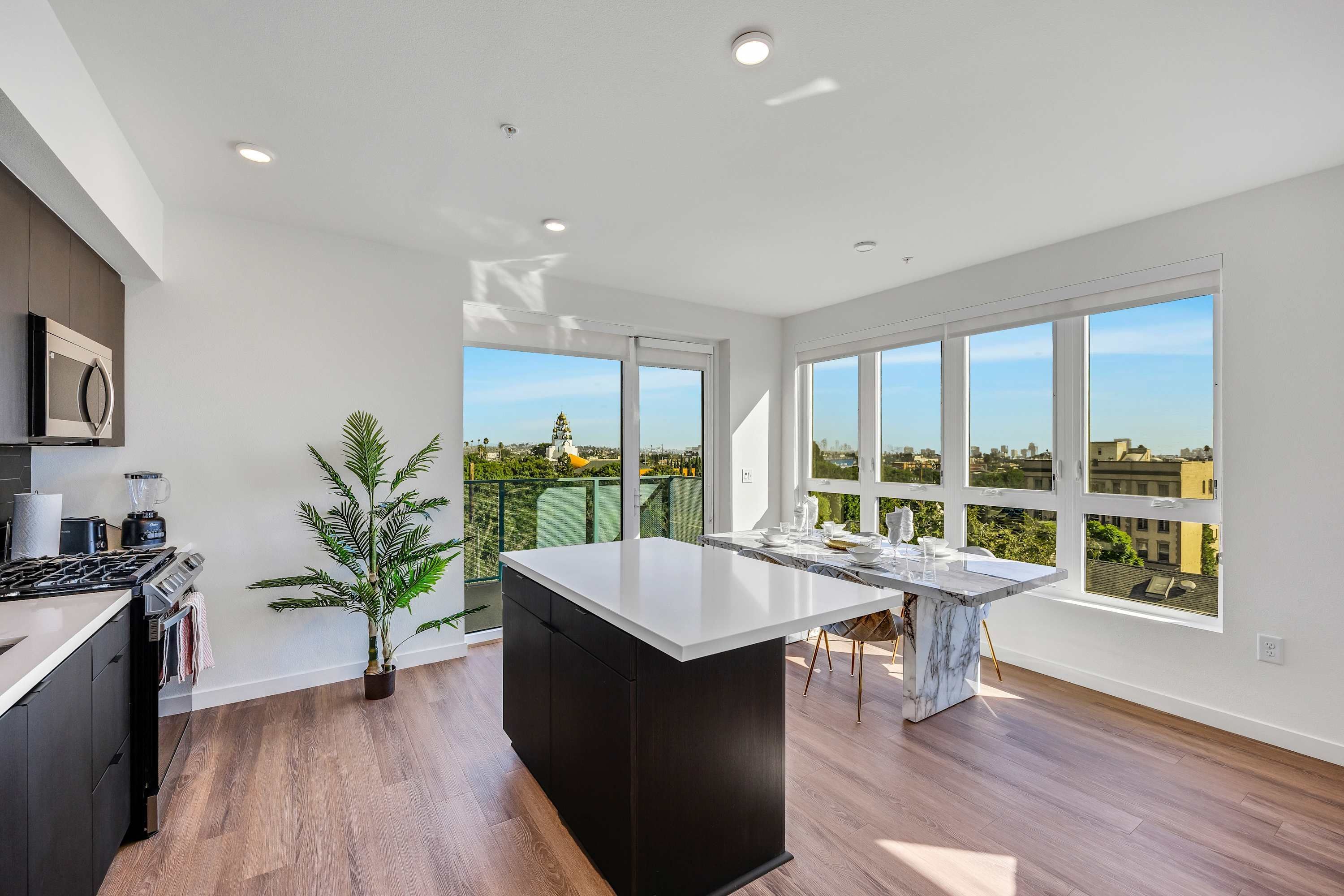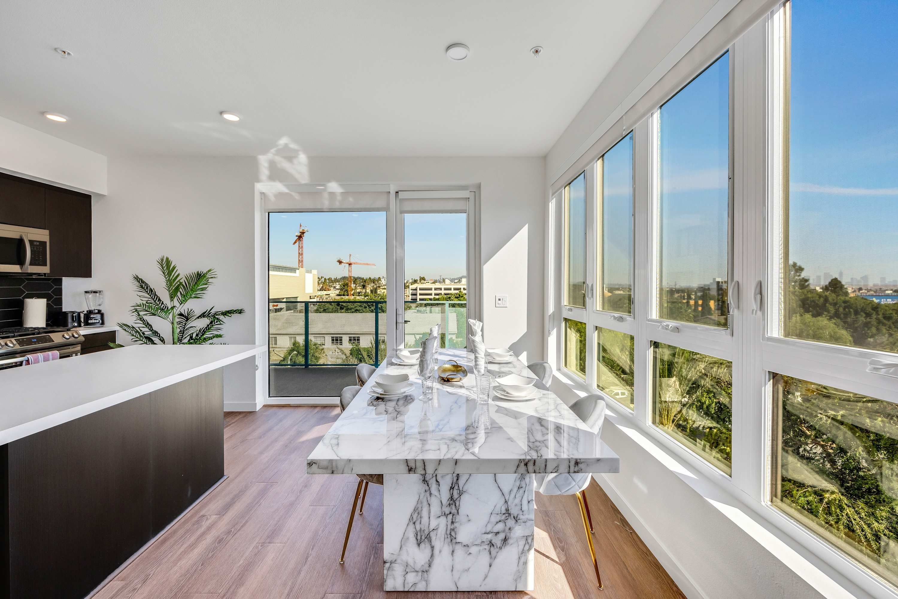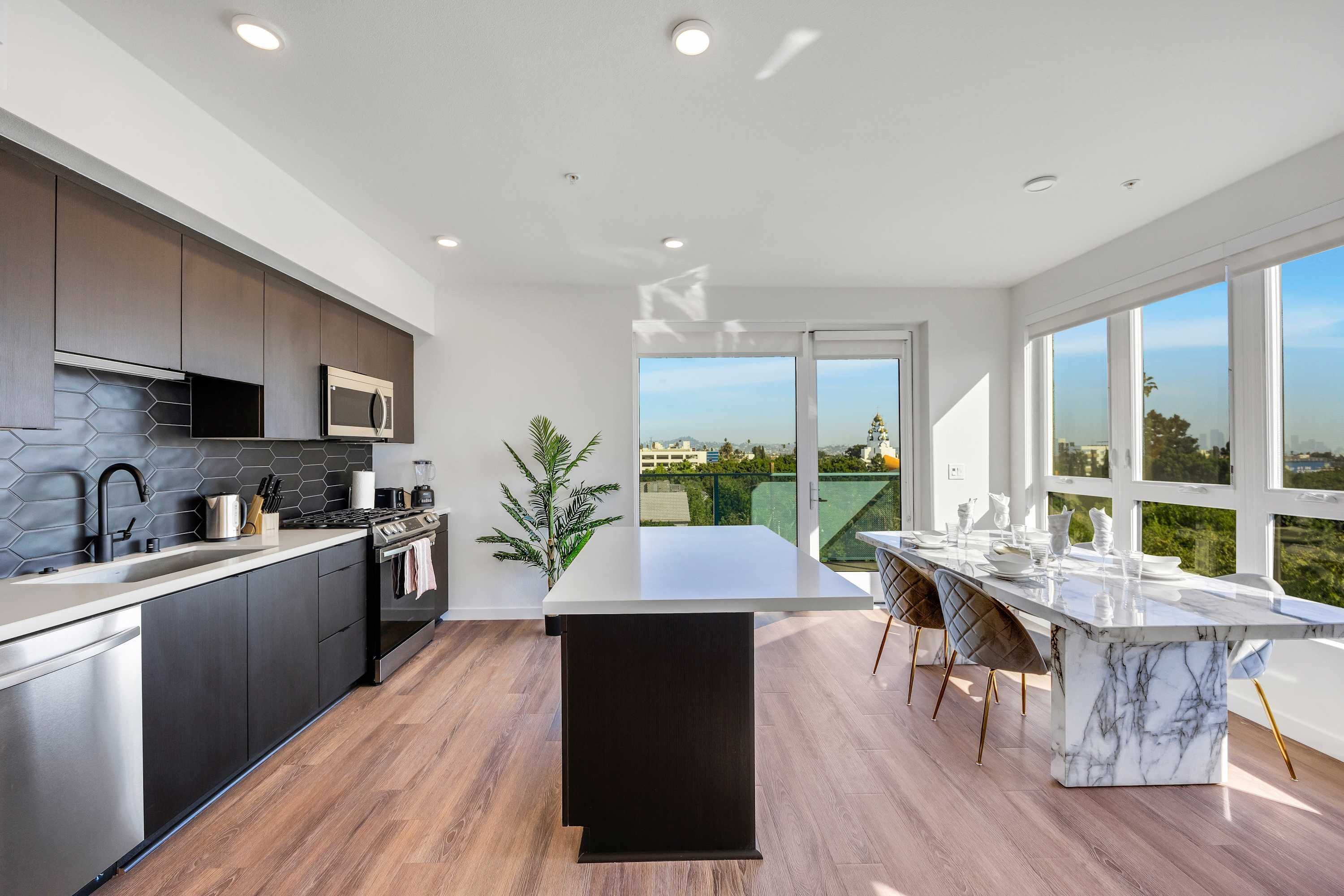 Guests rave about the hotel-worthy perks of this pet-friendly LA apartment complex, and it's easy to see why. There's a shared pool to catch a few rays, a rooftop terrace for sunset drinks (although the private balcony back at the stylish apartment is just as inviting) and one of the biggest gyms we've seen. Need to work while you're here? You’ve got co-working spaces and bookable meeting rooms. When it’s time to explore, the Grove, Griffith Observatory, and Universal Studios are all a short drive away. But if you'd rather keep things local, there are grocery stores and coffee spots right on your doorstep.