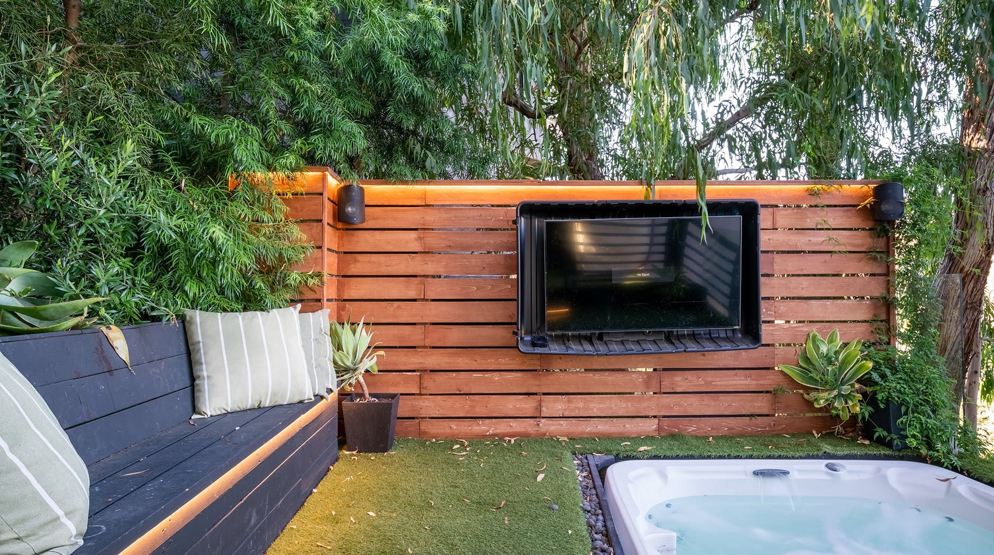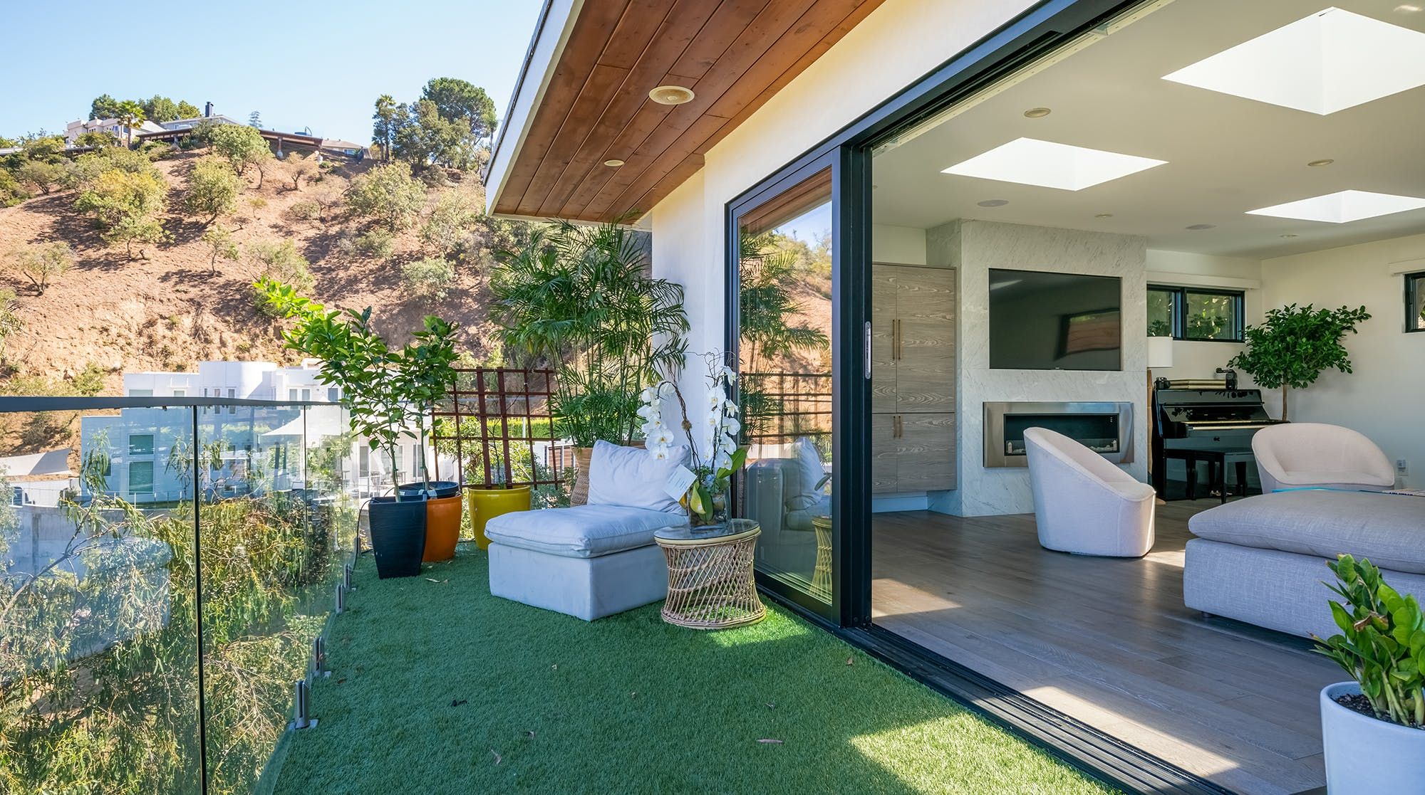 On the lower level, you may not have the same staggering views as the upstairs, but get ready to step inside a real artist retreat. With a prestigious recording studio where Grammy-nominated songs were produced, powder room, grass side yards featuring an in-ground hot tub, gas fire pit and lounge area – it's safe to say it's impossible to get bored here.