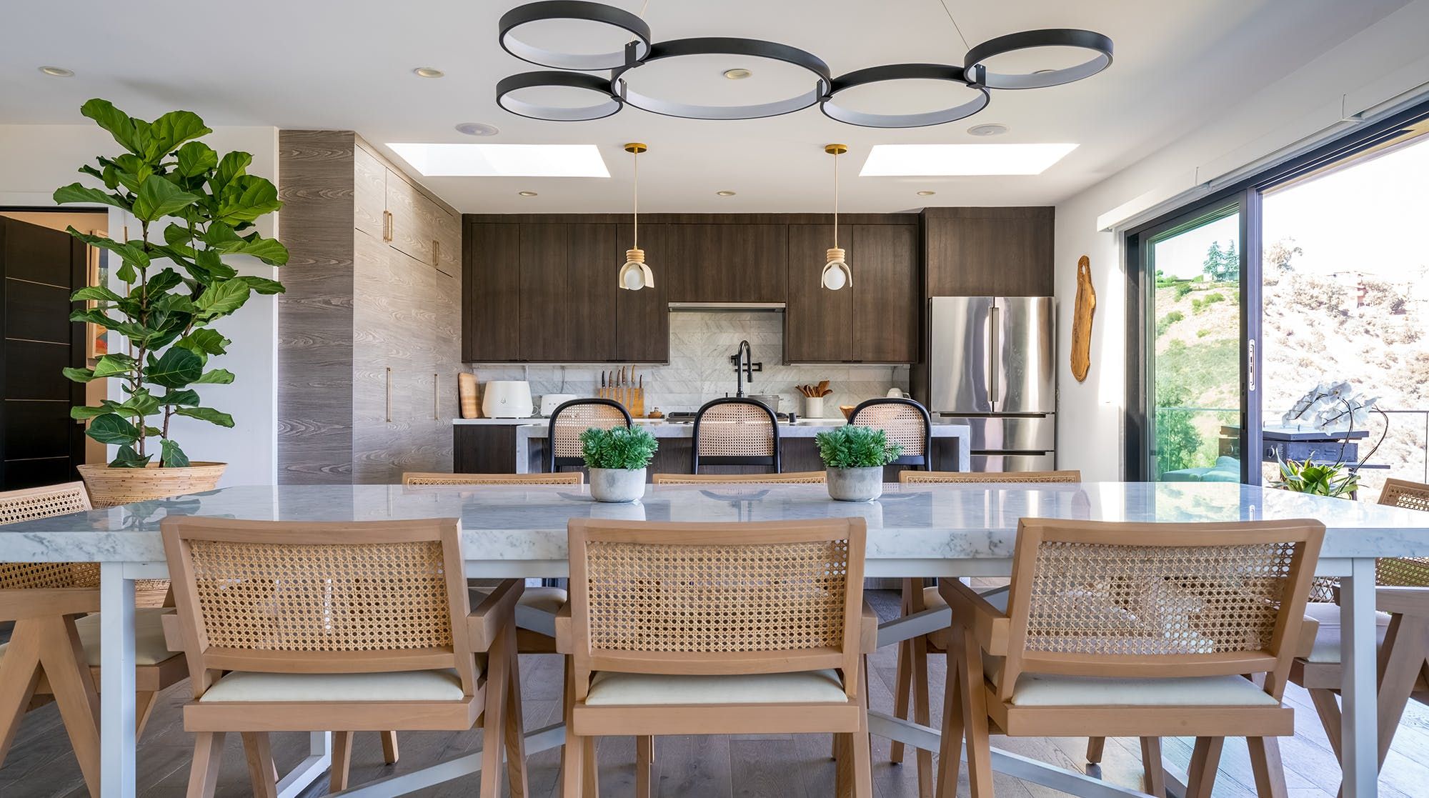 But with so much on offer inside the house, we can see why you may find it hard to leave the premises. First, let's talk about the impressive open floor plan boasting jaw-dropping east canyon views from every angle. So whether you're rustling up pancakes in the top-of-the-range kitchen or sinking into the oh-so plush corner piece after a day out in the city – this space is sure to meet your every need.
