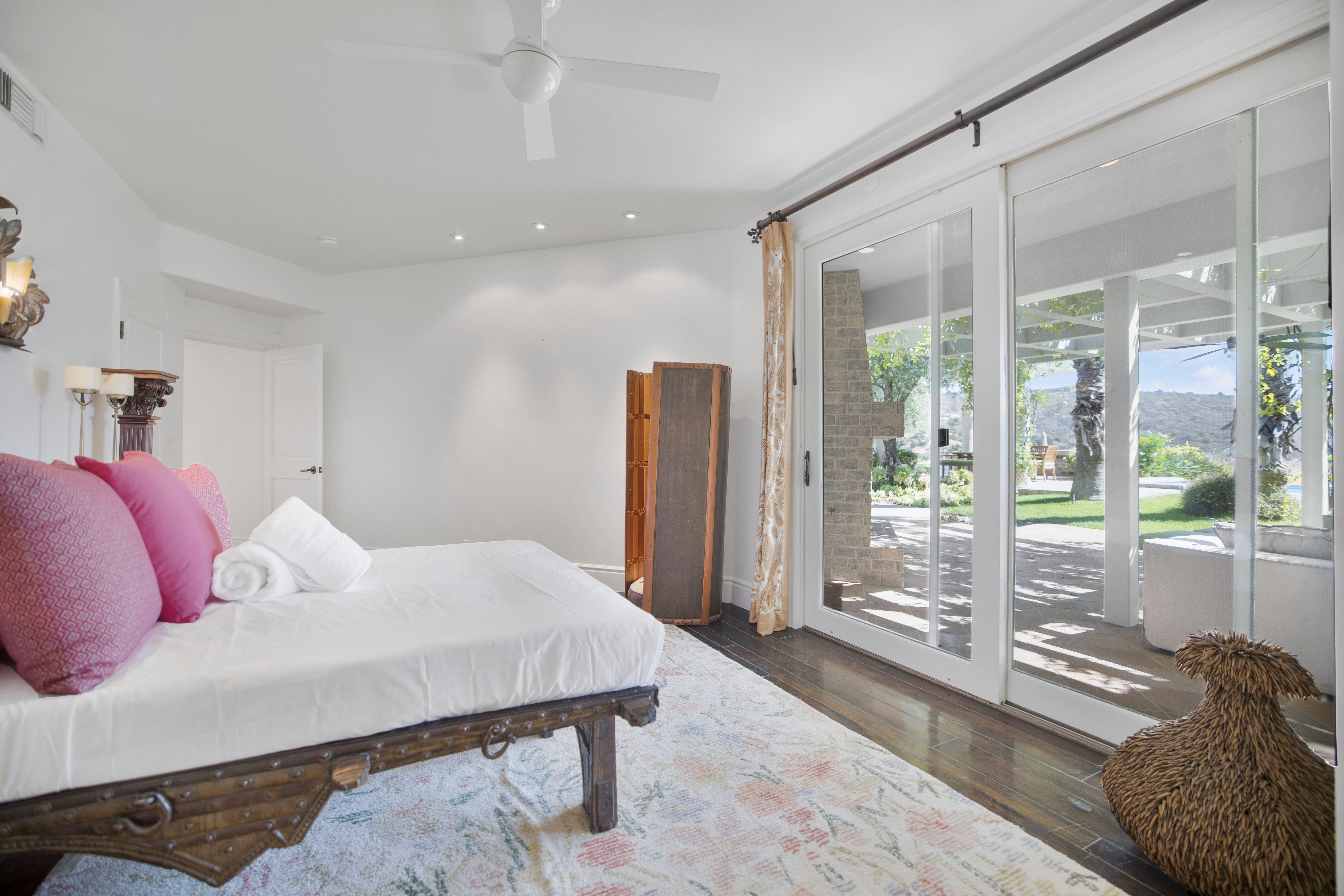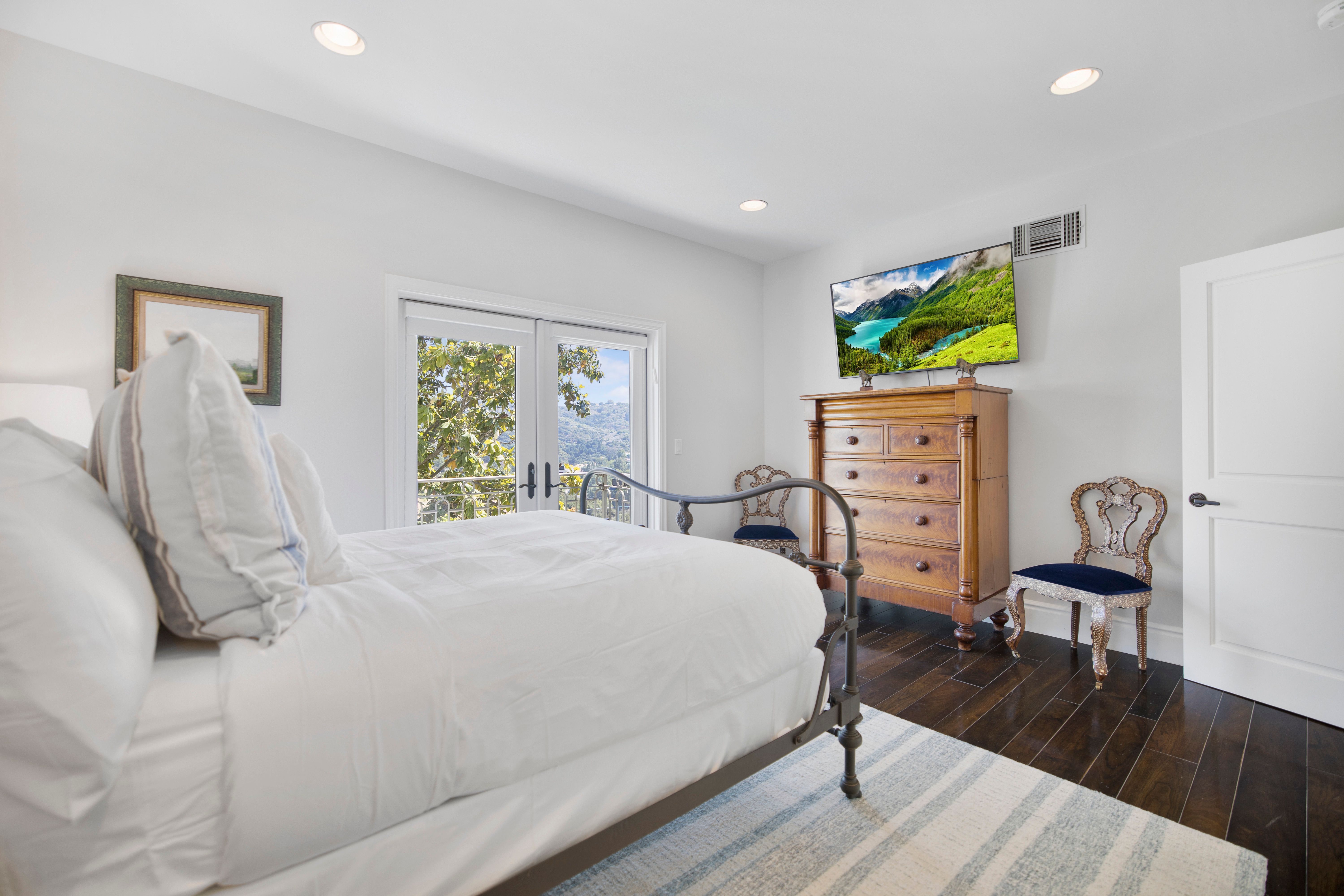 Two words: wow factor. This six-bedroom home is a spectacular place to stay, boasting sweeping valley vistas, plush furnishings, and lifestyle luxuries like a private gym and tennis court. It offers the perfect blend of calm and convenience – tranquil gardens and restful rooms, all within easy reach of the bright LA lights. We love the sunlit living spaces and chef’s kitchen, which also have great views of the gorgeous grounds. The master suite, with a bathtub fit for a Hollywood star, is special too. This home is only available for monthly stays – a good job really, since you probably won’t want to leave.