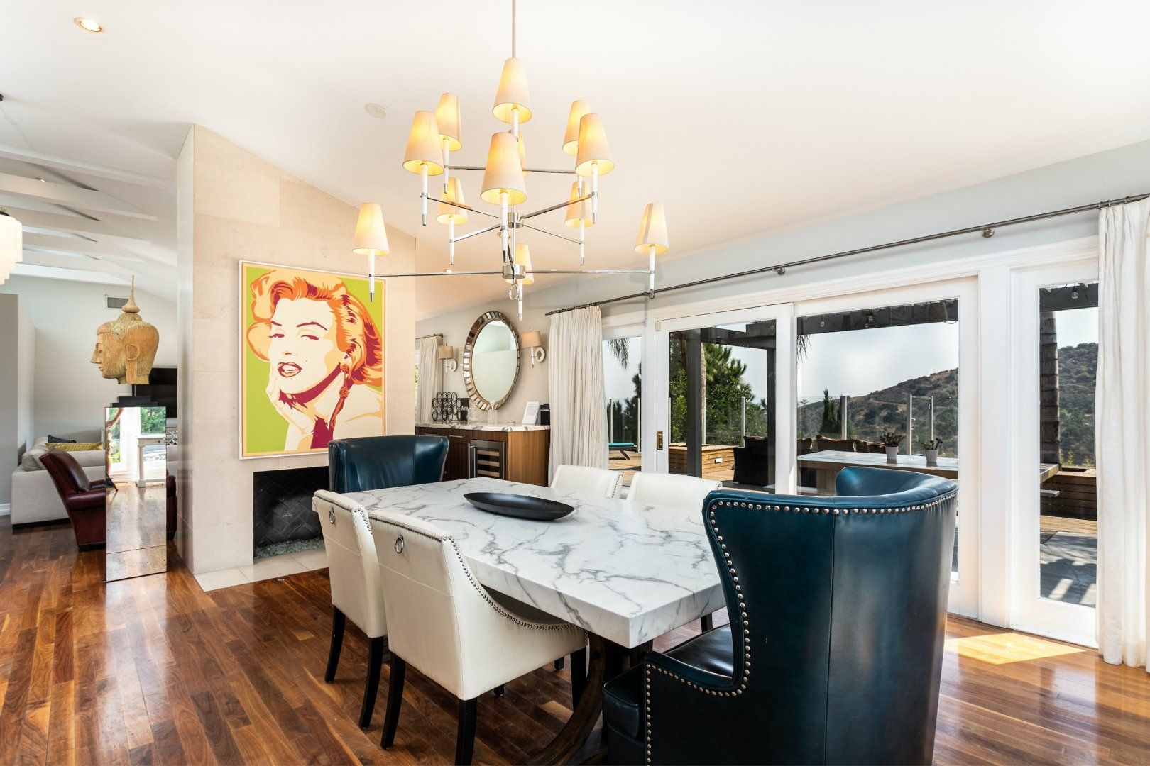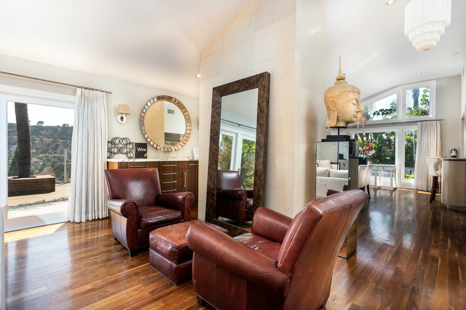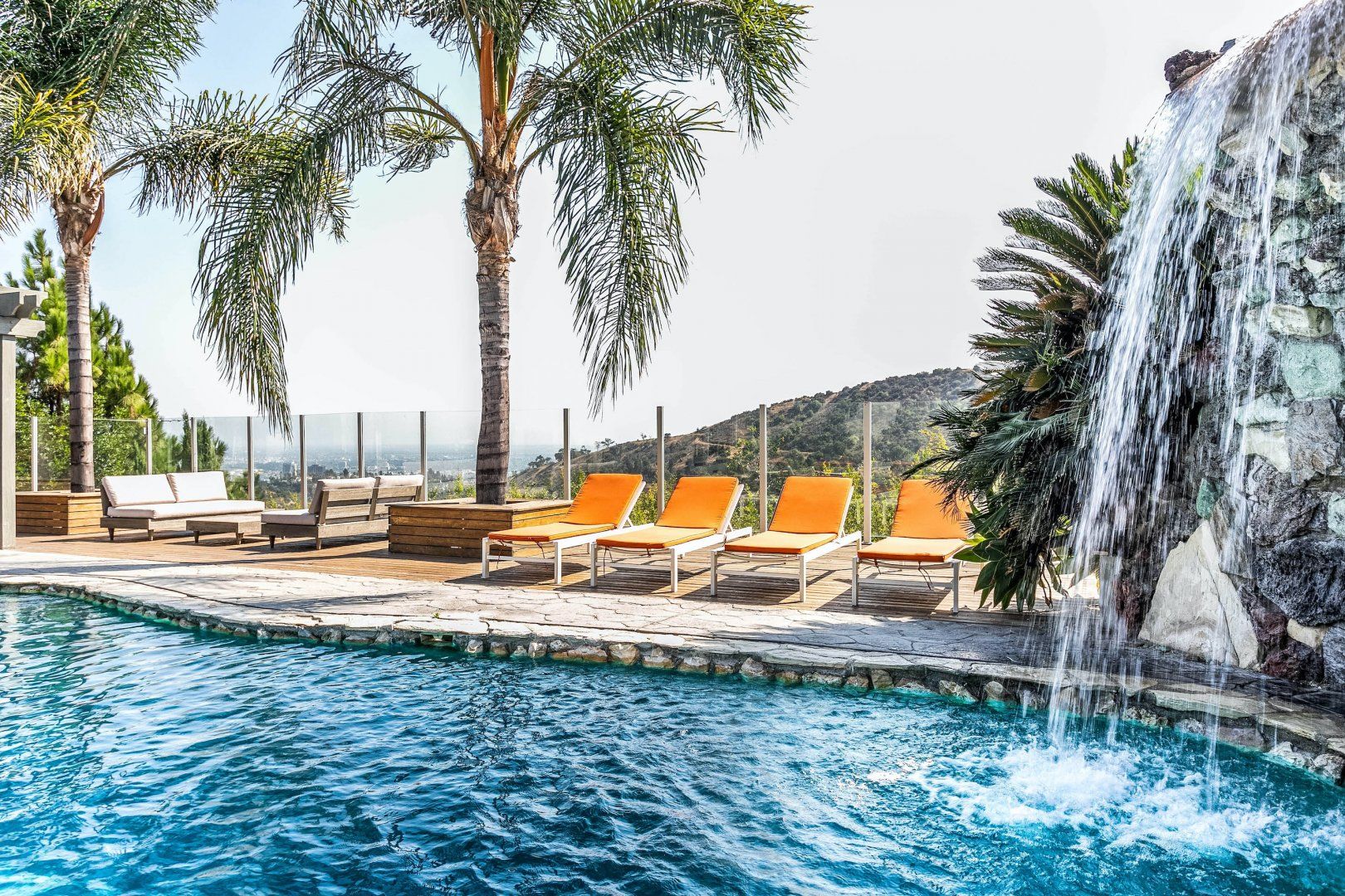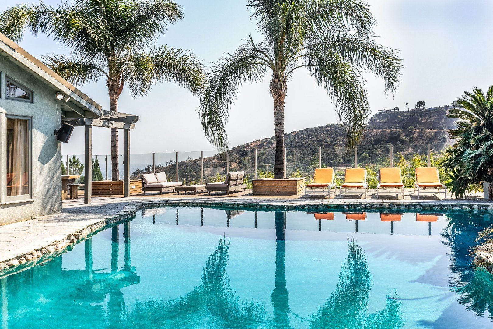 Welcome to a classic Hollywood ranch hidden away in the Hills, right beneath the iconic sign in an exclusive community of only thirty-six homes. Despite the secluded location, you can be in the heart of LA in just five minutes – where you'll find the city's hottest restaurants and most exciting attractions. The outdoor area is the undoubted star of the show here. With an Acapulco-style saltwater pool and sprawling deck, feel free to spend indulgent days lounging in the sun and cooling off in the pool. You can even continue to enjoy the water once the sun has set, thanks to underwater lighting. Inside, you'll find a well-loved home with all the original period features intact. The decor is an eclectic mix of styles that mirror your host's diverse interests – from Buddhist statues to vibrant pop art portraits and opulent leather seating – there's sure to be an element to pique your interest.