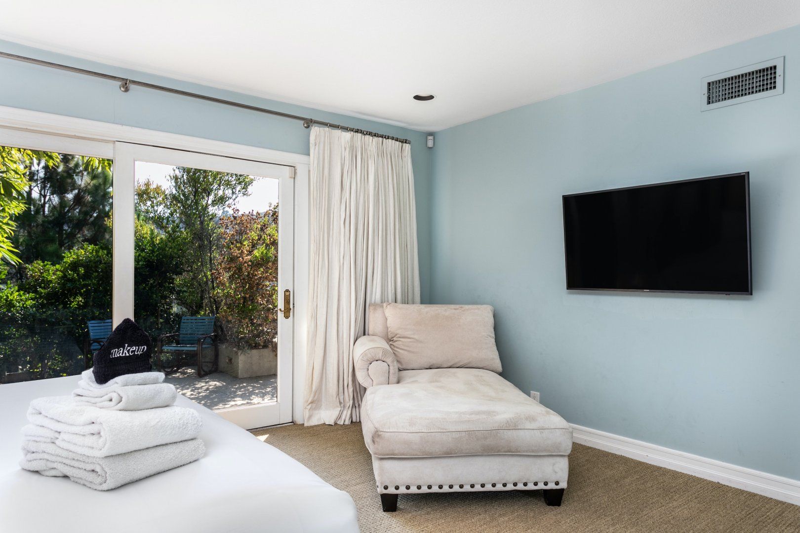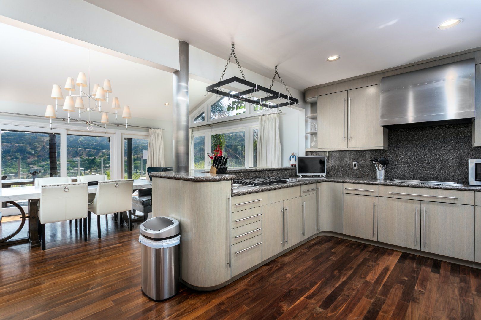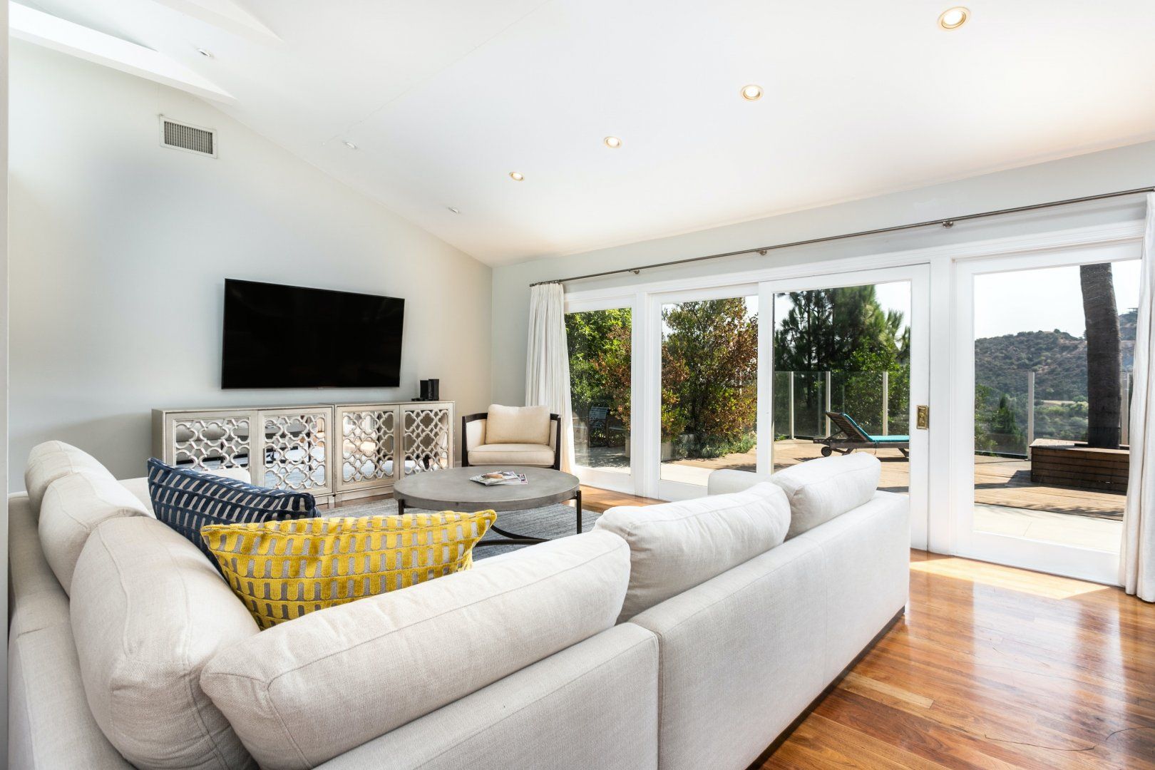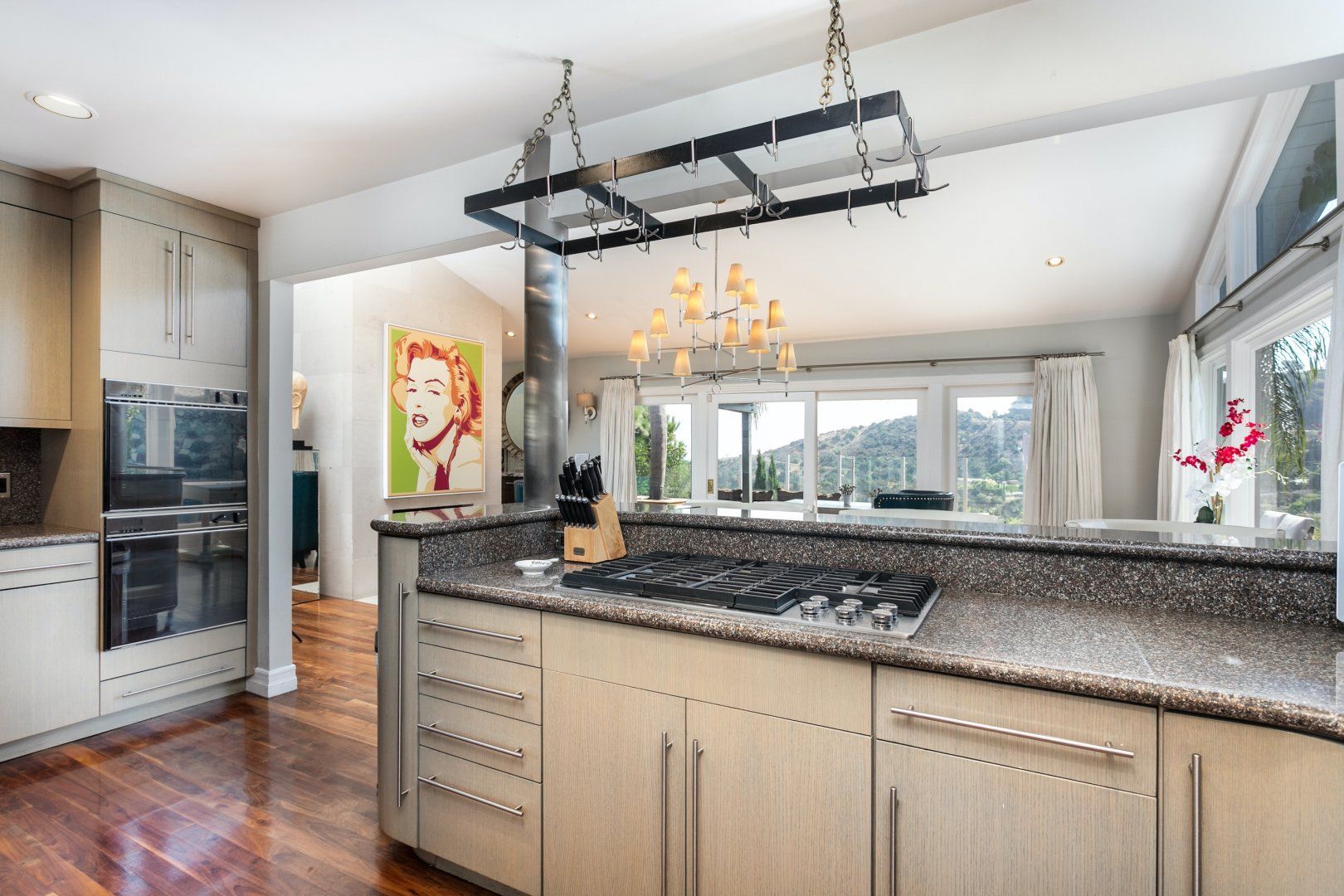 Welcome to a classic Hollywood ranch hidden away in the Hills, right beneath the iconic sign in an exclusive community of only thirty-six homes. Despite the secluded location, you can be in the heart of LA in just five minutes – where you'll find the city's hottest restaurants and most exciting attractions. The outdoor area is the undoubted star of the show here. With an Acapulco-style saltwater pool and sprawling deck, feel free to spend indulgent days lounging in the sun and cooling off in the pool. You can even continue to enjoy the water once the sun has set, thanks to underwater lighting. Inside, you'll find a well-loved home with all the original period features intact. The decor is an eclectic mix of styles that mirror your host's diverse interests – from Buddhist statues to vibrant pop art portraits and opulent leather seating – there's sure to be an element to pique your interest.