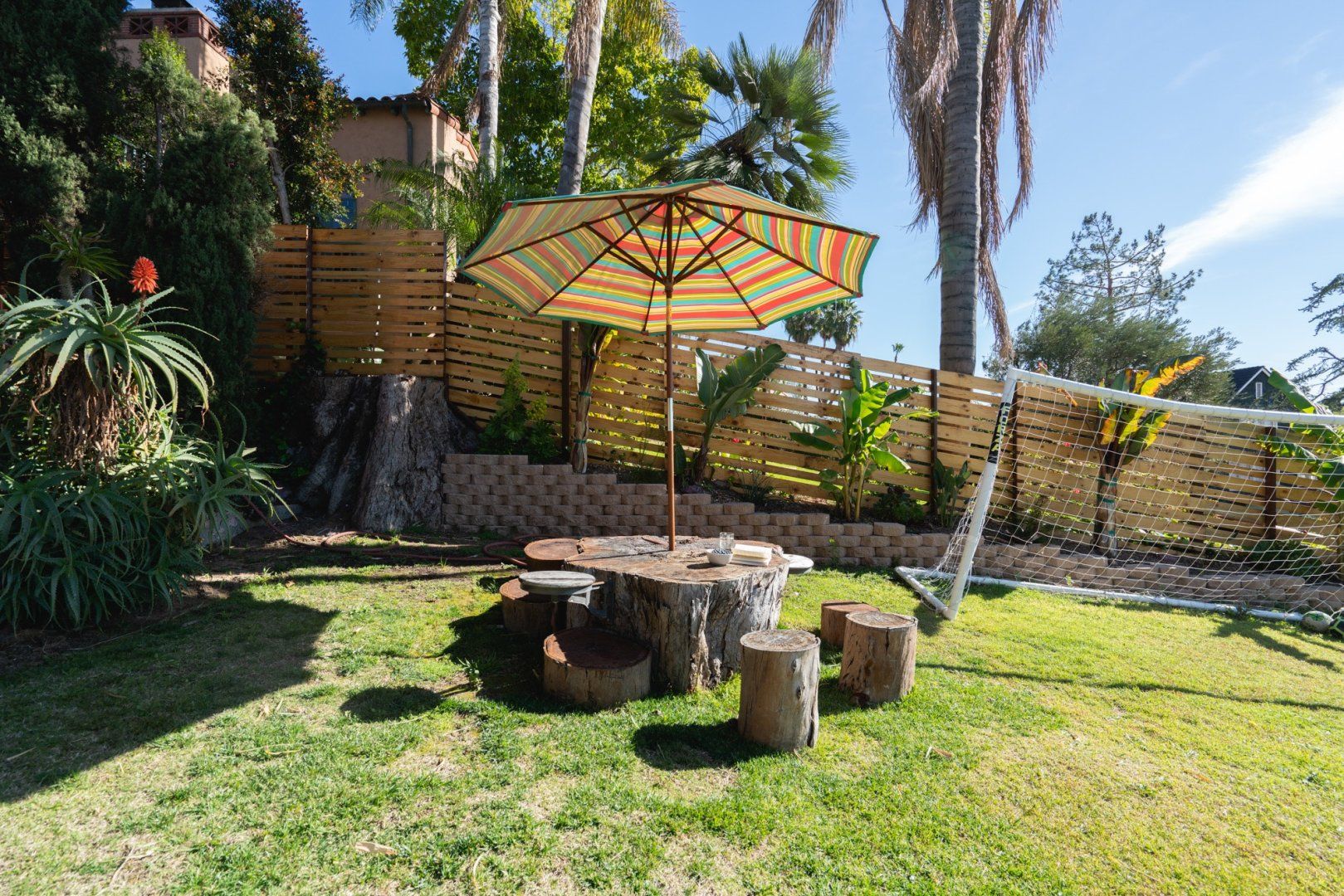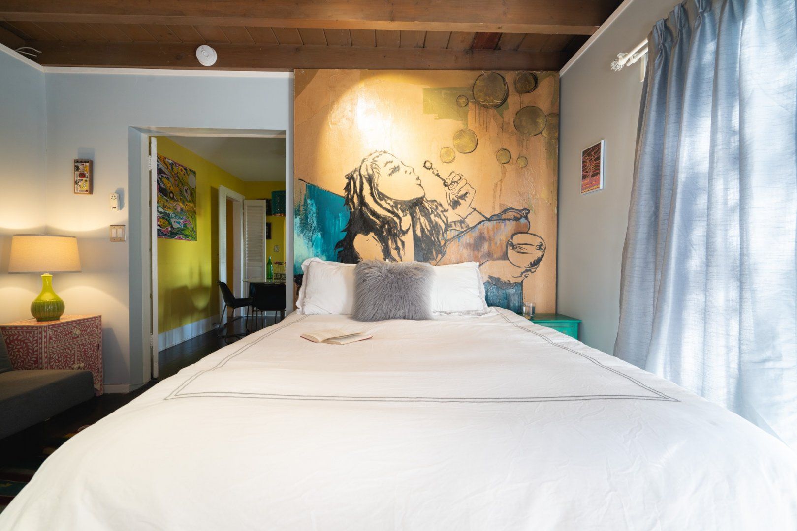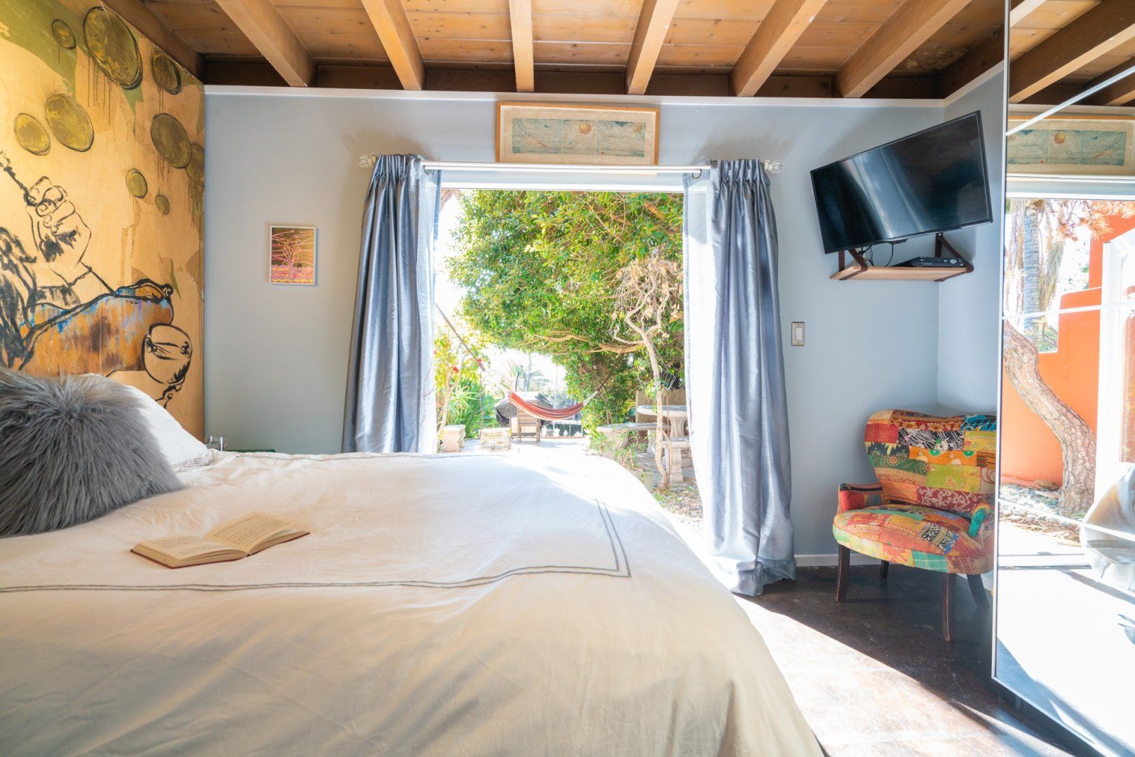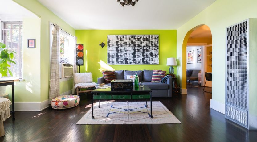 Perched on a hill in Los Feliz, this two-story home has been converted into upstairs and downstairs units perfect for a family vacay or trip with friends. This lower unit has cool, colourful and eclectic design and is filled with antique and retro collectibles. But our favourite part is the yard with the expansive views, lush greenery, a BBQ, hammock and soccer goal. We see competitive yard games in your very near future.