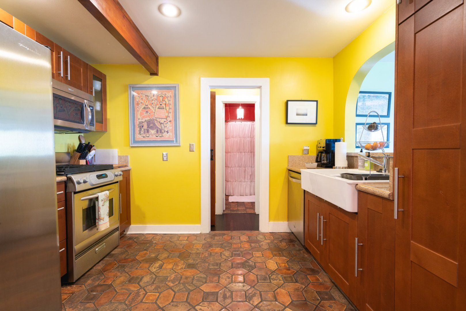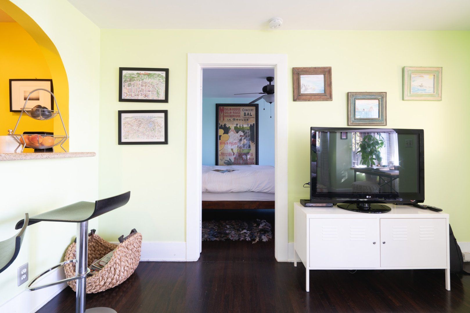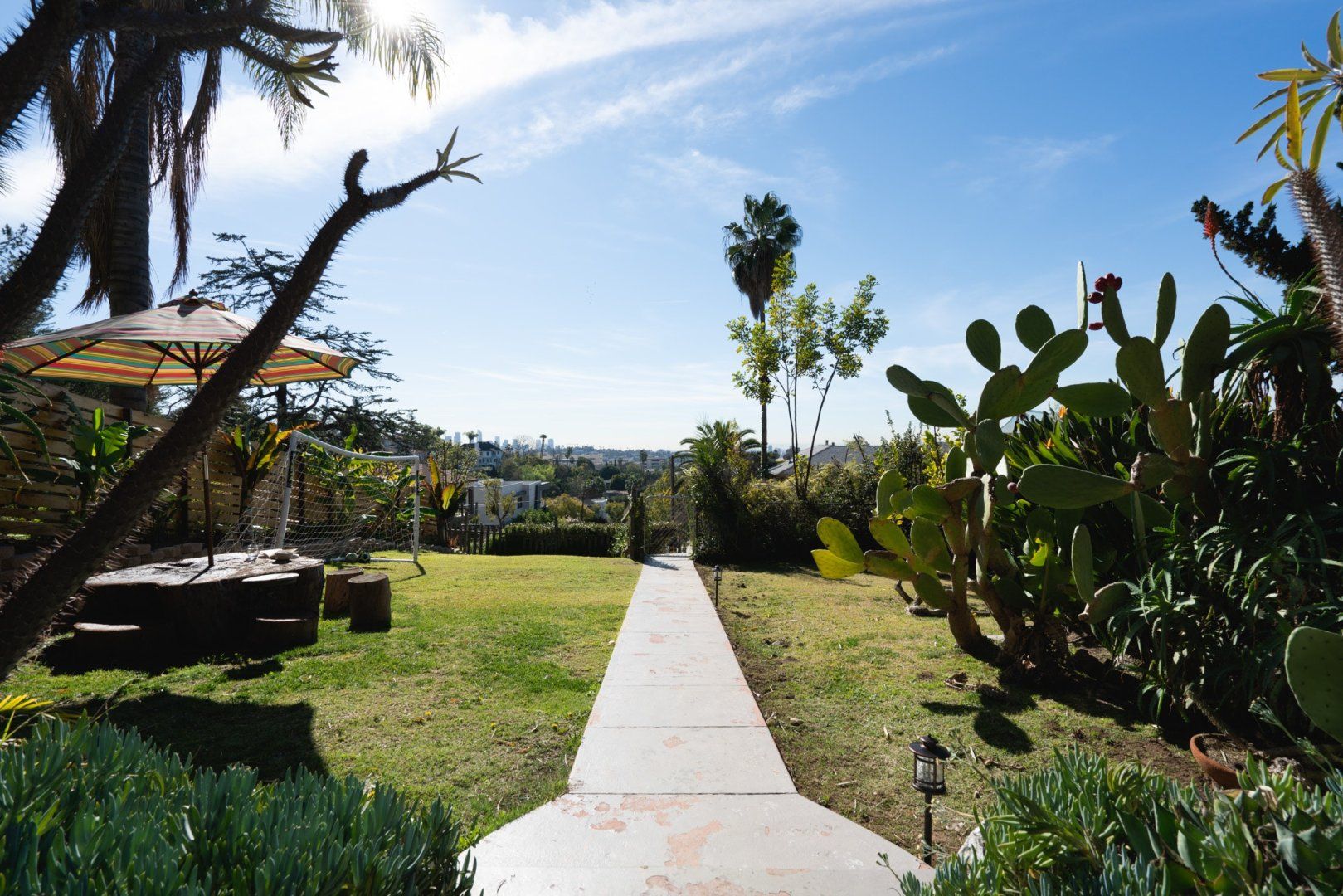 Perched on a hill in Los Feliz, this two-story home has been converted into upstairs and downstairs units perfect for a family vacay or trip with friends. This lower unit has cool, colourful and eclectic design and is filled with antique and retro collectibles. But our favourite part is the yard with the expansive views, lush greenery, a BBQ, hammock and soccer goal. We see competitive yard games in your very near future.