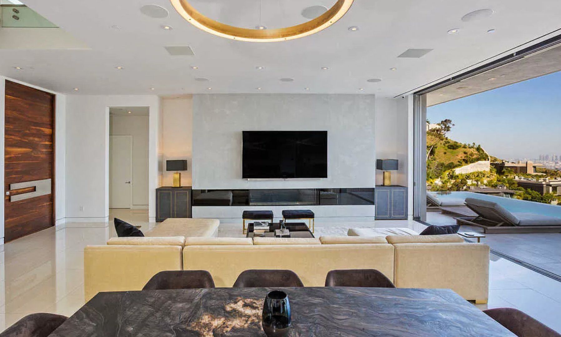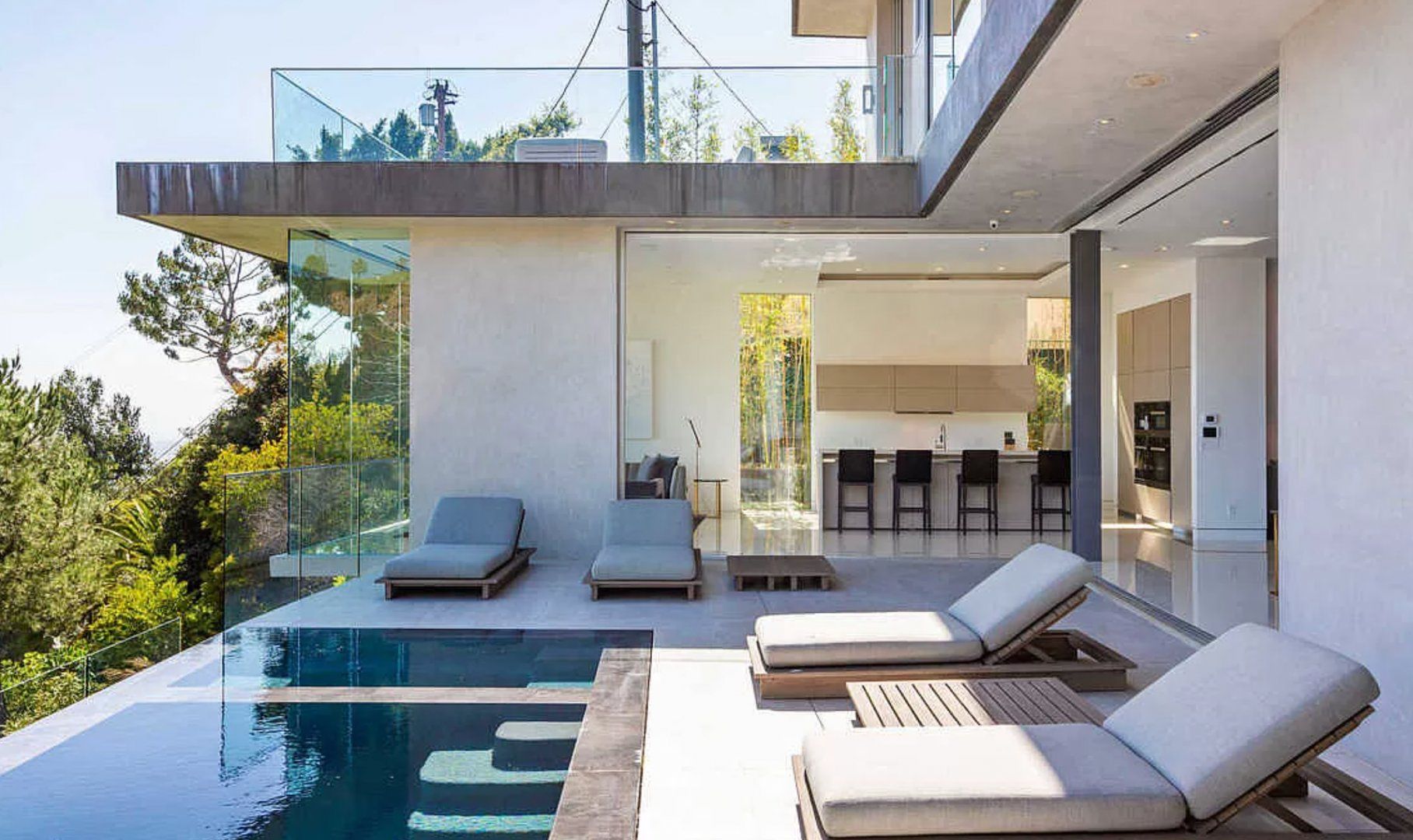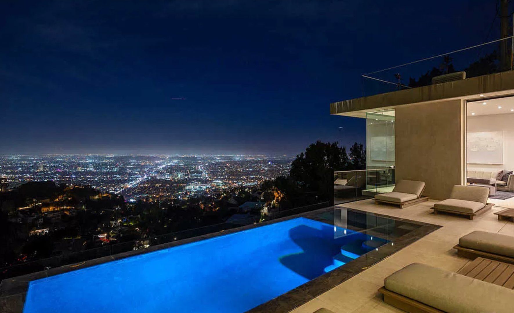 Perched high in the hills above Sunset Strip, a fifteen-minute drive from the iconic Chinese Theater and ten minutes from the trendy Melrose Avenue, this contemporary abode offers the best of both worlds.