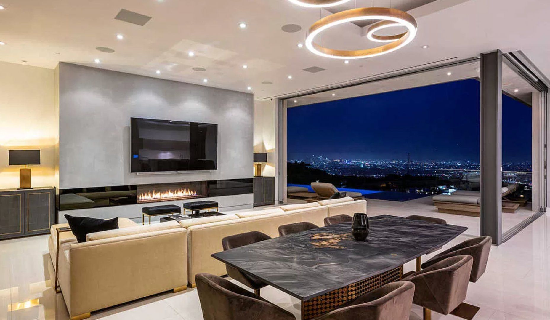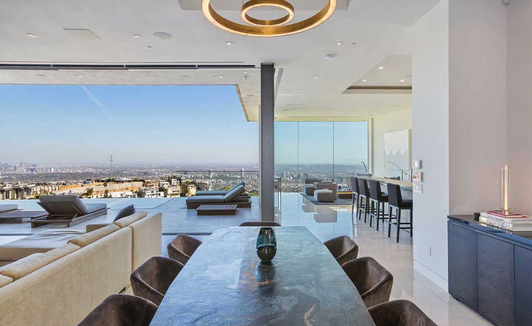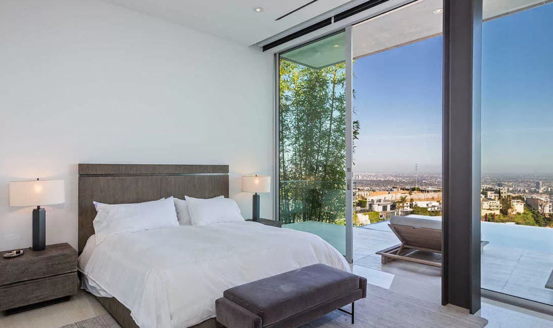 Perched high in the hills above Sunset Strip, a fifteen-minute drive from the iconic Chinese Theater and ten minutes from the trendy Melrose Avenue, this contemporary abode offers the best of both worlds.
