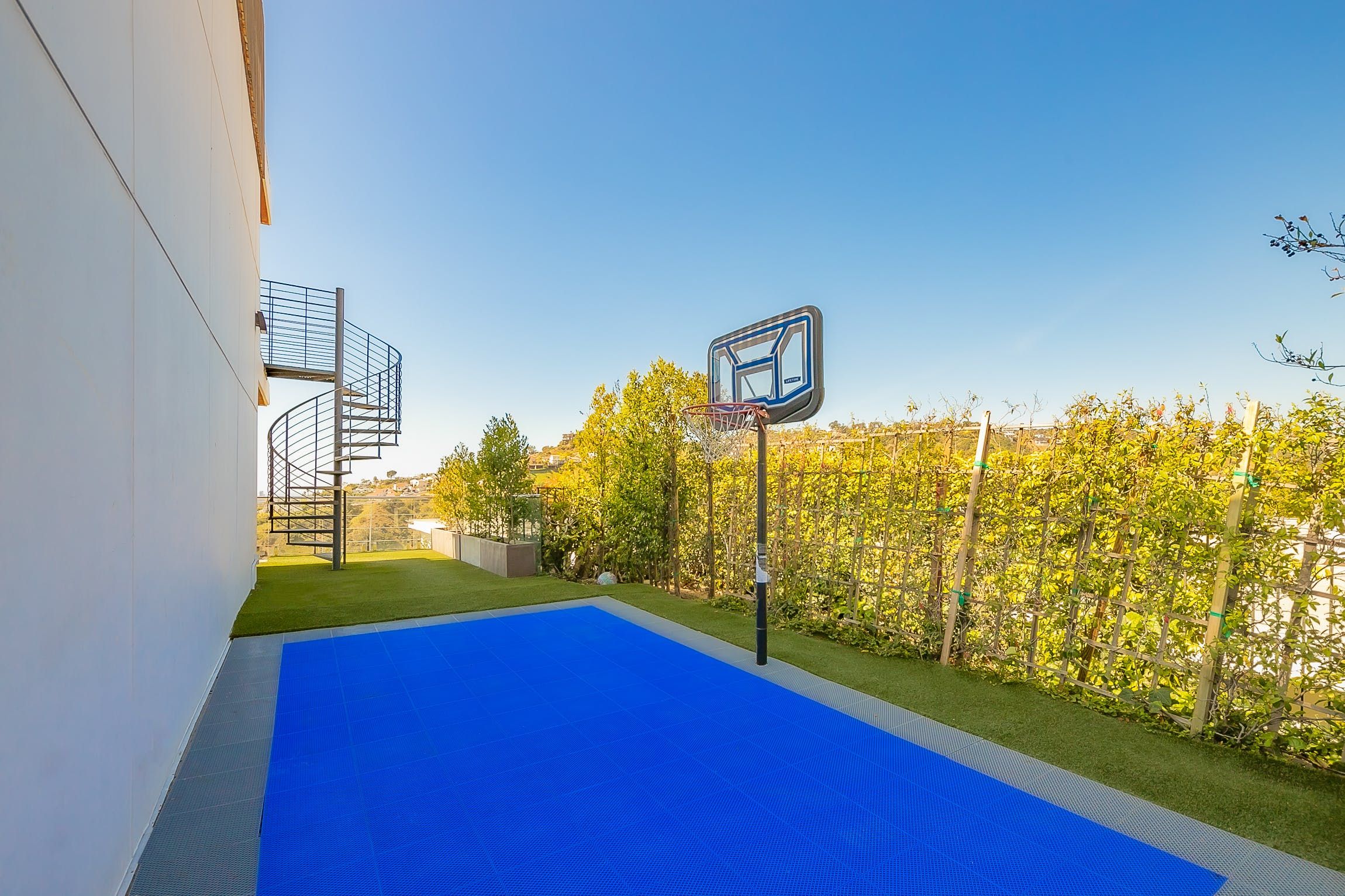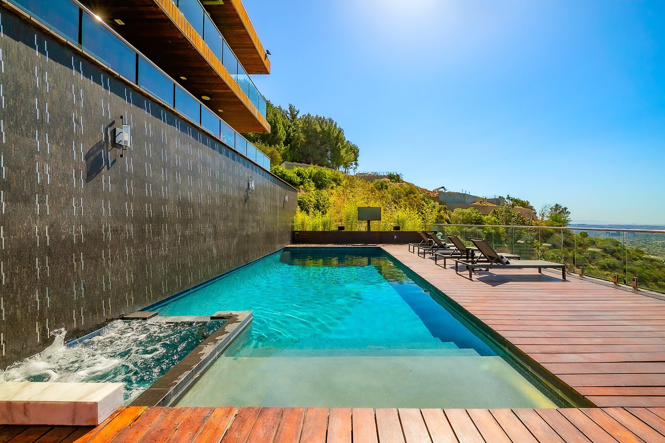 The outdoor terrace area is the star of the show here. With a pool, hot tub, barbeque area and big seating area for group feasts, we guarantee you'll be spending most of the day in this area. But the inside of the home is just as spectacular. With gigantic floor-to-ceiling sliding doors in the main common area, you'll always feel connected to the LA views no matter if you're preparing food in the kitchen or reading a book in the lounge.
