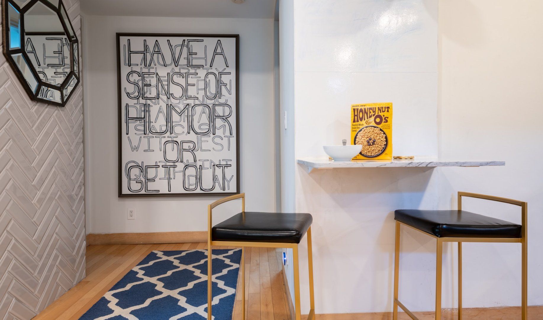 Whether you're on a romantic getaway or travelling solo for business, this guest house is a nice stomping ground to settle into. It's been beautifully designed with high-end finishes to ensure a comfortable stay. We're looking specifically at that eighty-inch television, and California-kind bed, plus the artwork and rugs that tie it all together. Situated in West Hollywood, you're on a quiet side street yet plenty close to all the areas restaurants and bars.