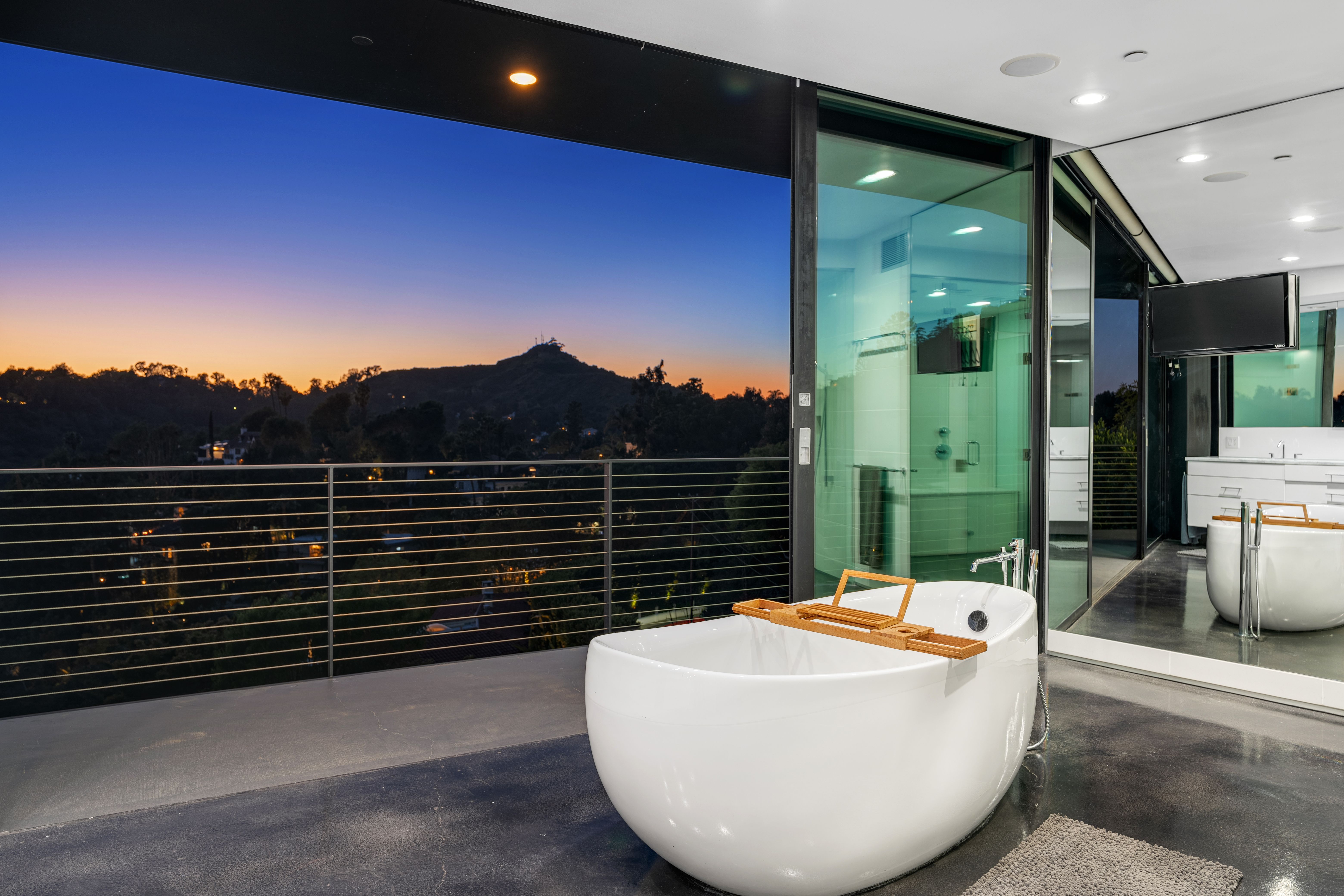 Tucked into the Hollywood Hills, this architectural home pairs dramatic design with laid-back California living. You’re just a short drive from Sunset Strip and the buzz of West Hollywood, yet the setting feels serene, with panoramic views stretching from the canyon to the ocean. Inside, clean lines and floor-to-ceiling glass frame the landscape beautifully, while the sleek kitchen and open-plan living space are well suited to sociable evenings. Whether you're lounging by the infinity pool, enjoying sundowners in the covered entertainment area or relaxing in the spa-style main suite, this hillside haven offers a refined base for an unforgettable LA stay.