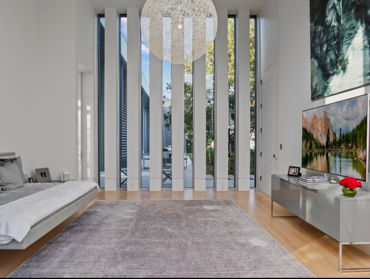 Experience the luxury of Bel Air from this stunning home. It’s on a 1.25-acre plot at the end of a cul-de-sac on the prestigious Perugia Way, overlooking the Bel Air Country Club – what a location. This modern home features soaring ceilings, skylights, and floor-to-ceiling motorised glass doors that connect the elegant interiors to the outdoor living spaces. There’s an infinity pool outside as well as an indoor lap pool in this luxurious home-from-home. It’s difficult to choose a favourite feature, but we’re especially impressed by the bronze double-sided fireplace and the gourmet kitchen.