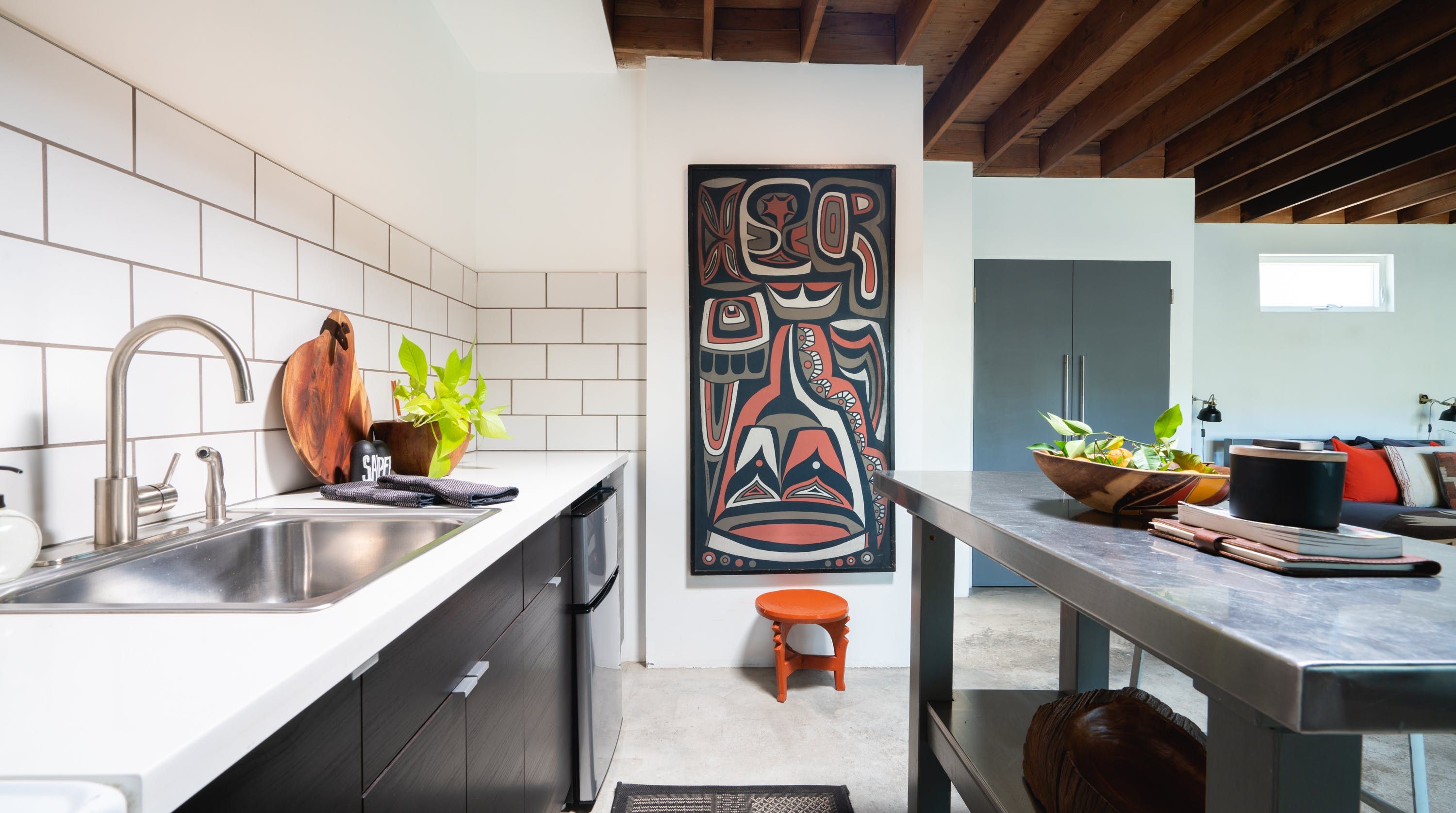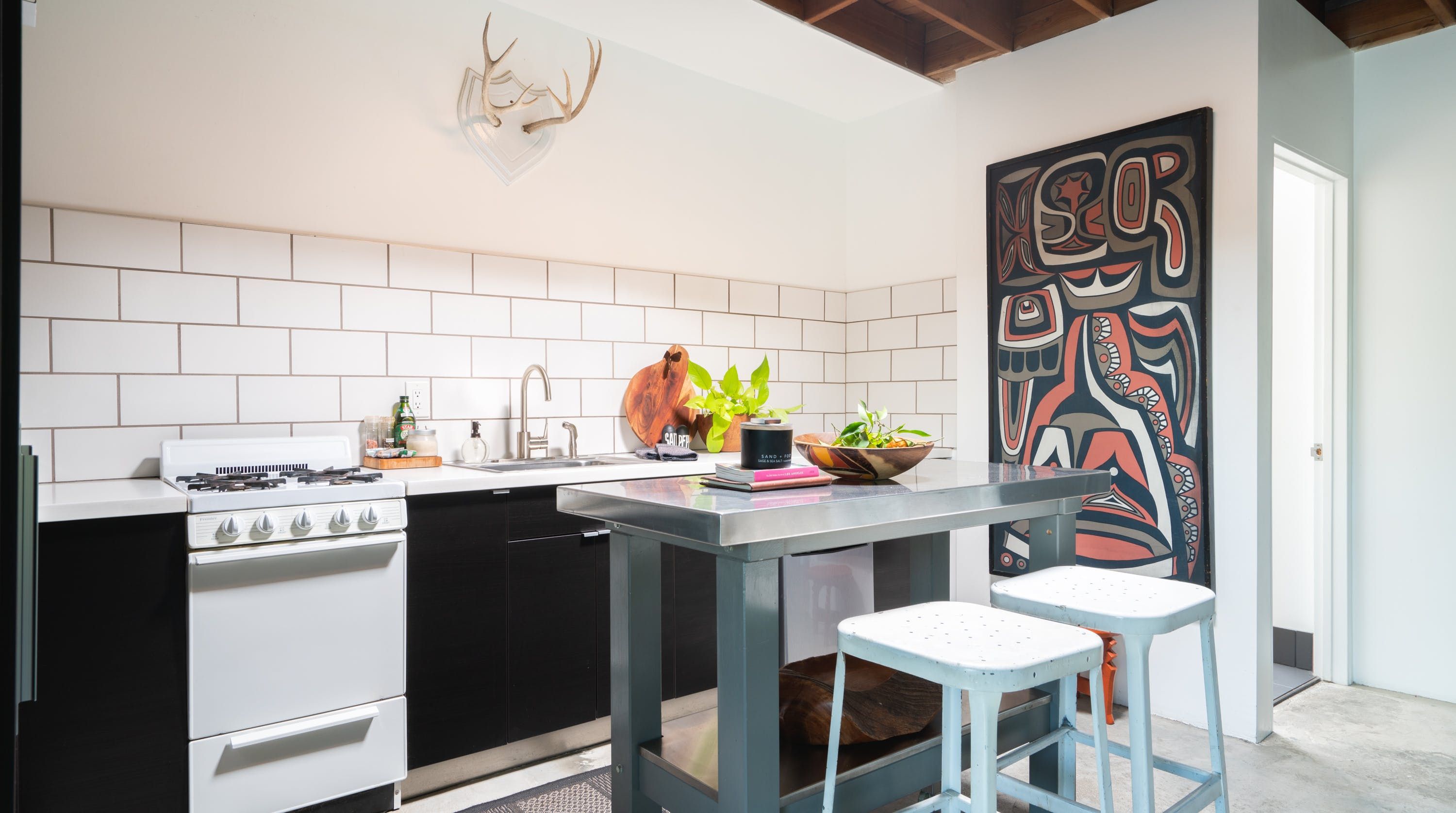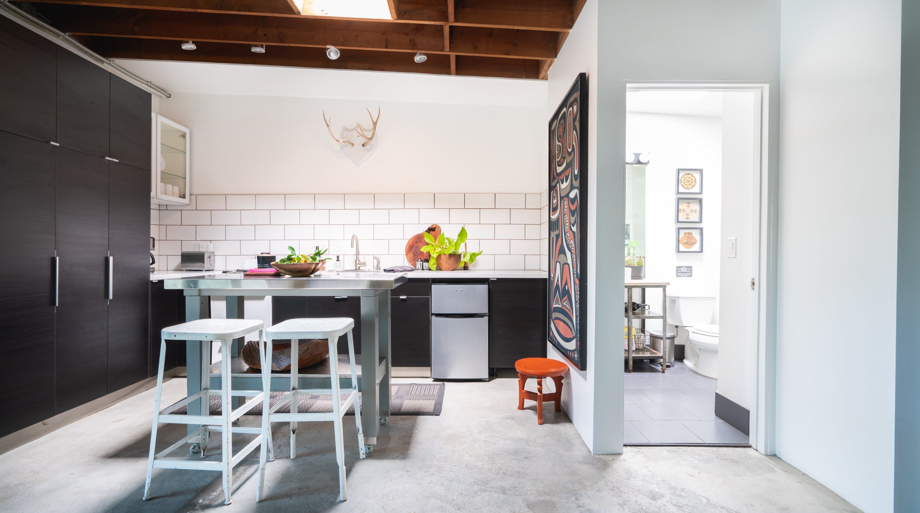 Combining the shell of an old industrial building with folk art and stylish mid-century modern furniture, this eclectic loft-style home provides the ideal base for a couple or solo traveller looking to be within easy reach of Los Angeles’ most exciting sights. Rustic charm meets snazzy sophistication in this open-plan space, with cool original features (think steel doors, beamed ceilings and concrete floors) giving it plenty of character. We love how the layout gives this home a real sense of largesse, while the soft furnishings and wooden accents lend it a sense of warmth and cosiness. Open up the large front doors to step out onto a communal patio where a fire pit and comfortable seating invite memorable nights beneath the stars. When you’re not hanging out in your chic pad, go out and explore the nearby sights. You’re just an eight-minute walk from Rose Hill Park and a fifteen-minute drive from Chinatown, while a twenty-minute car ride will take you to the Griffith Observatory and the bright lights of Hollywood.