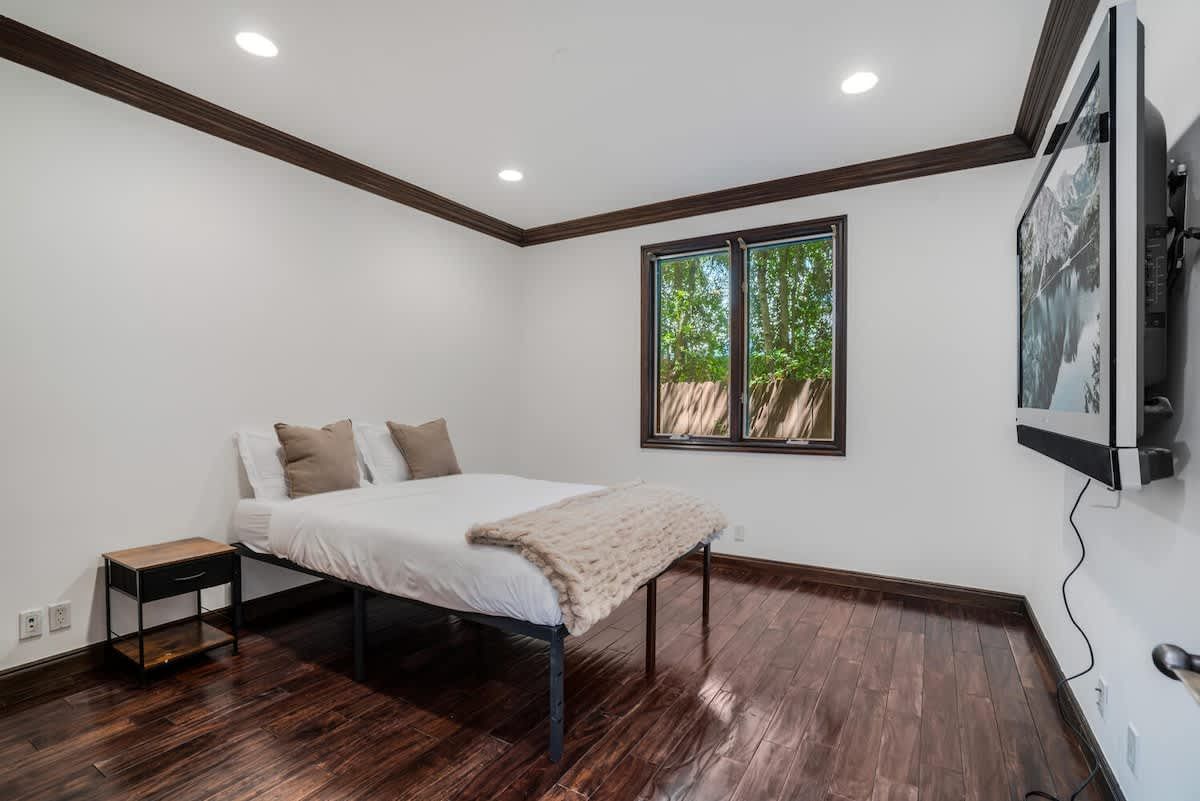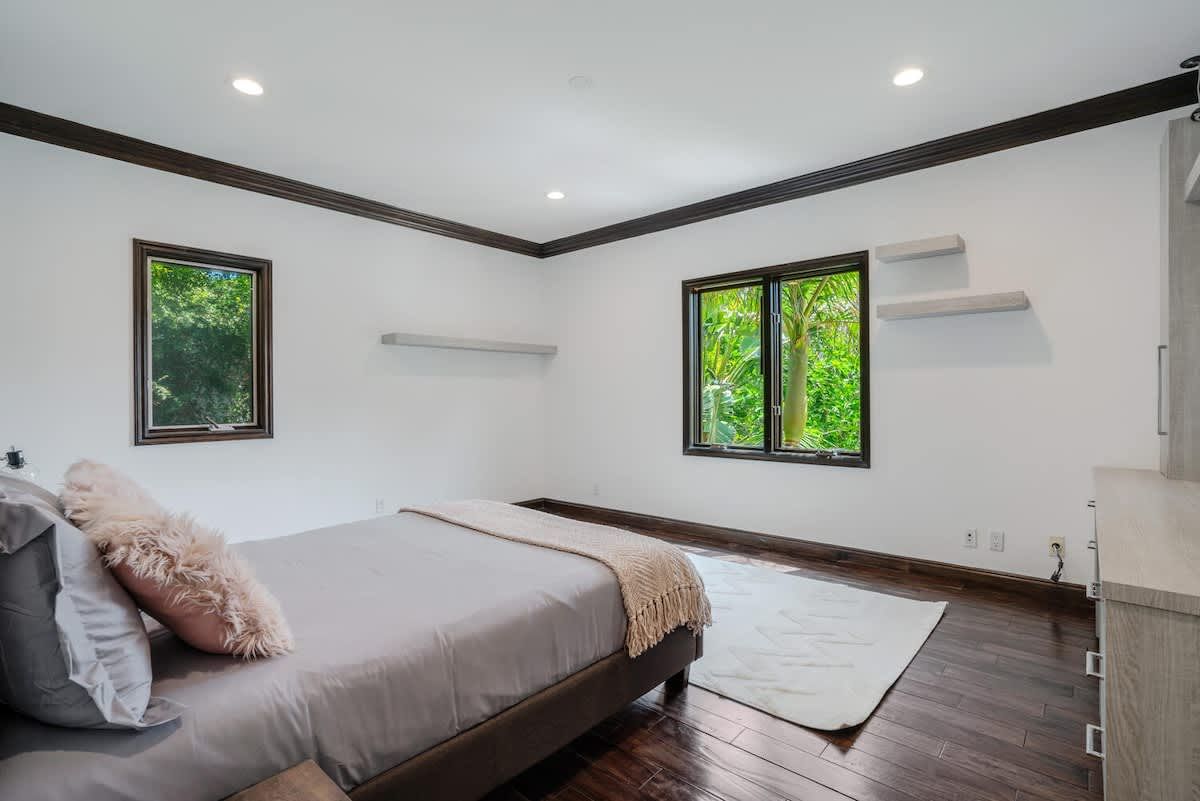 Tucked away in the leafy streets of Encino, this villa has a calm, laid-back vibe while keeping the best of LA within easy reach. Wander to nearby shops and cafés, or hop in the car for a thirty-minute ride to Santa Monica’s beaches or Hollywood’s buzz. Inside, the villa is bright and airy, with the main bedroom opening onto a private balcony. Outside, the garden is made for relaxed sunny days, with a private pool, in-built hot tub, and barbecue – ideal for lounging, cooling off, or entertaining in true California style.
