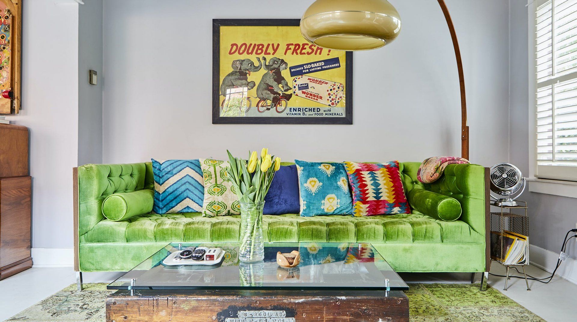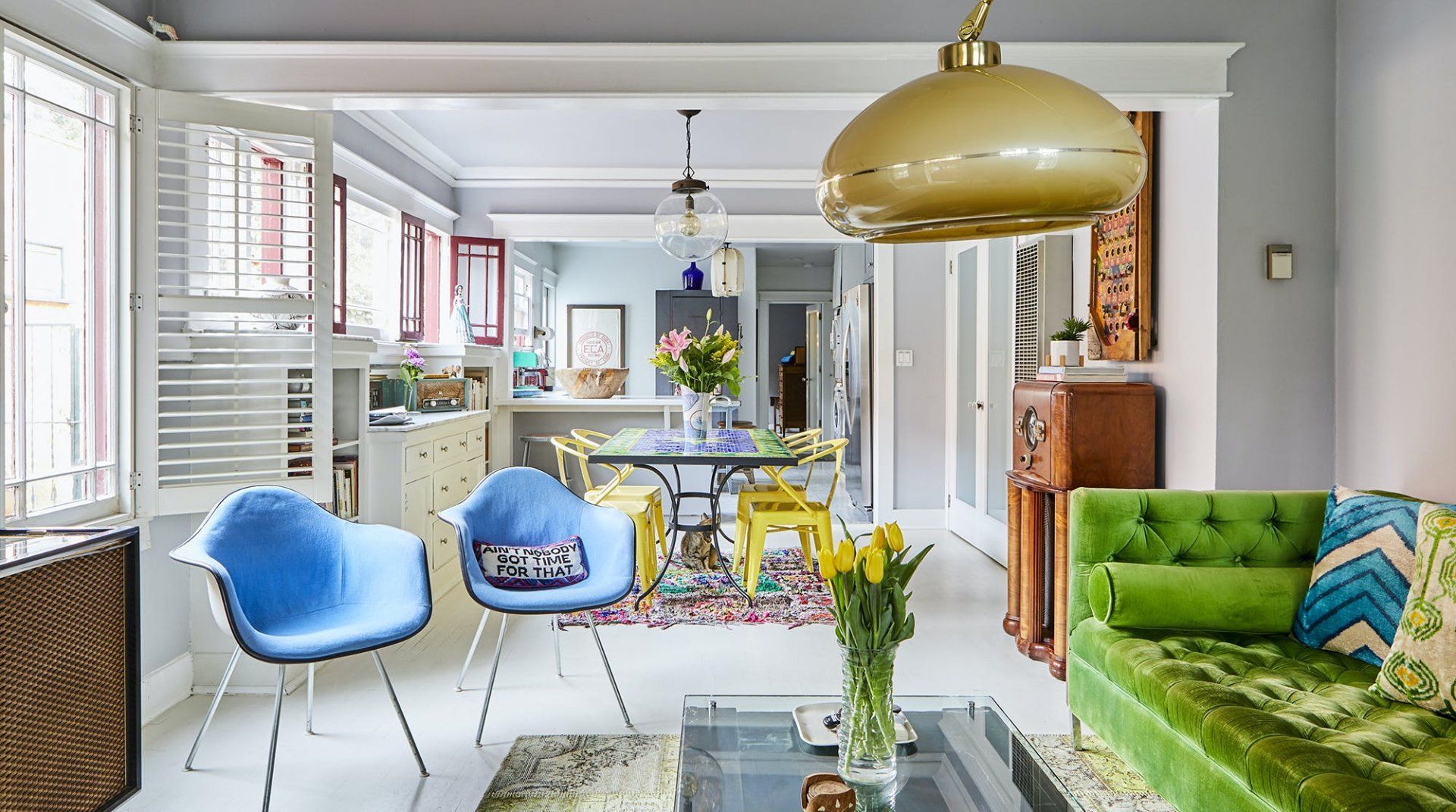 The first thing you’ll notice is the mural of orange and yellow pansies, practically bursting off the walls outside. Stepping inside, it’s a riot of colour, from the mosaic-covered dining table to the tufted green velvet sofa. Shelves are teeming with books in the dining area and the kitchen has a sunny farmhouse feel with a big range-style cooker and wooden breakfast table in the centre. There’s a little shared garden out the back too, brimming with lush greenery and a cute stone water feature.