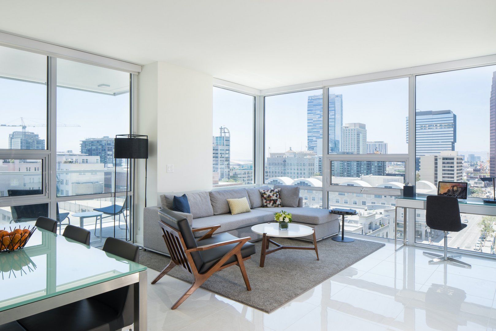 With its balmy, Mediterranean climate, eternal sunshine, and celebrated sprawl, the City of Angels is the true jewel of the American West Coast. You’ll be in the heart of the action in this luxurious executive suite, your sanctuary from the commotion of Downtown. All the details you’d expect in a modern LA apartment are present – hypoallergenic high thread-count sheets, a kitchen fit for a foodie, floor-to-ceiling windows, an inviting bathtub and a walk-in shower. Shared facilities include a large outdoor pool, hot tub, full-length basketball court, state-of-the-art fitness centre, sauna, Peloton room and yoga studio. Work from home on the superfast wi-fi or host a meeting in the communal lounge, with its open fire and full-sized kitchen. The views from your private balcony are breathtaking, and the Whole Foods, Convention Center, Dodger Stadium and LA Live are nearby. The LA Freeway is also easily accessible by car or taxi, and you can be on the Metro in five minutes, but there are great local bars and restaurants, too. Head into town and taste the freedoms of America’s most contemporary city.
