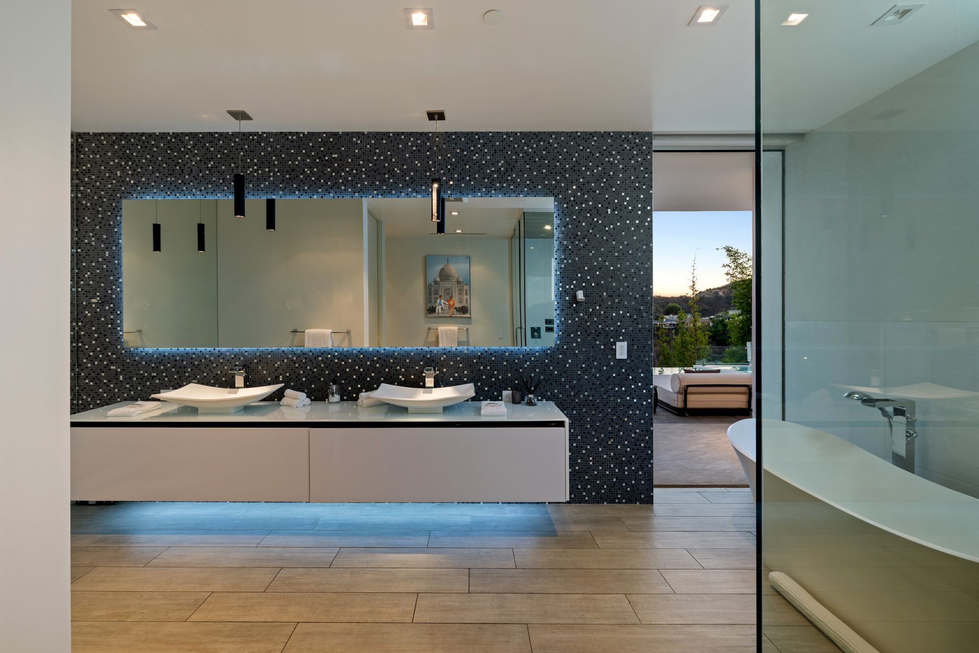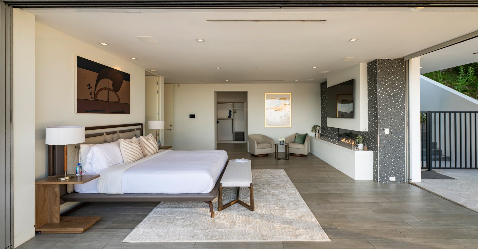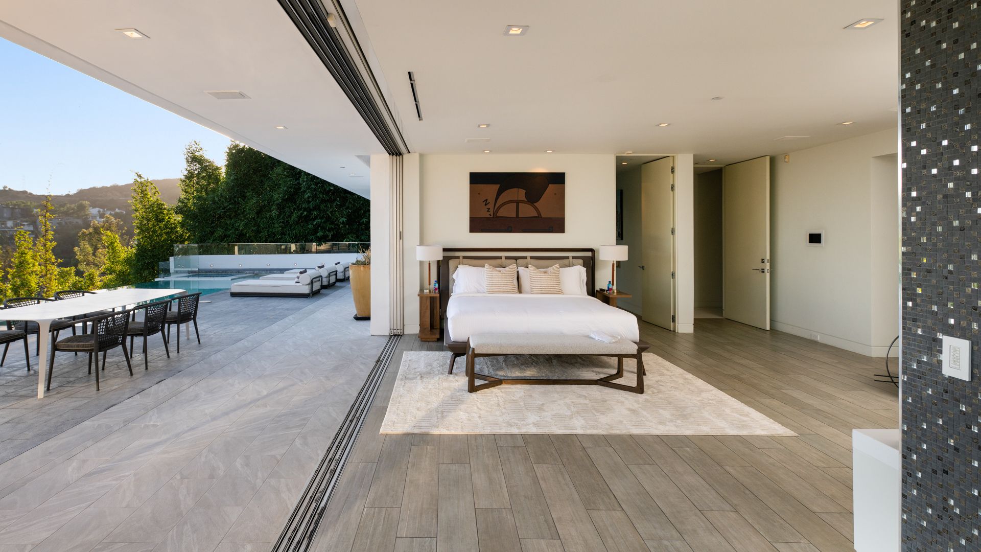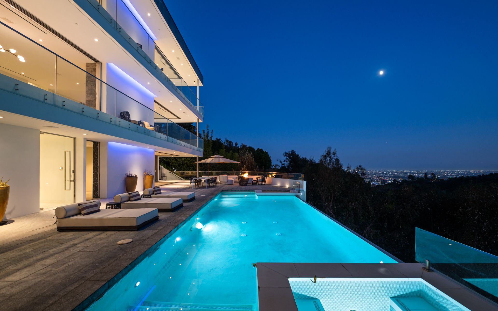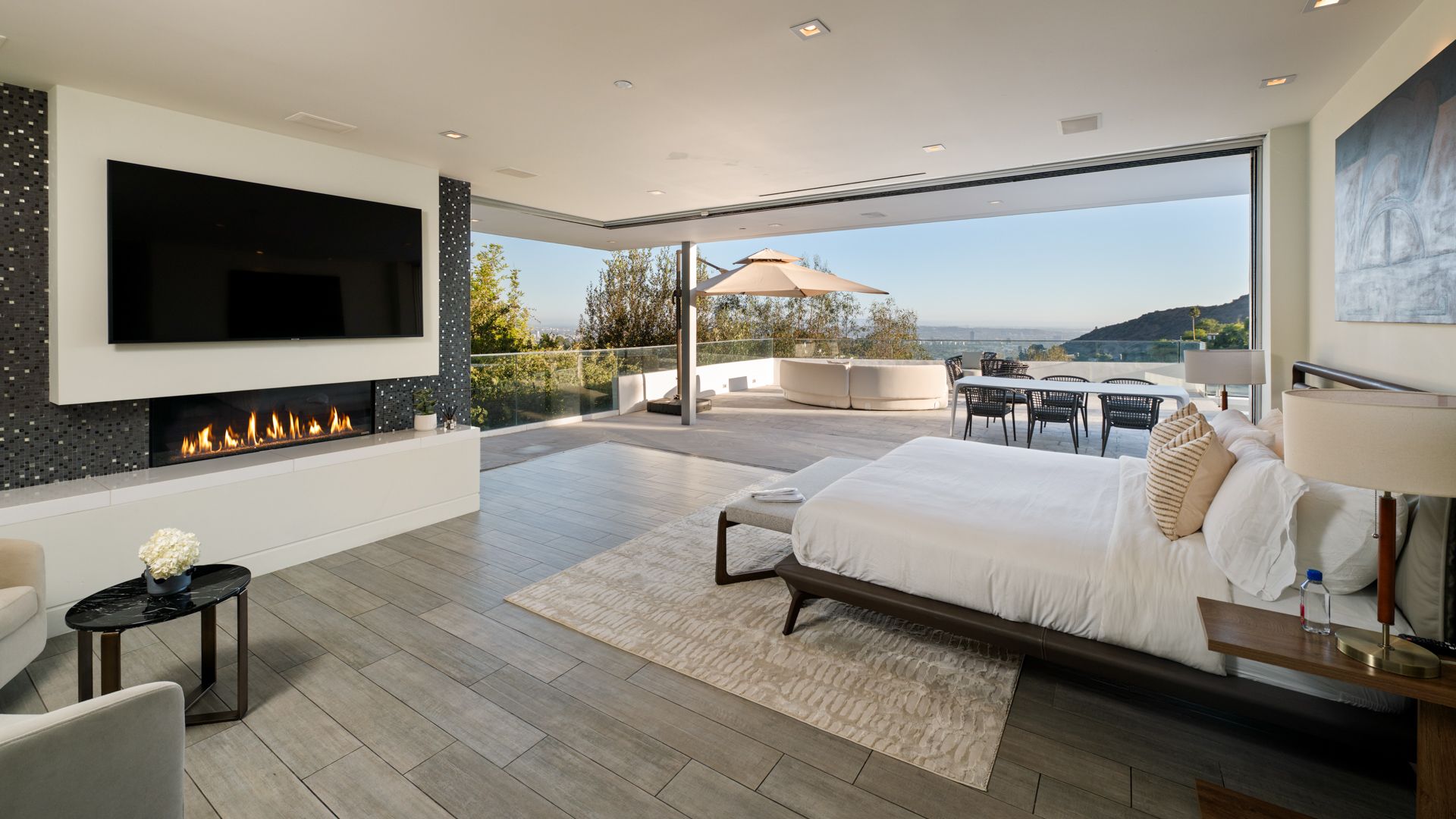 Set on the iconic Mulholland Drive, this villa gives you front-row seats to sweeping views stretching all the way from Downtown LA to Catalina Island. It’s spread over three levels, so there’s plenty of space for group getaways, with floor-to-ceiling glass doors for easy indoor-outdoor living. Outside is perfect for long days by the infinity pool, and evenings watching those Mulholland sunsets from the balconies and multiple patios. Inside, you’ve got polished marble floors and views from pretty much every room. You’ll need a car, but you're just a few minutes' drive from the likes of Studio City, Universal Studios, Beverly Hills, and West Hollywood.