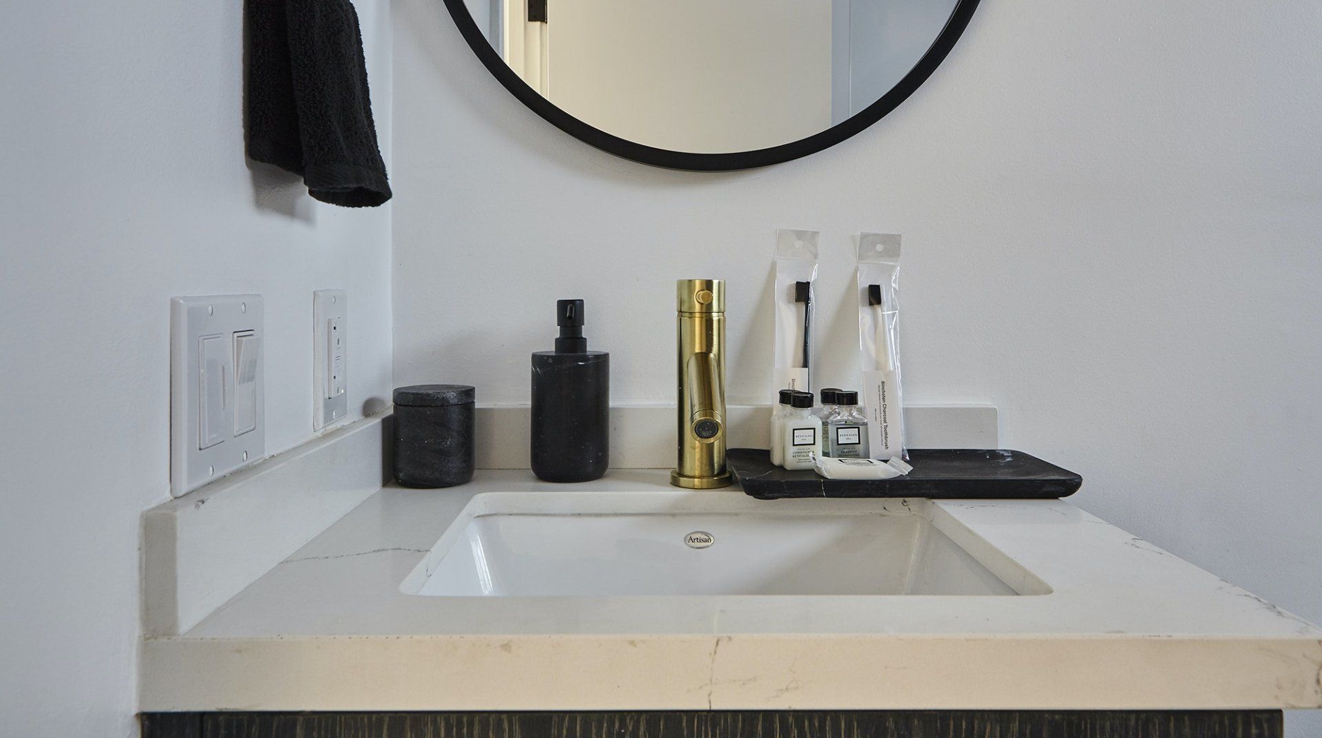 * The single sink in the bathroom is quite small without tons of space for toiletries