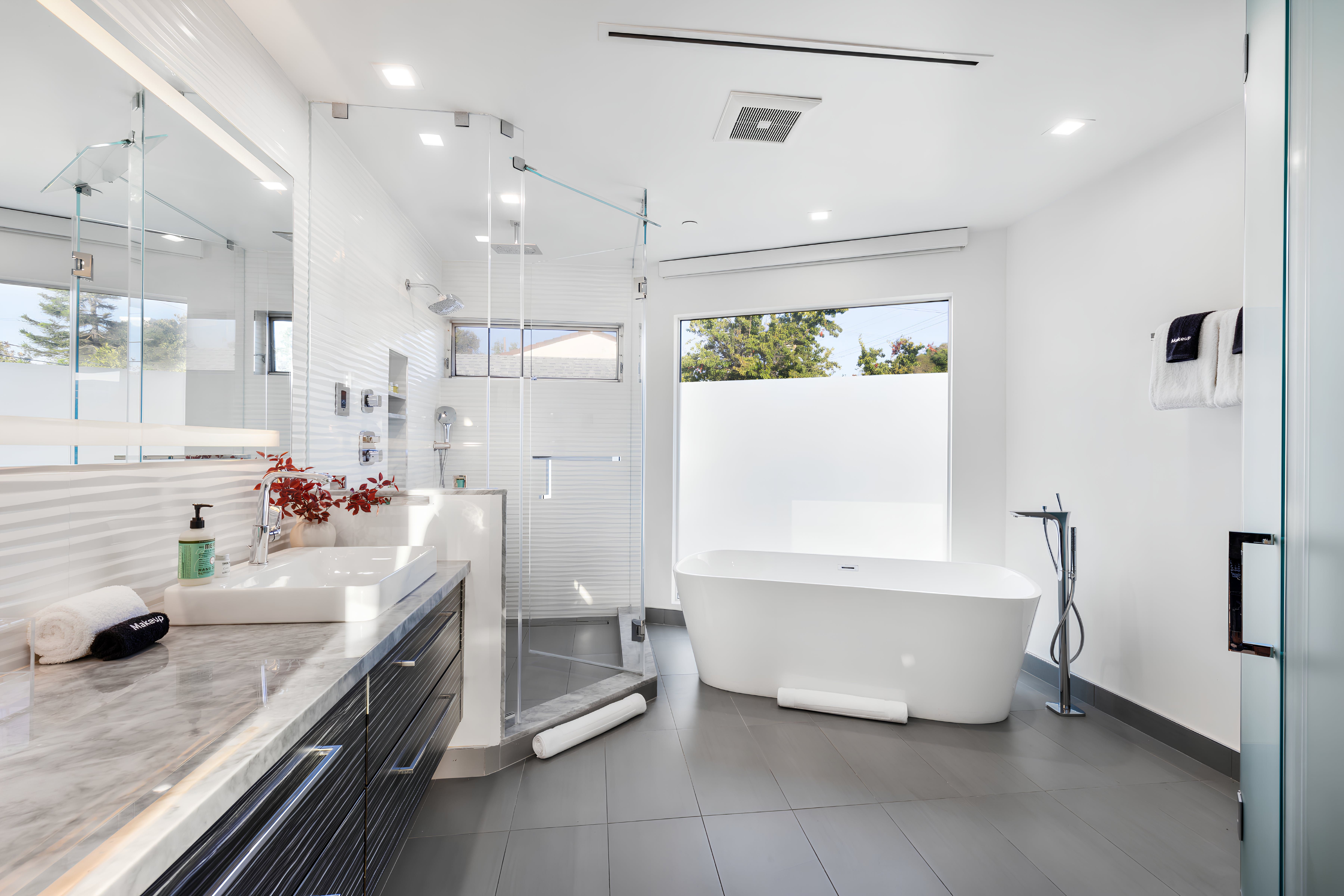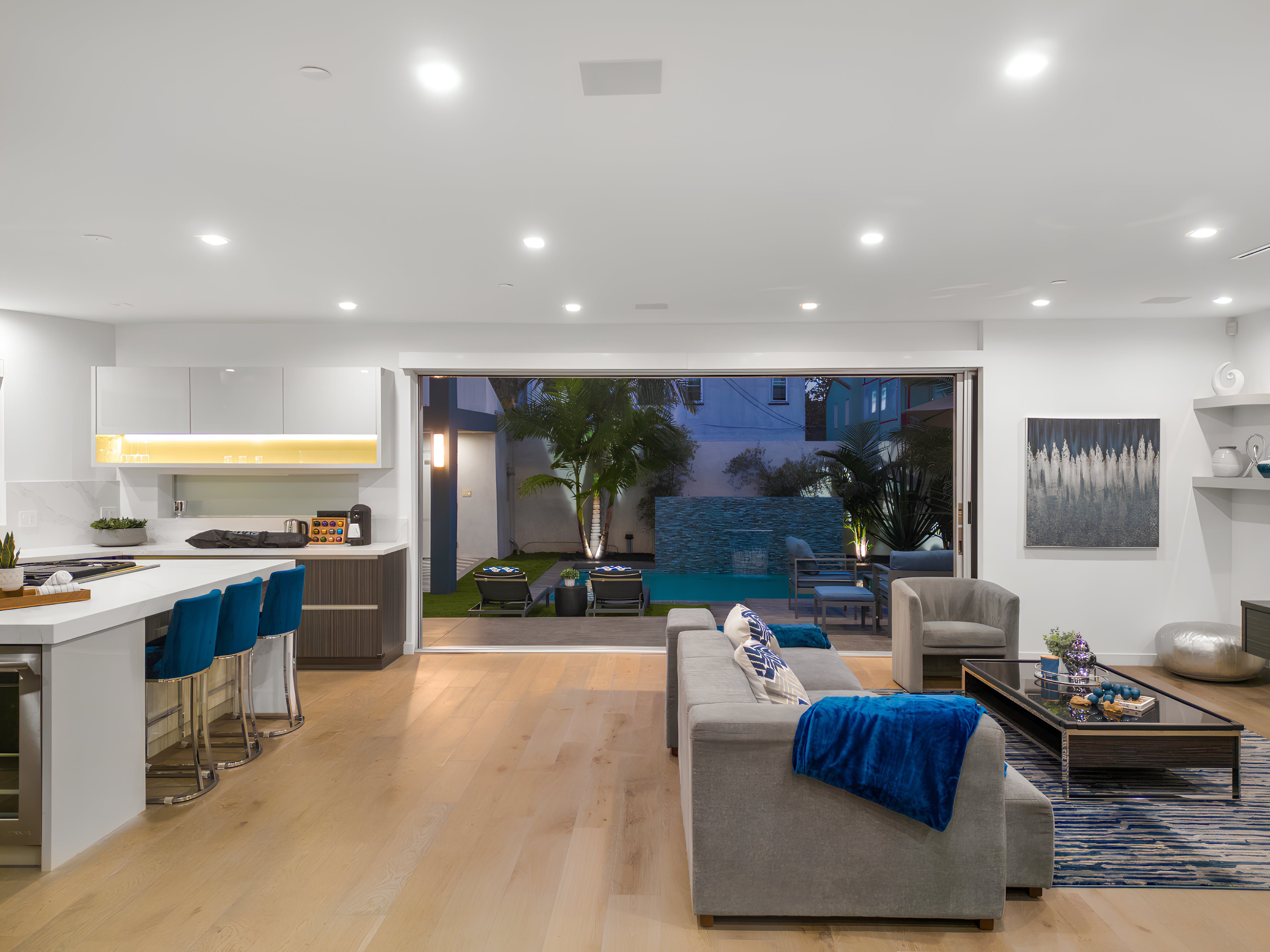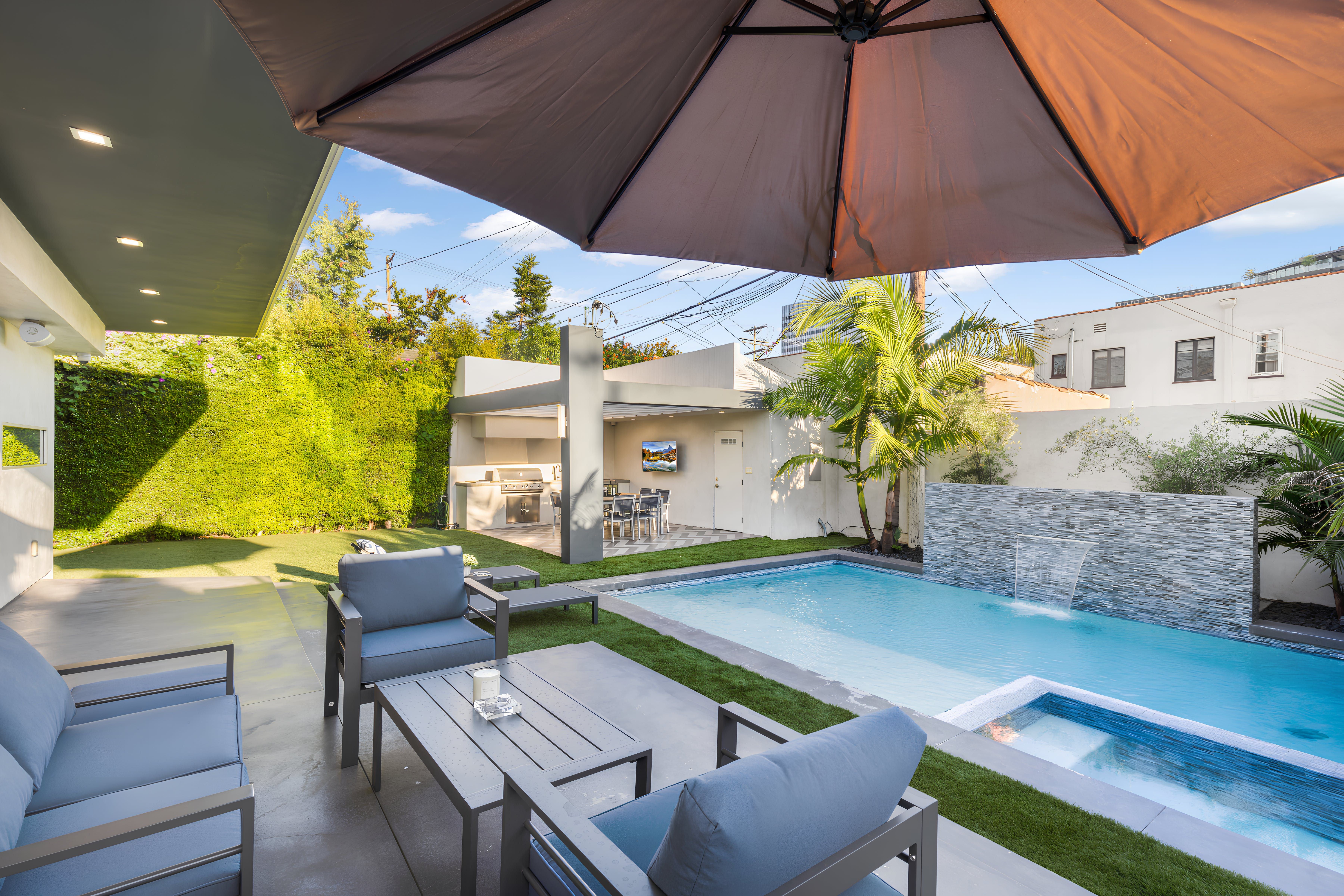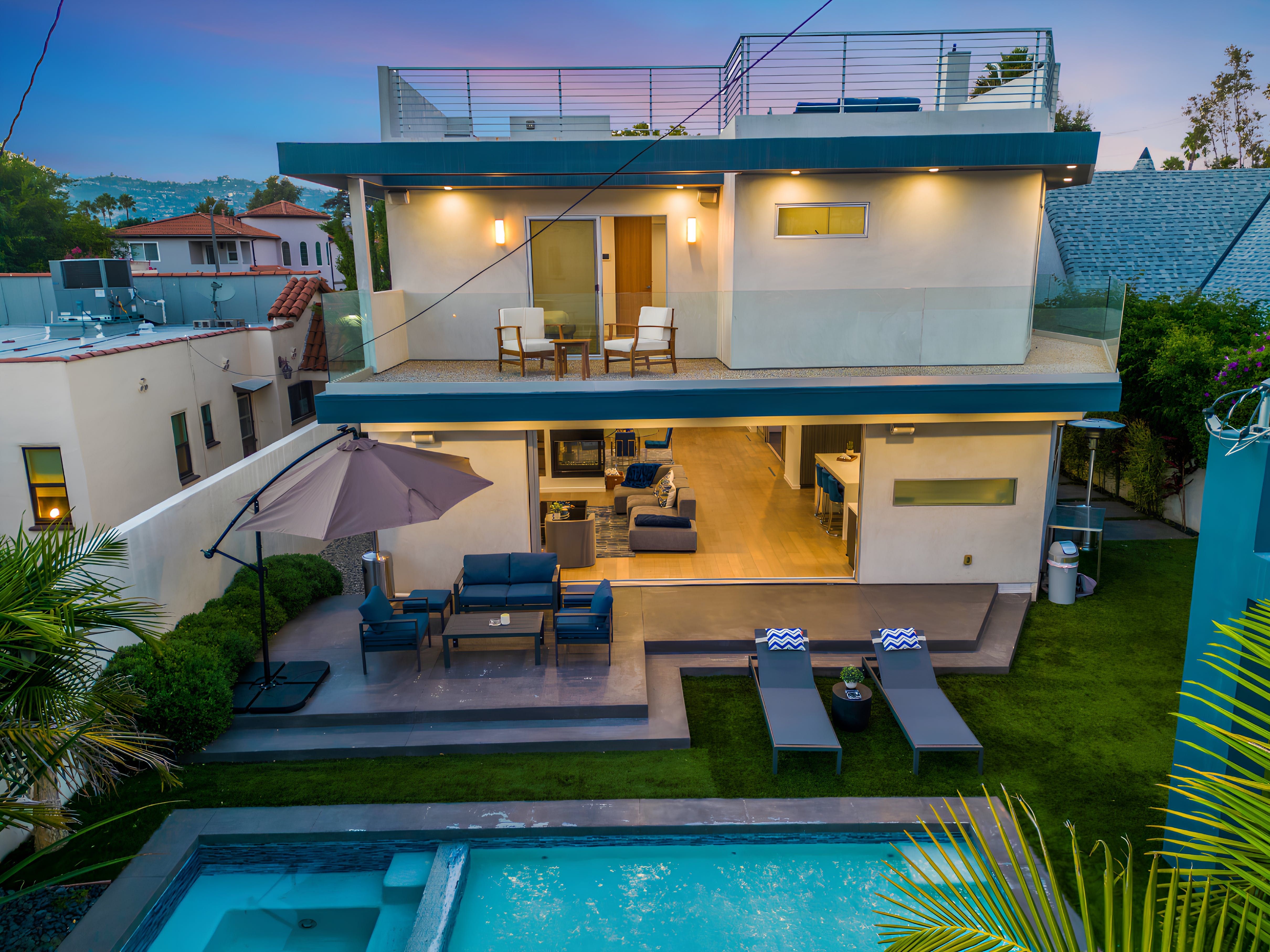 This LA home is nestled at the heart of Beverly Grove, just a short stroll from trendy 3rd Street. Fashionistas will love browsing the boutiques along nearby Melrose Avenue and for culture vultures, Los Angeles County Museum of Art is a few blocks away. Outdoor living is easy here with bi-fold doors connecting the open-plan living area to the garden. You’ve even got an outdoor kitchen – complete with barbecue and fridges for keeping the drinks chilled – next to the alfresco dining area. Add to that a private pool and roof terrace, and you’ve got everything you need for a holiday to remember.