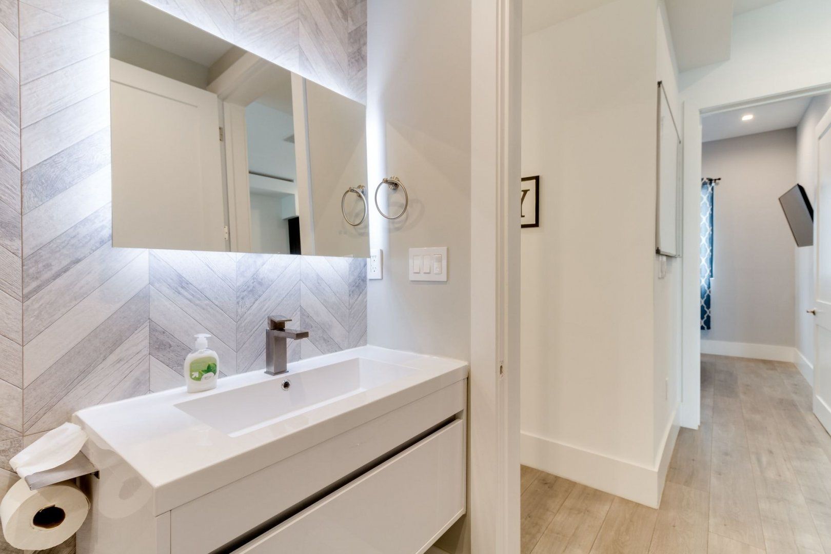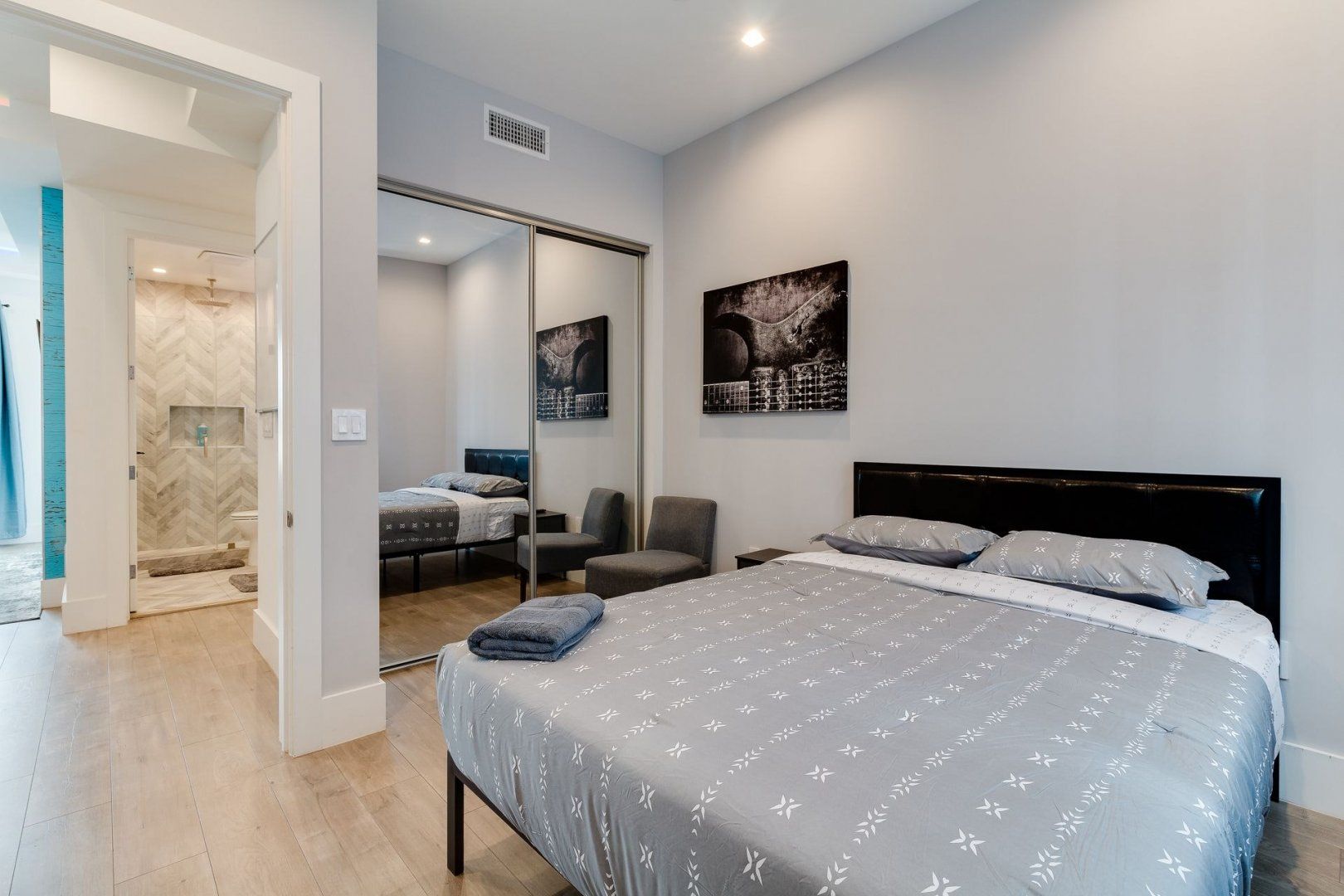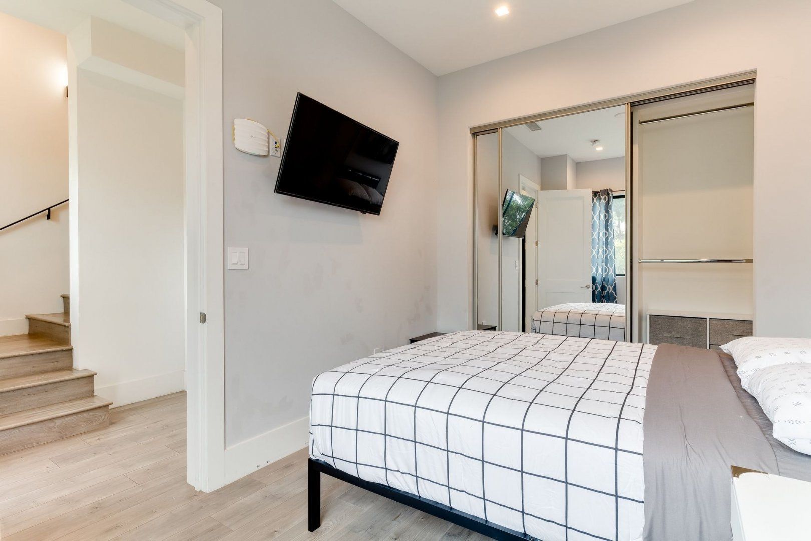 This bright and modern family home is the epitome of laidback living. Inside, a comfortable living space with turquoise accents and funky colour-changing recessed lights unfolds into a fully-equipped kitchen. After devouring home-cooked dishes in the dining space, head up to the roof terrace with a glass of wine in hand for endless views of LA and Hollywood.