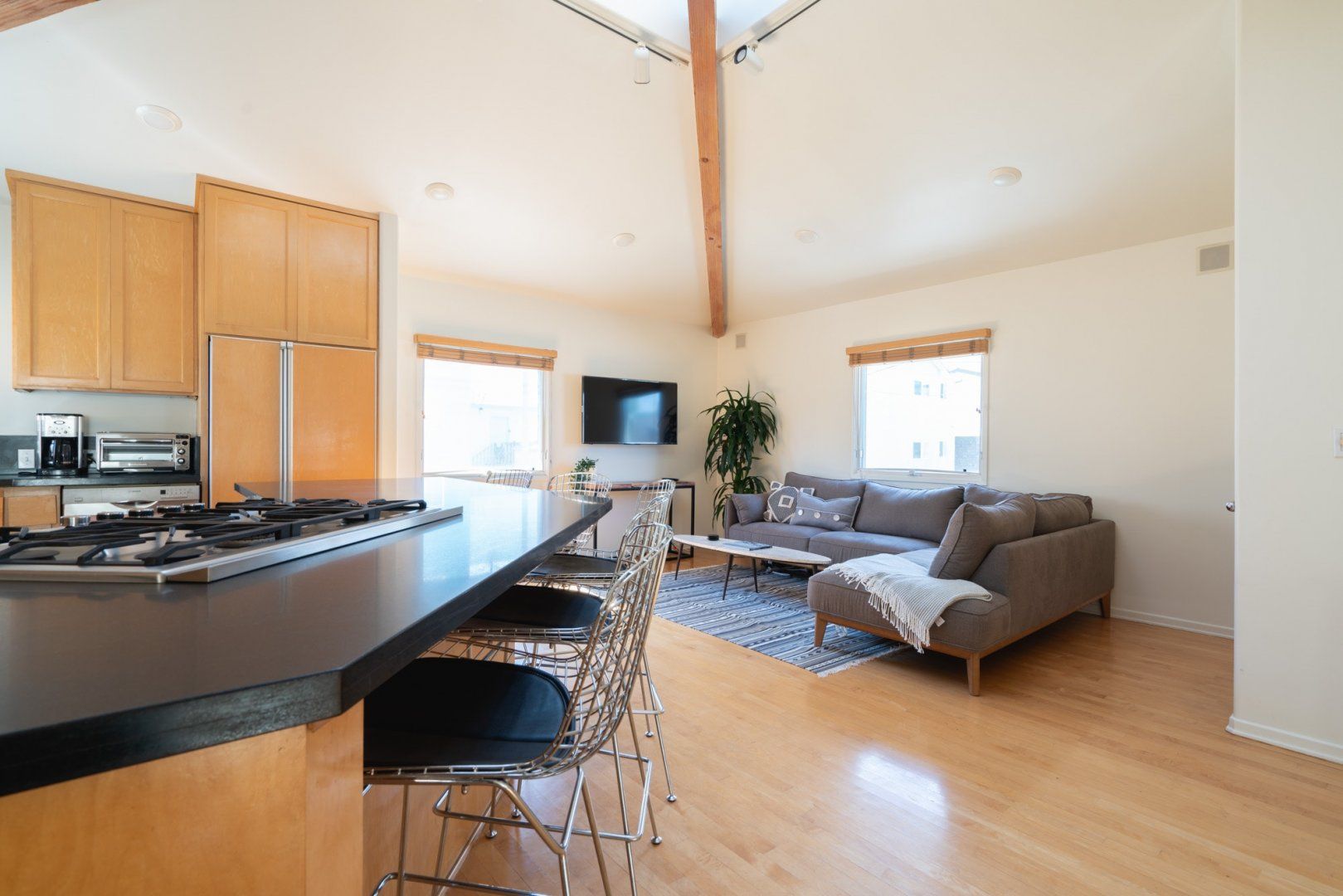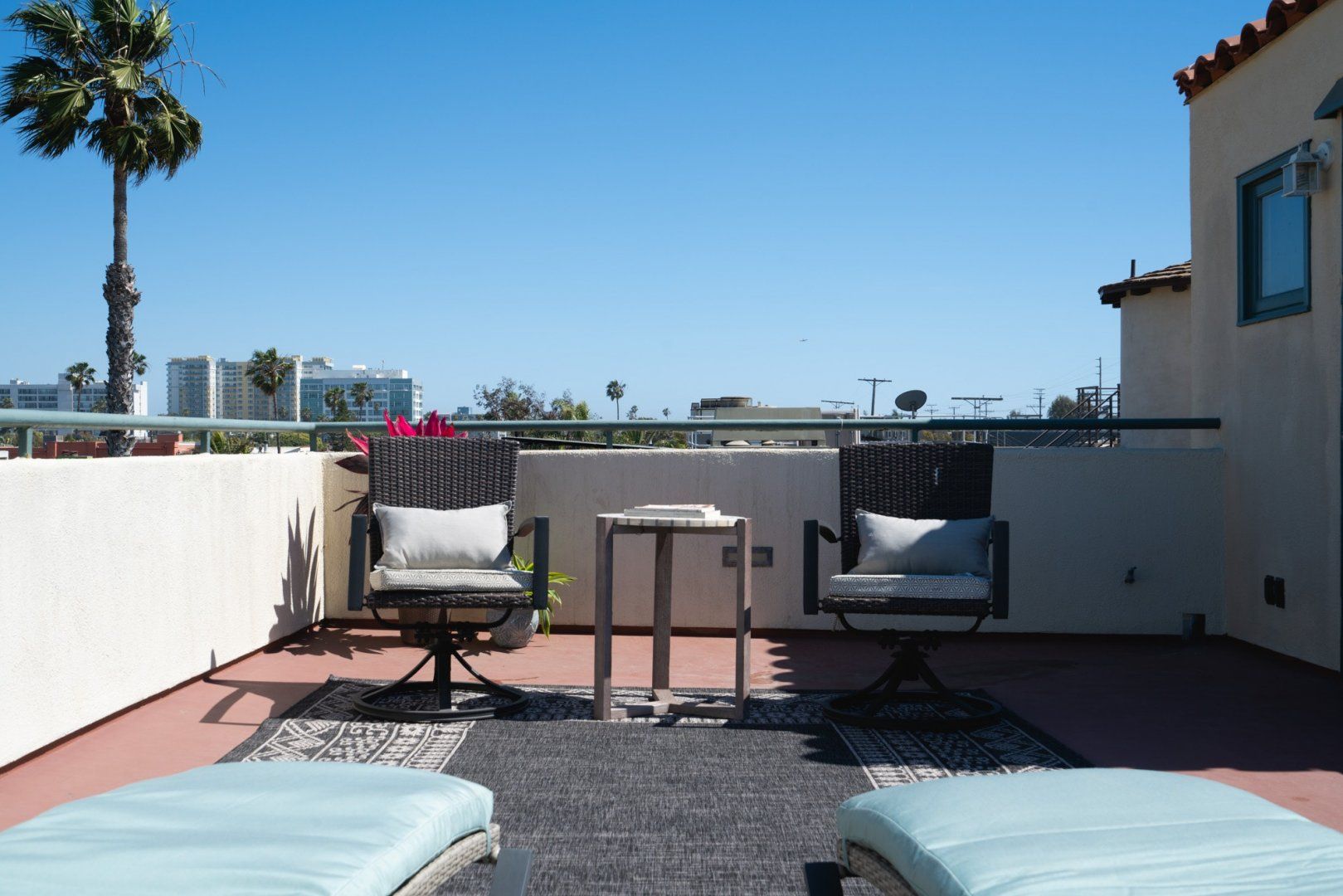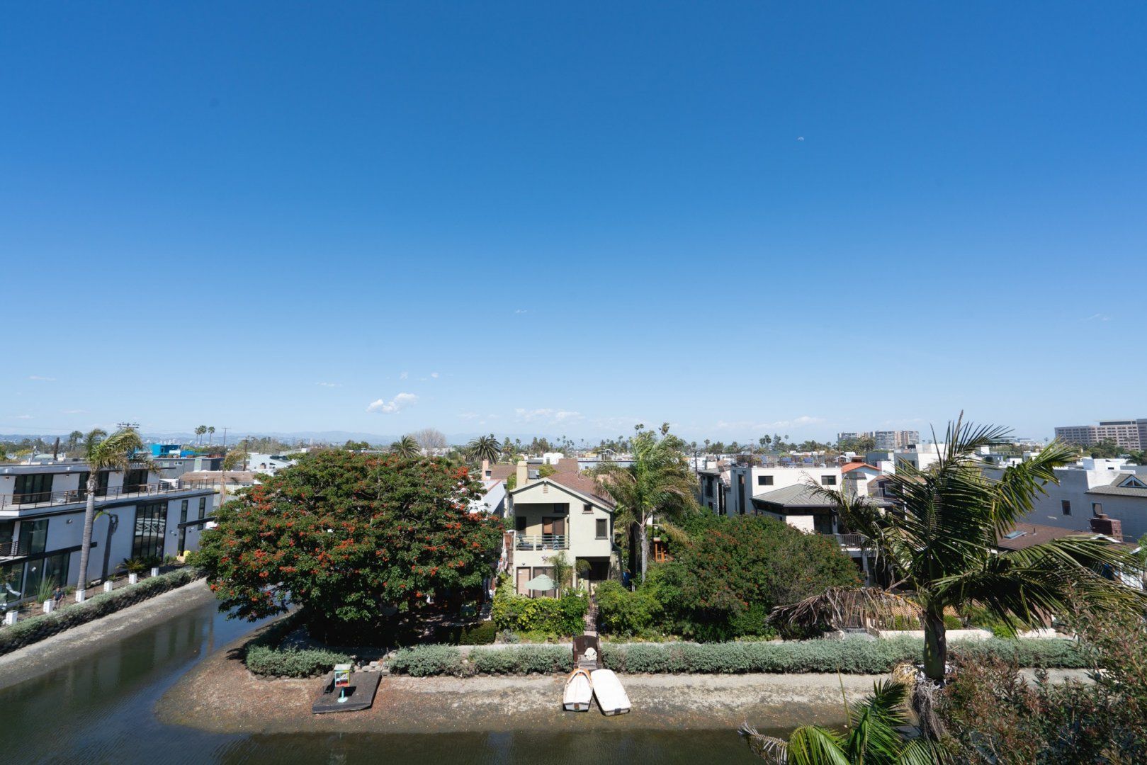 It’s easy to forget how big LA is, and that even places in Venice might be a half-hour walk from the beach. Hertford Union overlooks the canals, and the sea is less than five minutes away on foot. It’s big, the kind of thing that naturally comes to mind when you think of LA. There are white walls, terraces, greenery, exposed wood. It’s also kept in wonderful condition, and you can see that this is a matter of pride for the hosts, Trevor and Lauren.
