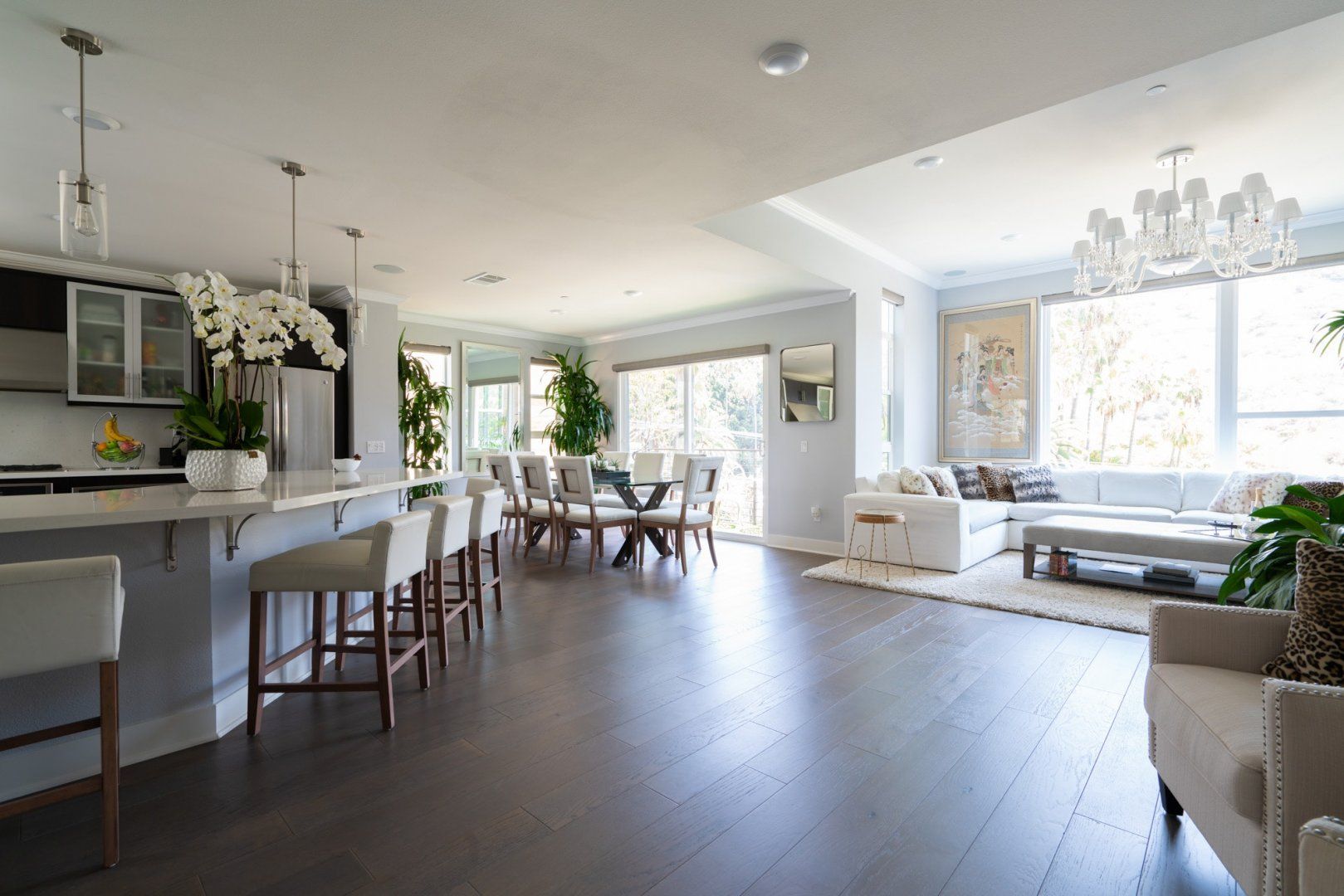 This gorgeous and pristine three-level home is situated in a gated community in the Hollywood Hills. It has a lovely, sunny open-plan living space, which helps the lush indoor plants and trees to thrive – we love the tranquil vibe here. Chandeliers add some glamour to the neutral scheme, while dark wood floors add drama. Play some of your favourite music on the high-end sound system and totally unwind. Or take in the mountain views from the balcony with a glass of Californian rosé (there's two outside spaces here). This home is ideal for a family or group of friends wanting a calm setting. It's no wonder this stylish home has glowing reviews. This place has a fantastic location, too – Hollywood Bowl is a fifteen-minute walk away, while Hollywood Wax Museum is twenty-six minutes on foot. If you fancy some culture – it's the same walking distance to Dolby Theatre and El Capitan Theatre, while Universal Studios are a four-minute drive.