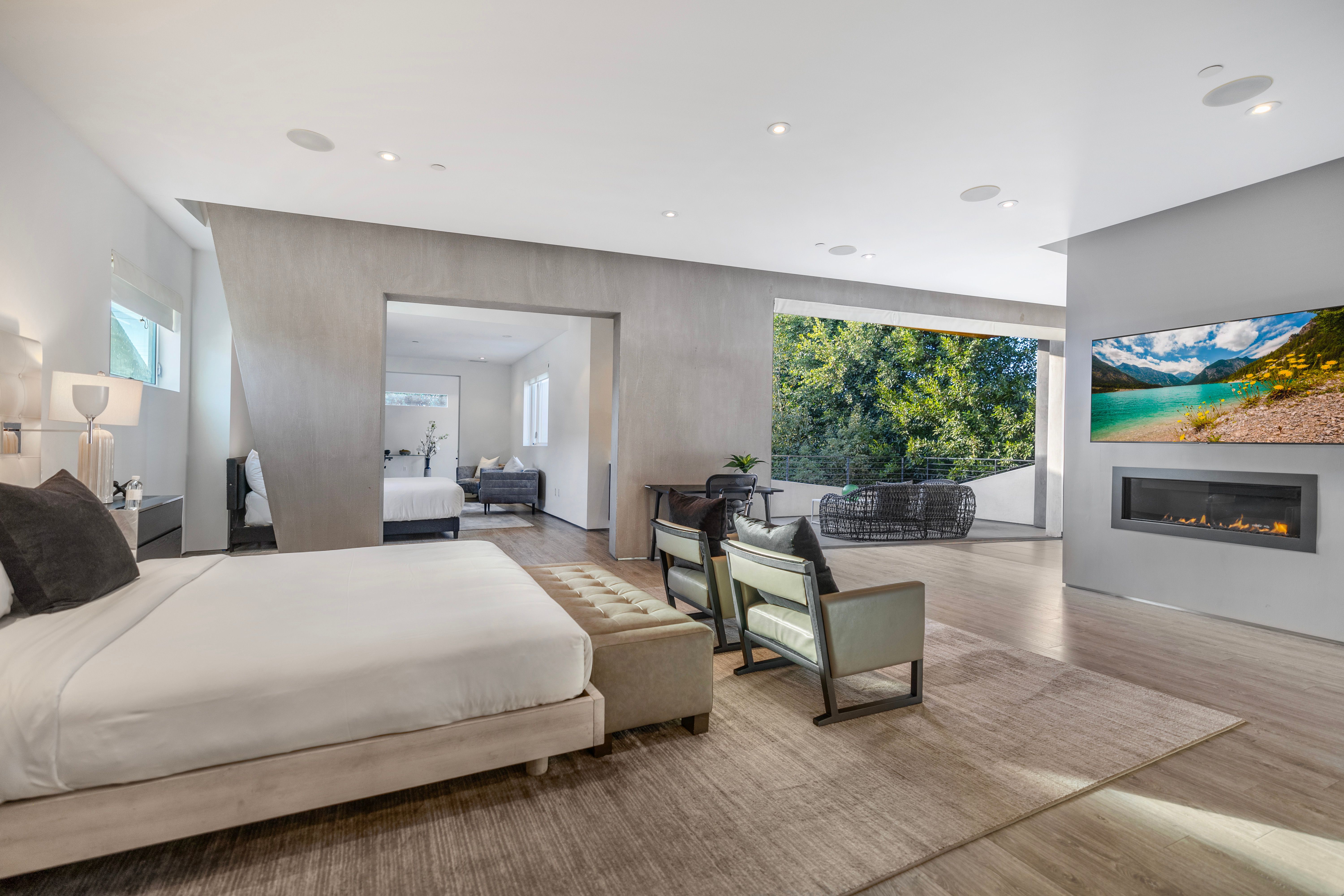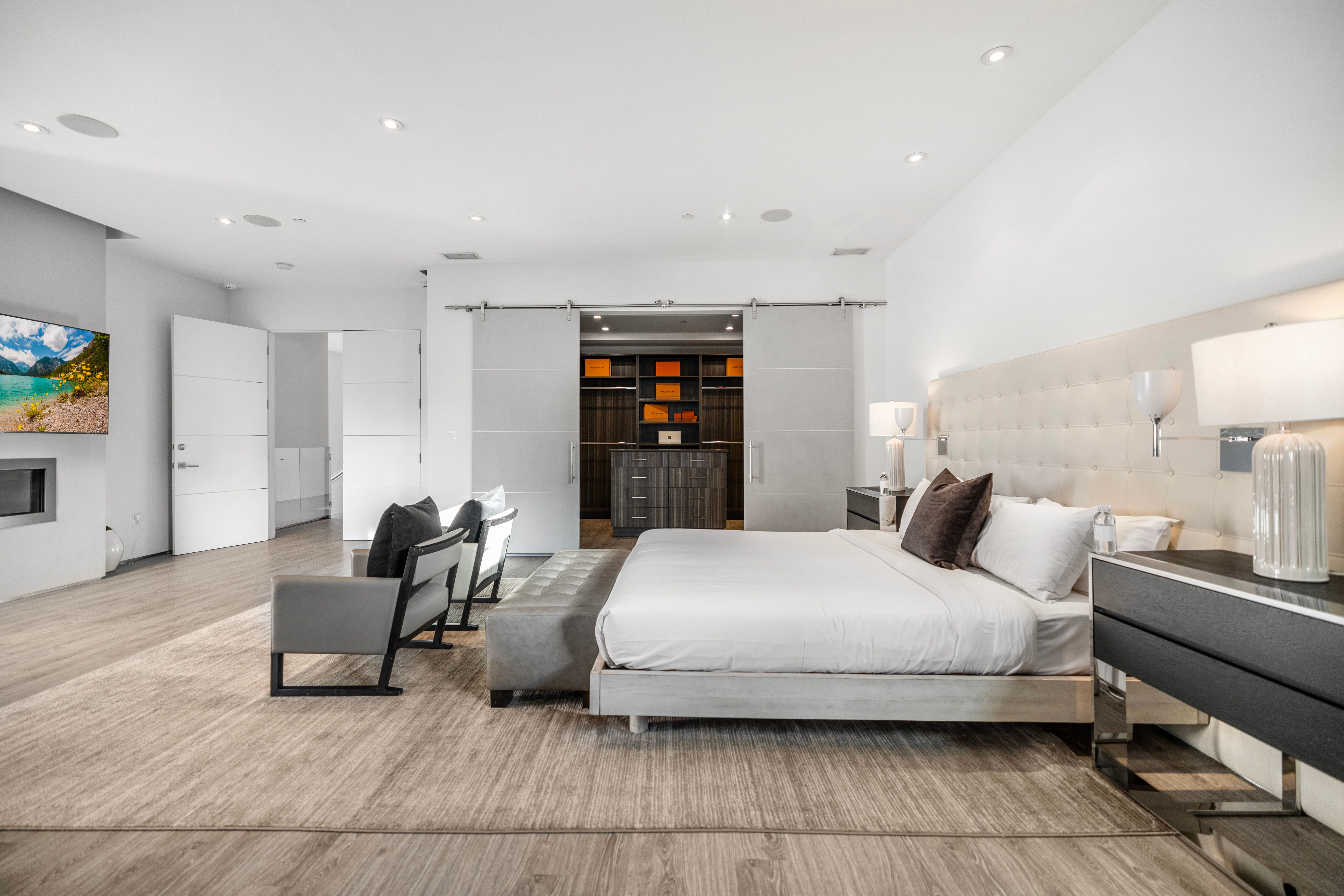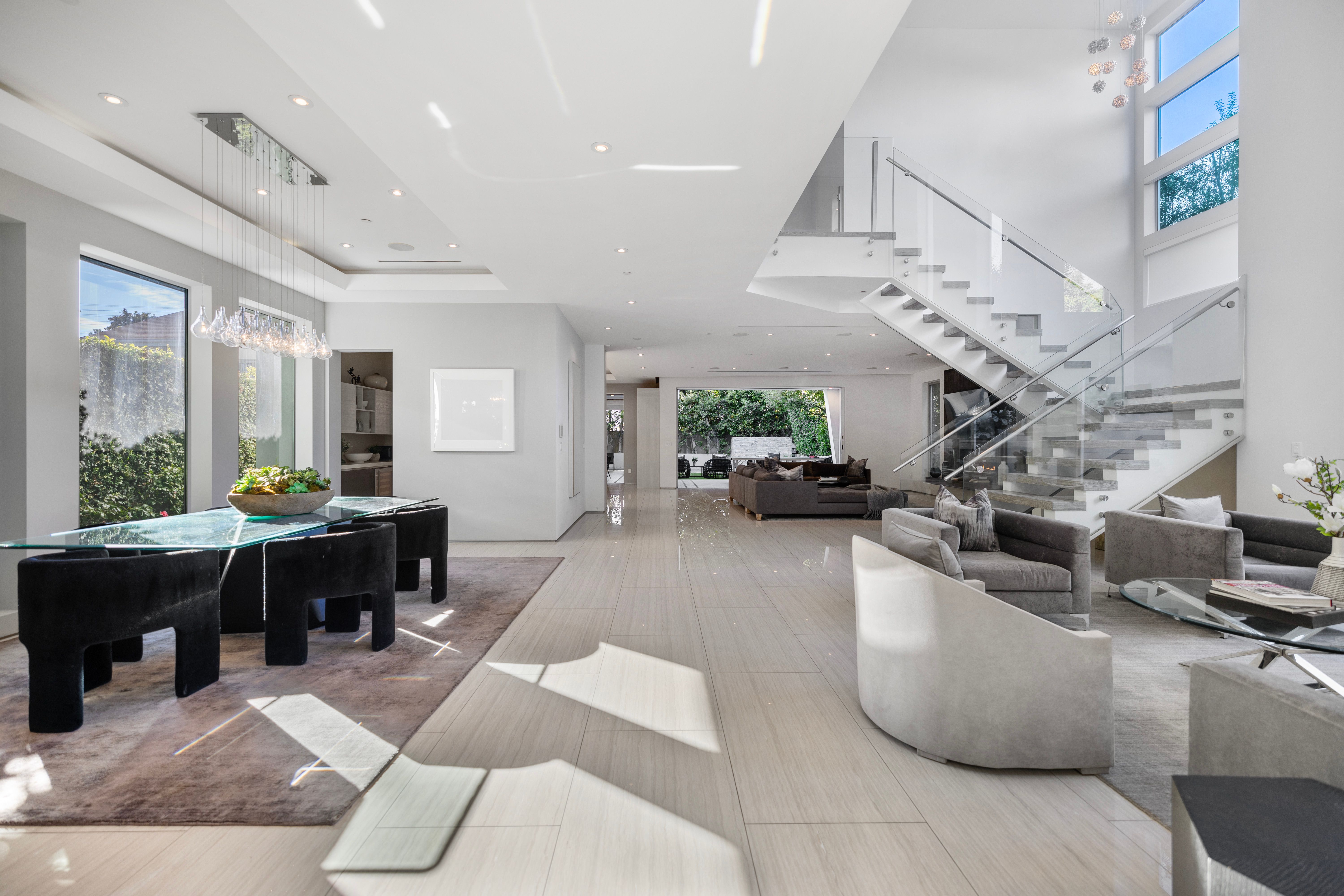 An absolute stunner of a villa situated in a prime Los Angeles location – this home is the epitome of Hollywood glitz and glamour. First impressions count for a lot in this town, and the grand entryway doesn't disappoint before leading you into the open-plan living space. Here, you'll find a formal living room with sumptuous sofas and a fireplace for cosy evenings, a dining area with velvet seating and eye-catching pendant lighting, and an inspirational chef's kitchen with custom Italian cabinetry. Slide back the doors and discover the equally awe-inspiring garden, with an enticing pool, an indulgent spa and even a two-storey waterfall – it's a true oasis. Back inside, head through the twenty-two-foot atrium and up the stairs to find three of the bedrooms and an exquisite master suite with an office, private gym, custom walk-in closet and balcony. If you can tear yourself away, your West Hollywood neighbourhood is worth exploring. Sandwiched between Beverly Boulevard and Melrose Avenue, you've got Southern California's quintessential fashion and dining destinations right on your doorstep. Come nightfall, book a table at one of the area's fantastic restaurants before moving on to any one of its vibrant bars.
