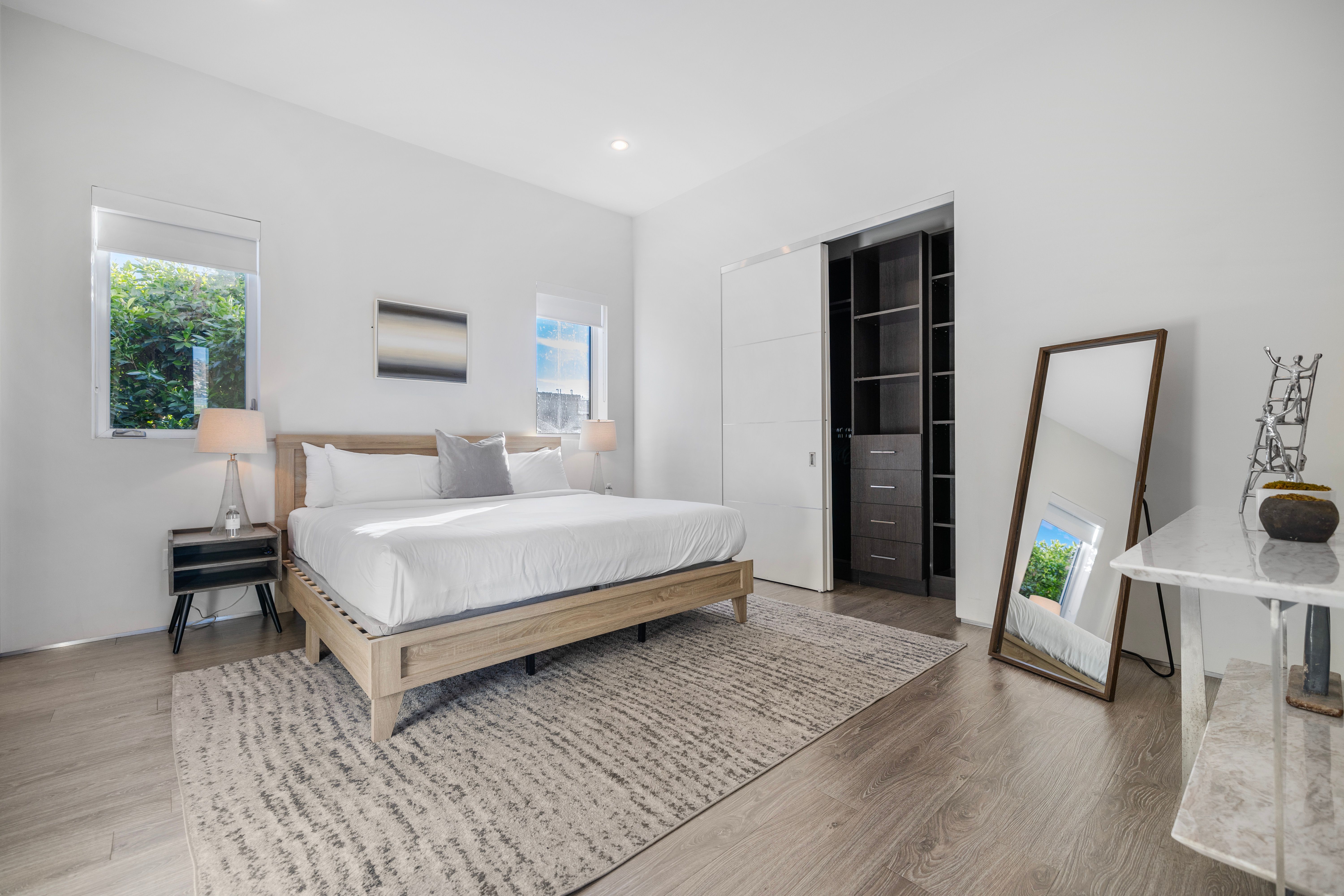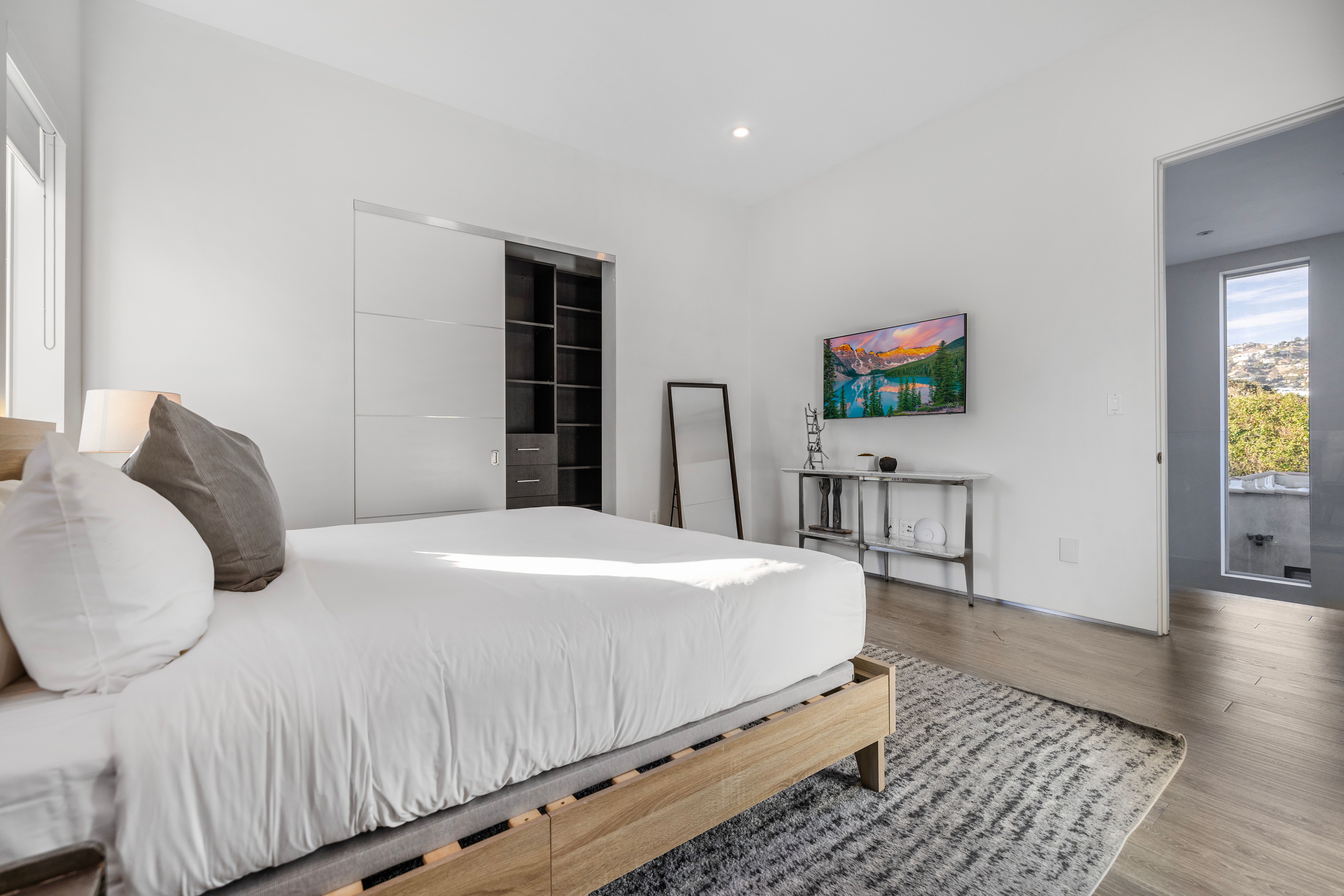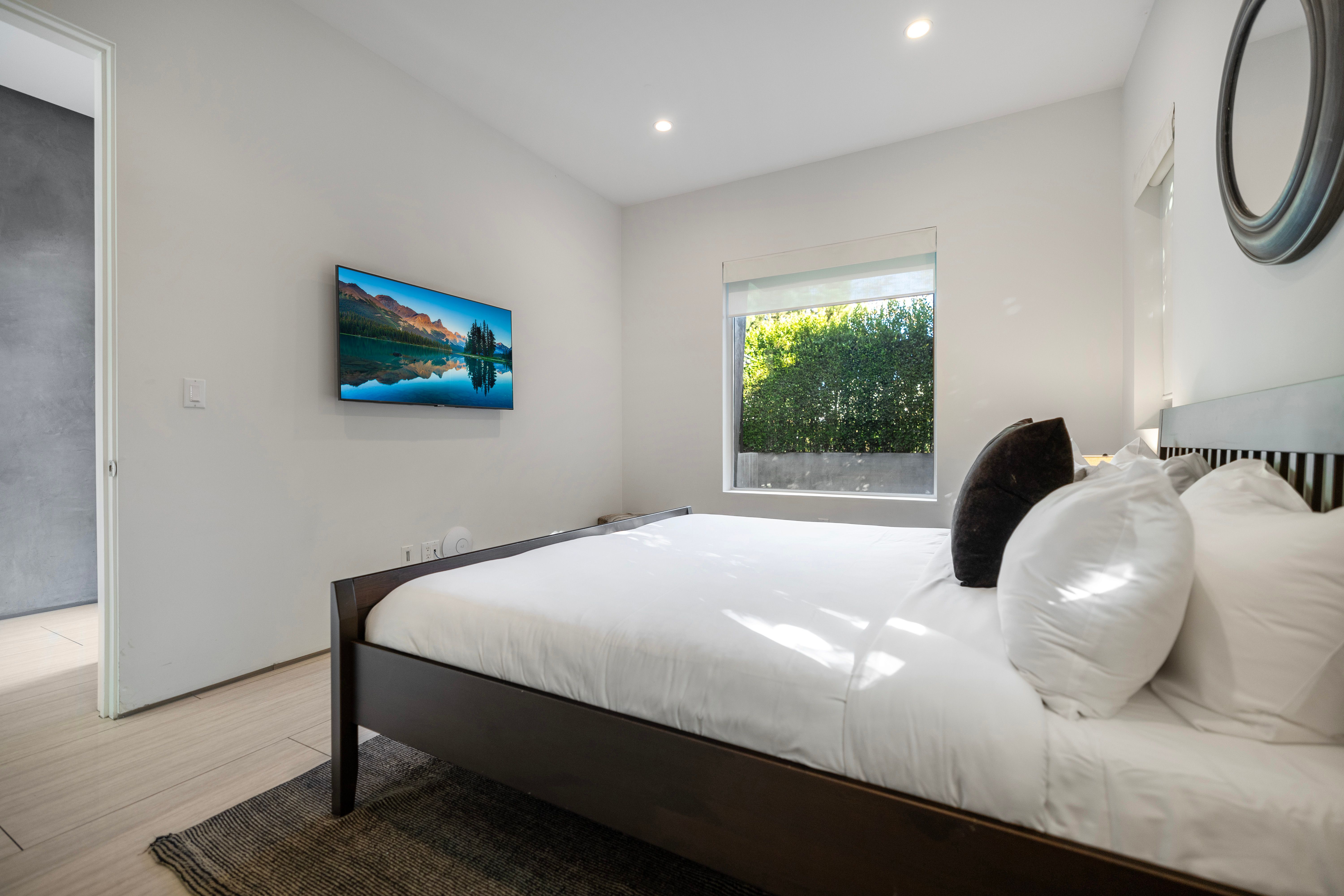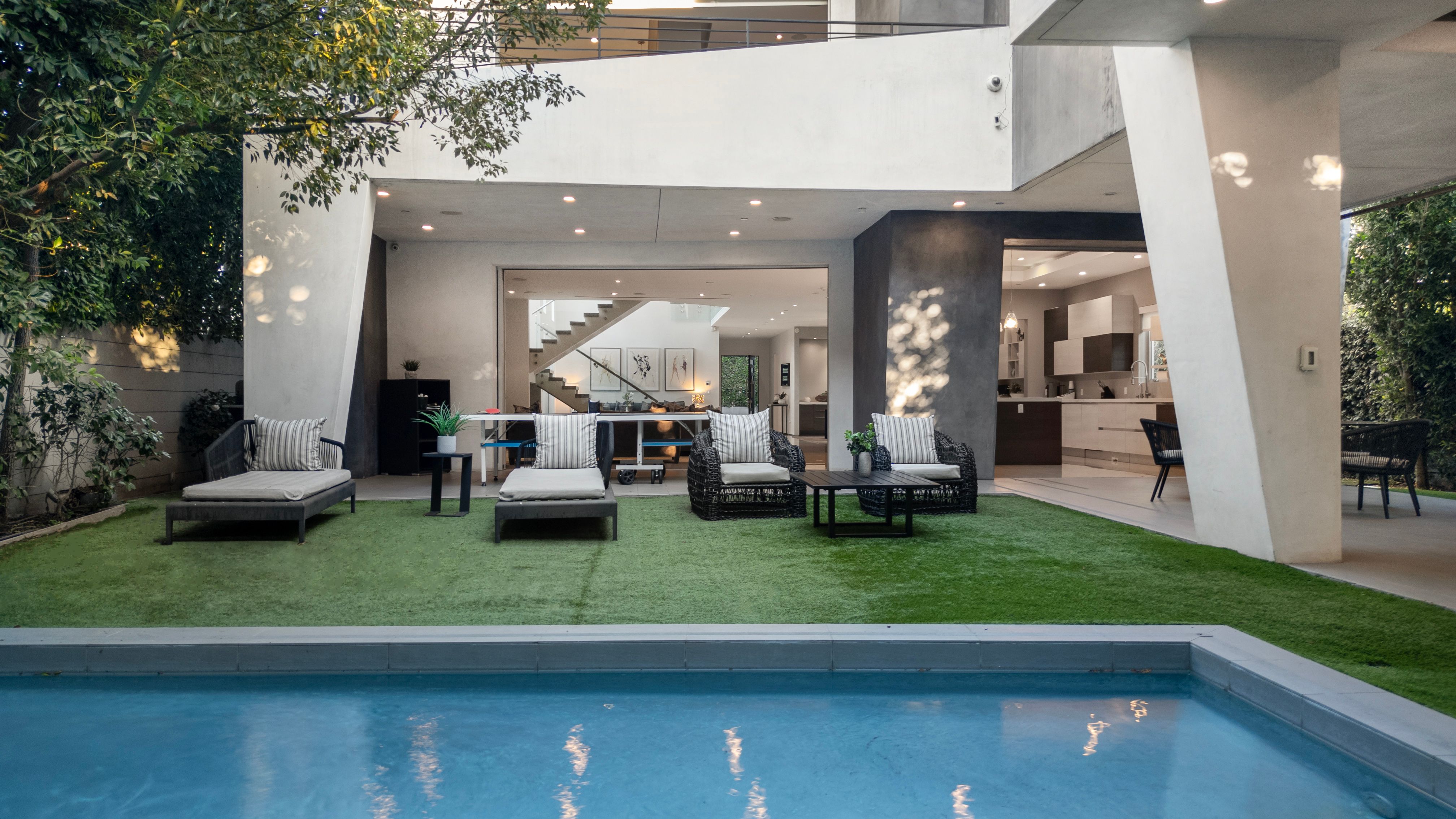 An absolute stunner of a villa situated in a prime Los Angeles location – this home is the epitome of Hollywood glitz and glamour. First impressions count for a lot in this town, and the grand entryway doesn't disappoint before leading you into the open-plan living space. Here, you'll find a formal living room with sumptuous sofas and a fireplace for cosy evenings, a dining area with velvet seating and eye-catching pendant lighting, and an inspirational chef's kitchen with custom Italian cabinetry. Slide back the doors and discover the equally awe-inspiring garden, with an enticing pool, an indulgent spa and even a two-storey waterfall – it's a true oasis. Back inside, head through the twenty-two-foot atrium and up the stairs to find three of the bedrooms and an exquisite master suite with an office, private gym, custom walk-in closet and balcony. If you can tear yourself away, your West Hollywood neighbourhood is worth exploring. Sandwiched between Beverly Boulevard and Melrose Avenue, you've got Southern California's quintessential fashion and dining destinations right on your doorstep. Come nightfall, book a table at one of the area's fantastic restaurants before moving on to any one of its vibrant bars.