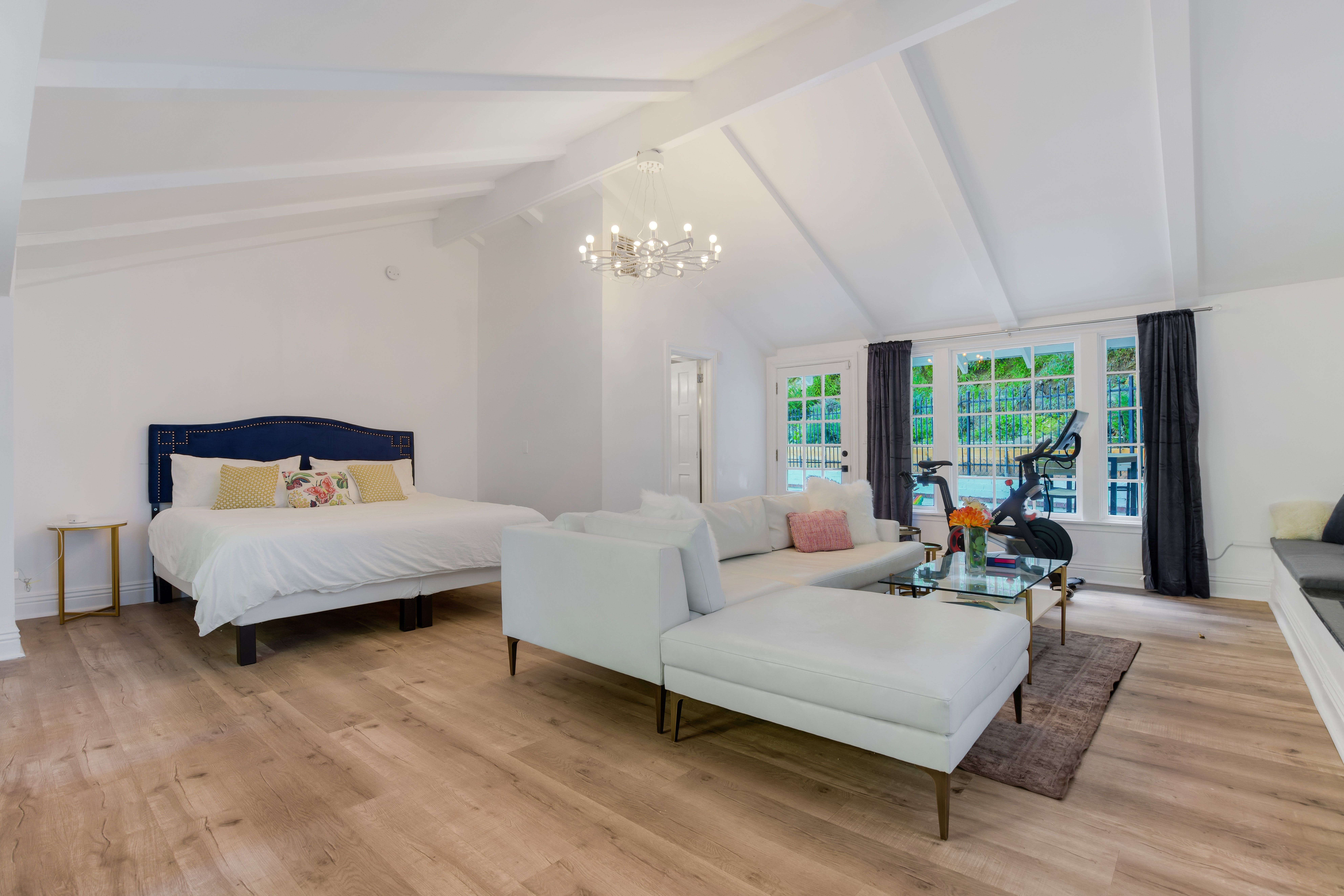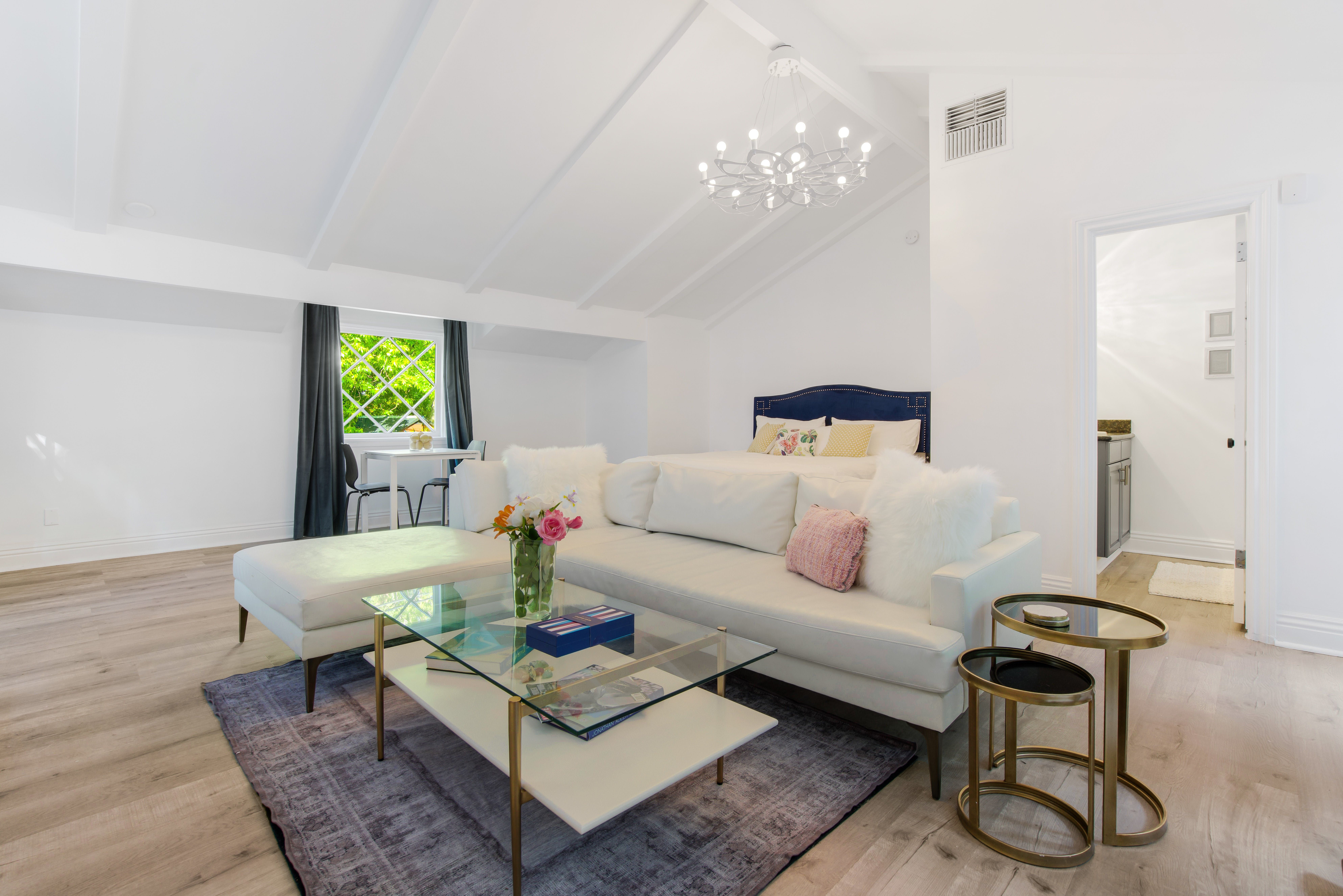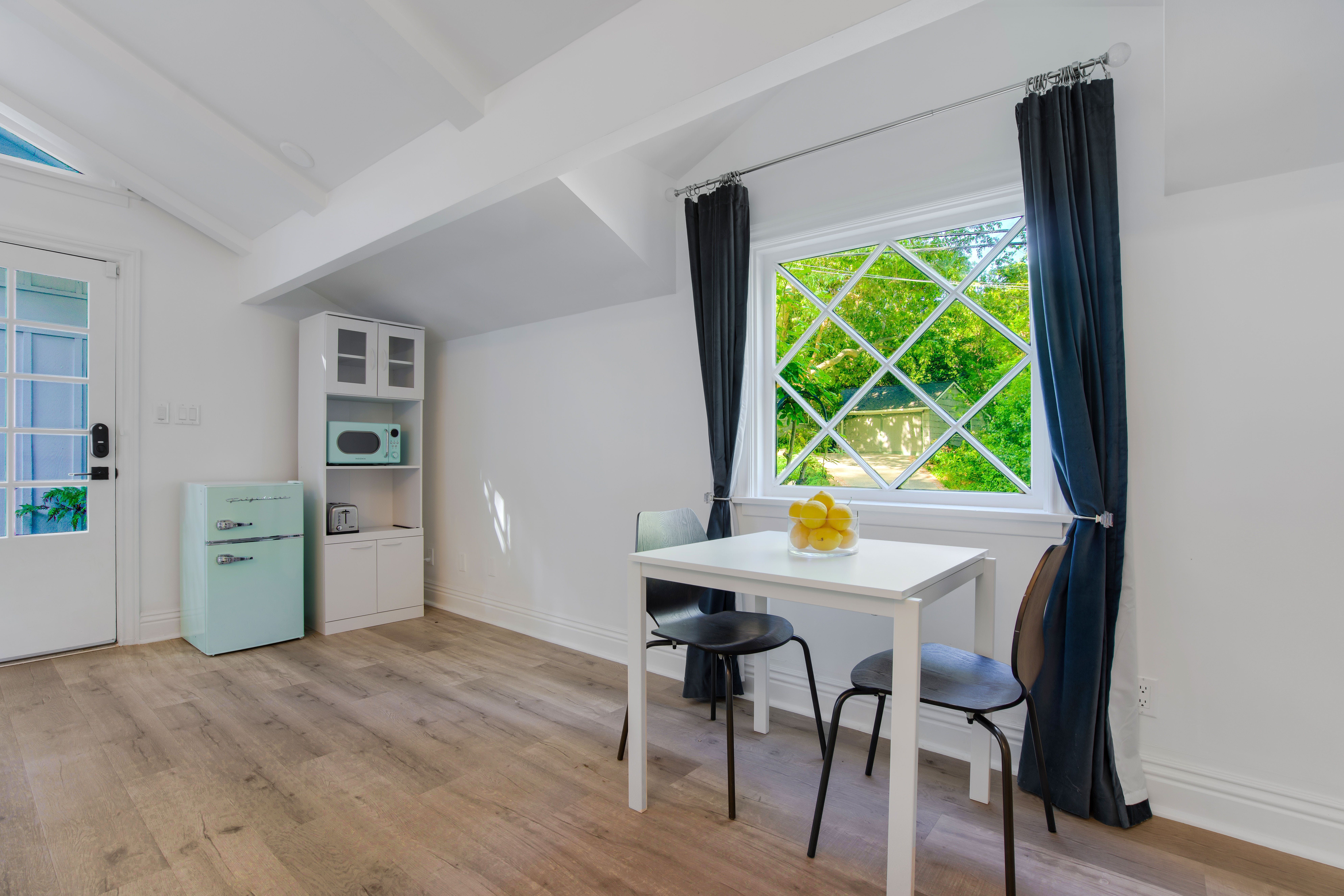 This quaint guest house backs onto a nature reserve, surrounded by hiking trails and under fifteen minutes from Beverly Hills. You'll have a private patio, but the heated pool is shared with the main house next door. Set up as a studio, the bed is not separate from the living and dining areas, so you won't have much privacy. While you'll find the kitchenette stocked with beverages, it's very small – you'll want a car to head out to eat. Luckily, you're under a mile from some fantastic restaurants, and your host has plenty of recommendations.