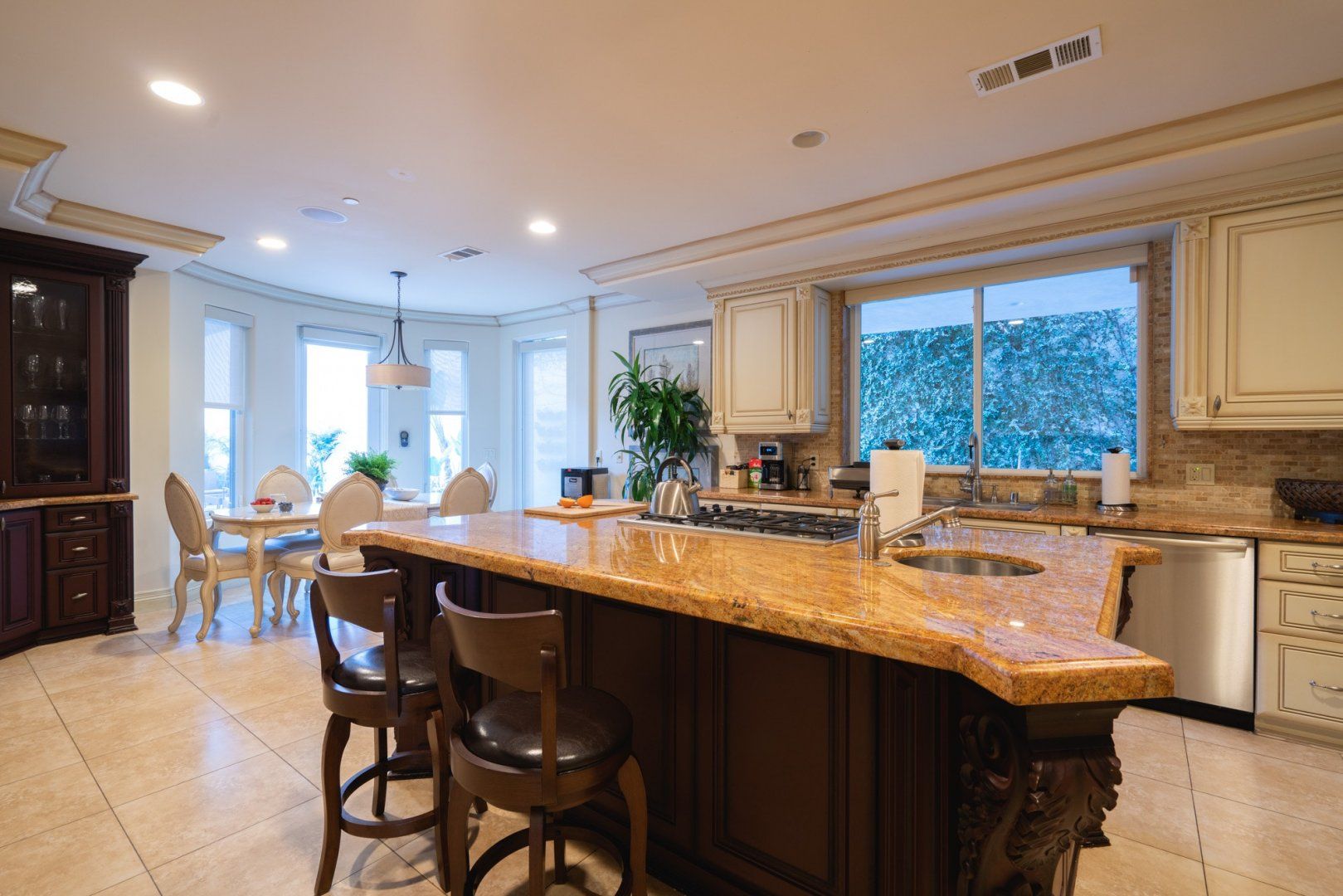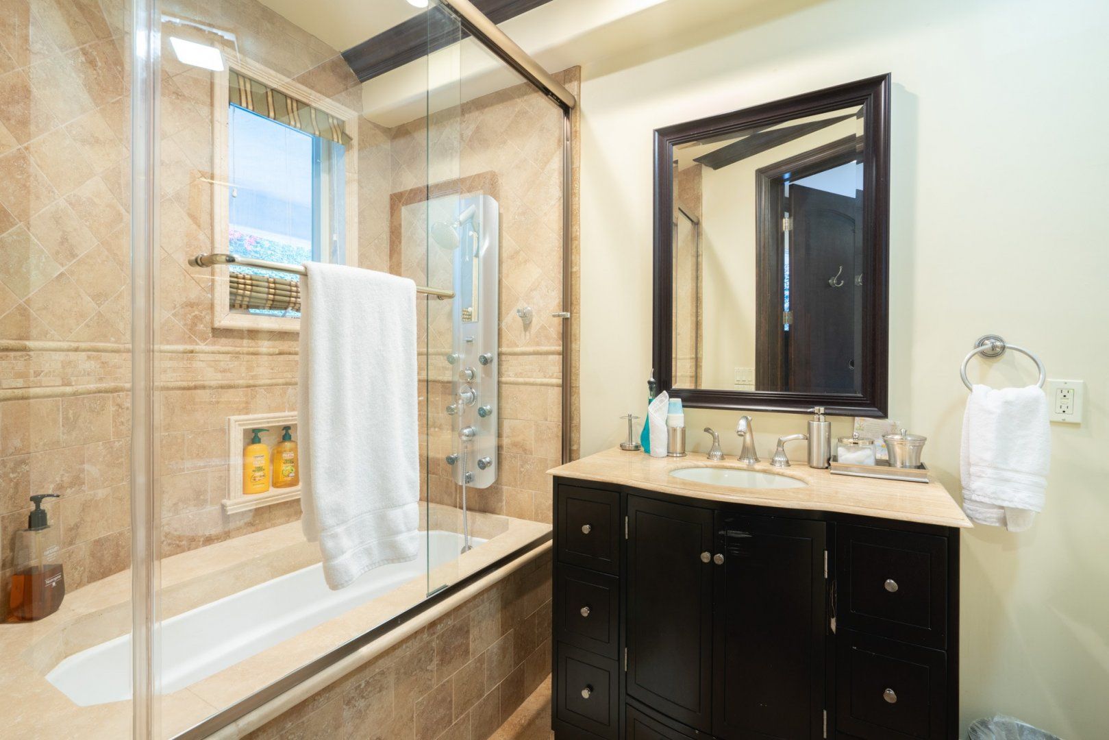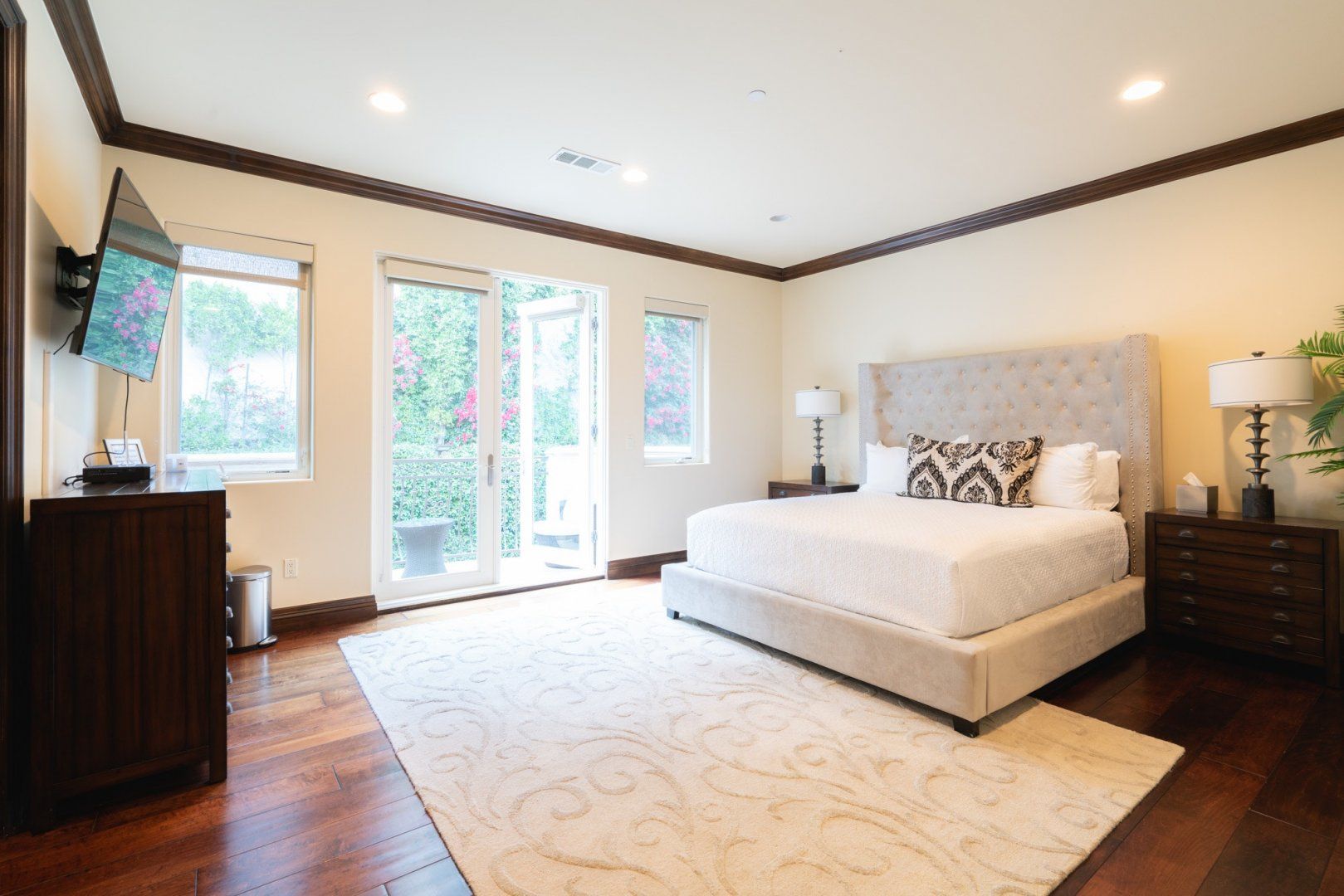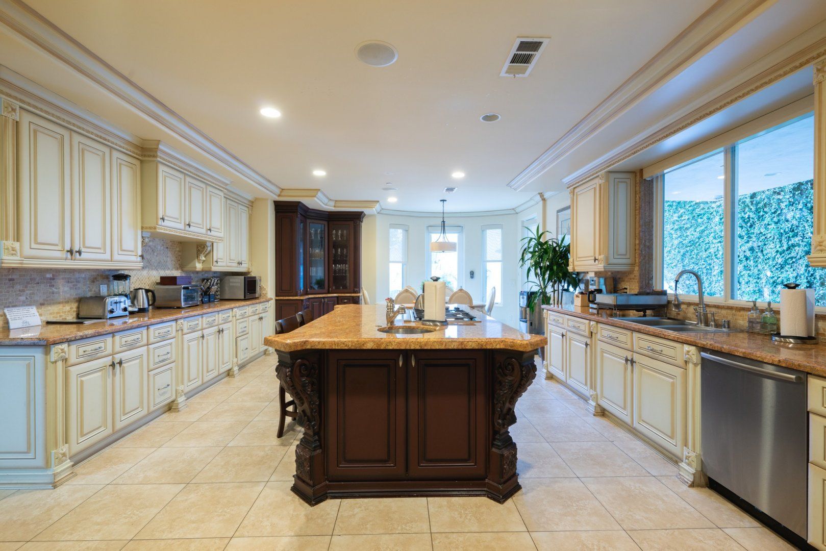Sprawled across three floors, this Beverly Hills haven is a grandiose and lavish mansion ideal for large gatherings or celebratory events. The entertainment opportunities are endless, featuring a pool, jacuzzi spa hot tub, basketball and tennis court, sauna, and media room. Its Mediterranean style interiors and design will have you feeling more like you're in the south of France than in Los Angeles, but rest assured you're bound to lap up equally warm and sunny days when staying here. Relax in solitude on the day beds or make the most of the multitude of things to do inside the house – the games room provides the perfect spot for socialising, while there's no better place than the spa-like bathrooms for when you need moments of "me time". Unwind in the enormous jacuzzi bathtub with a glass of wine in hand after a day out shopping in Beverly Hills. By the fire pit in the garden is an idyllic spot to hang out as the sun sets – and the enormous state-of-the-art kitchen is a dream come true for those who enjoy cooking. So why not hire a private chef to come and tailor a meal to your personalised preferences? With an array of incredible restaurants in the neighbourhood, eating out never looked so good either.