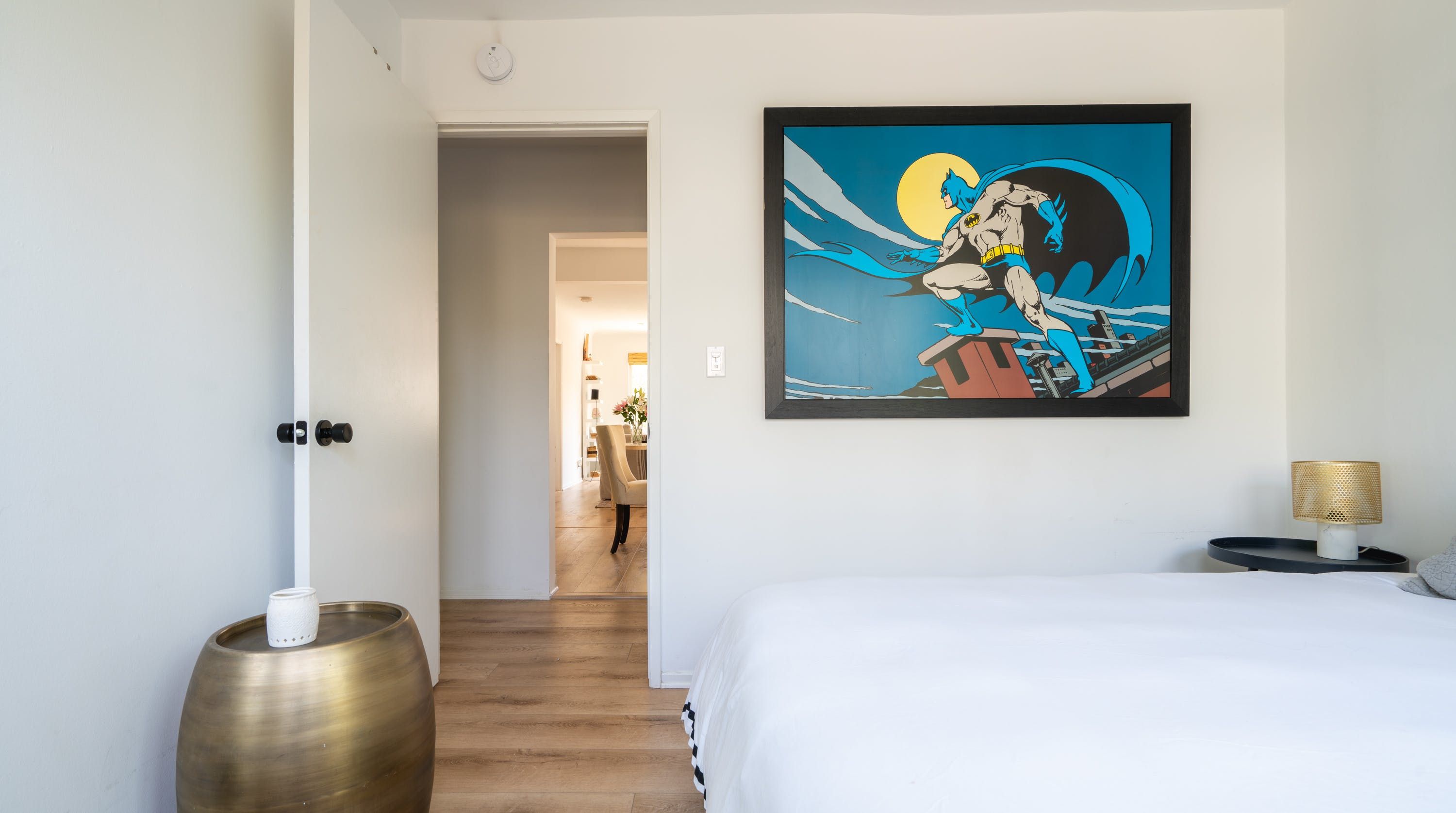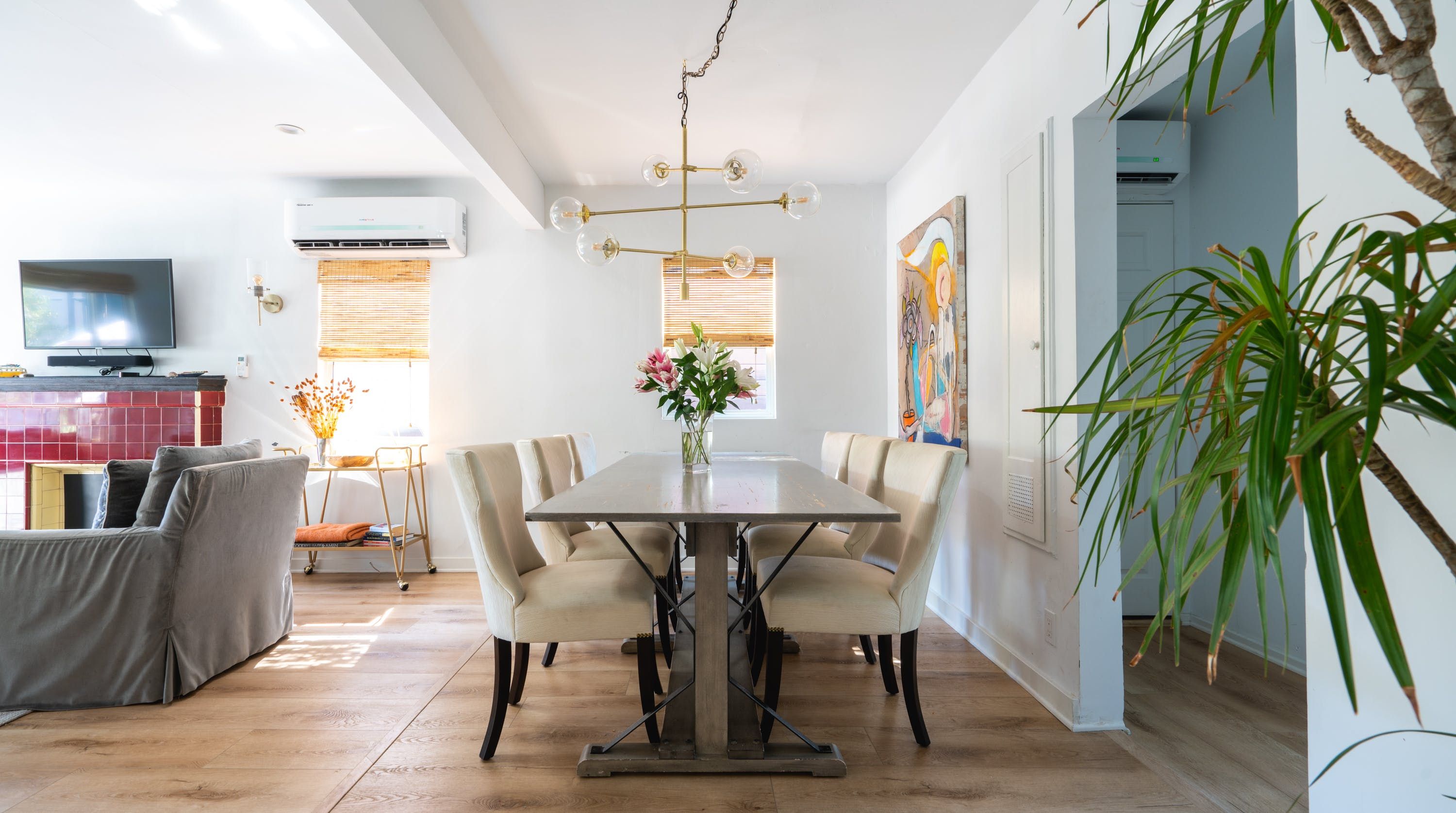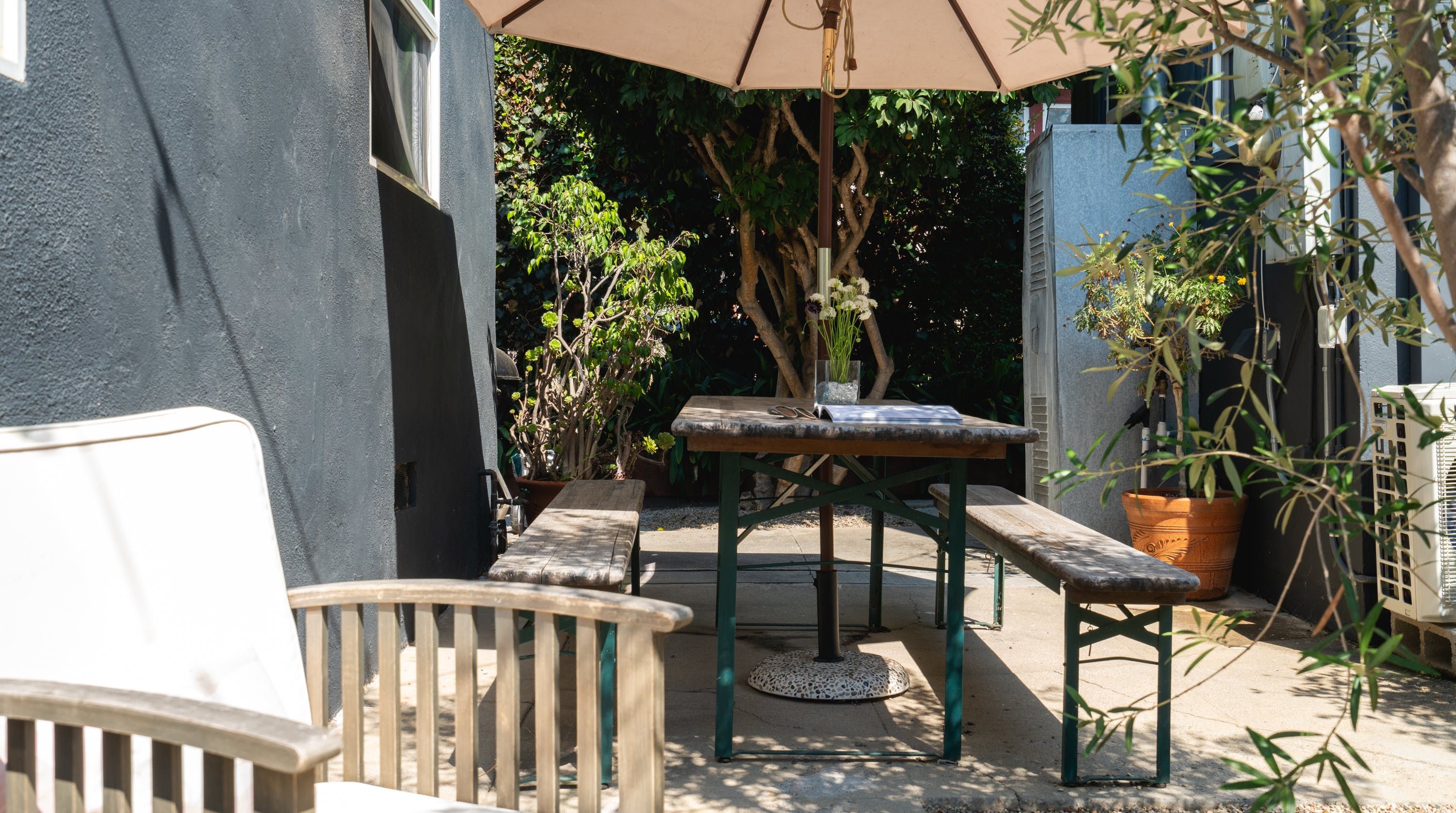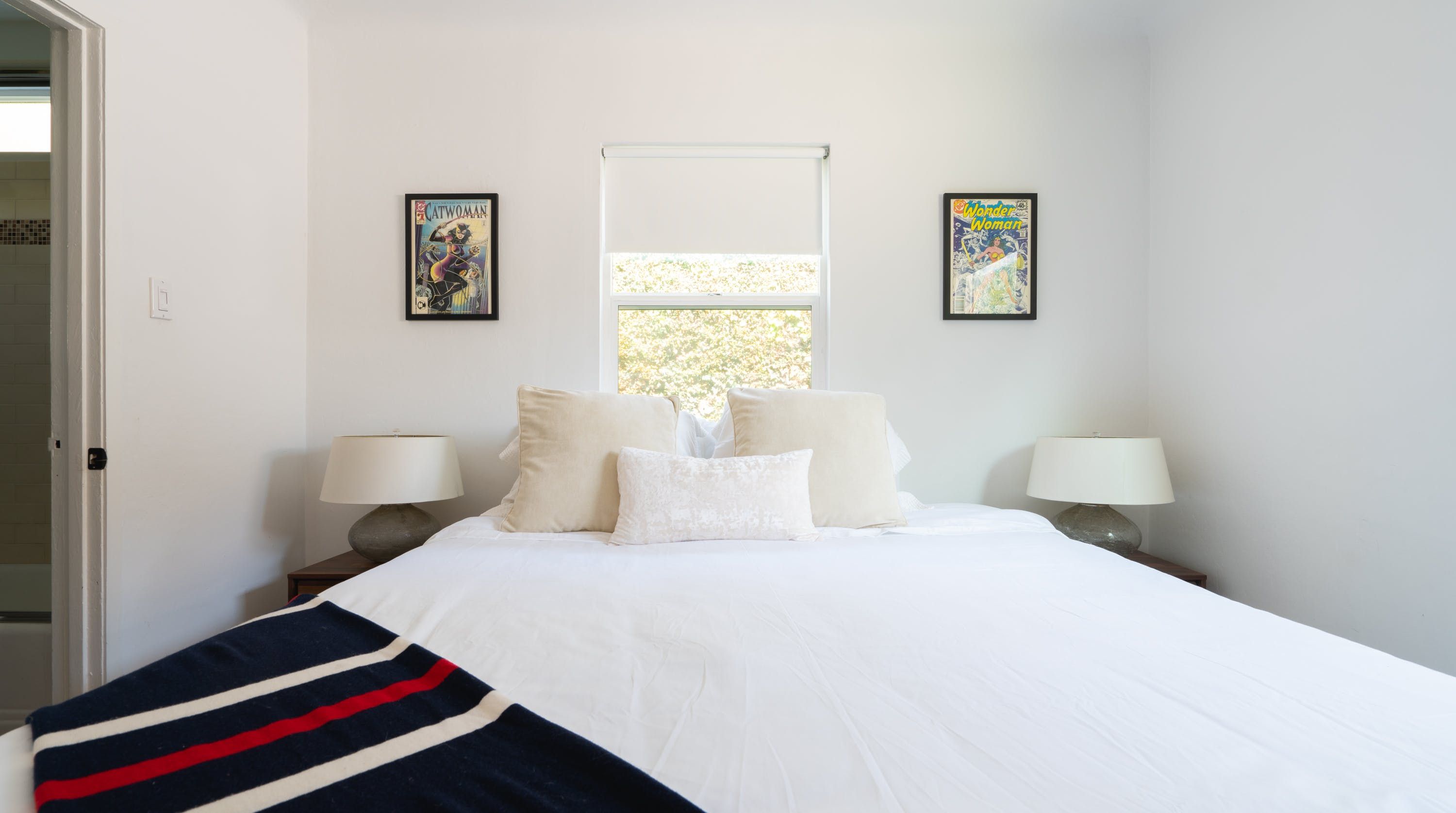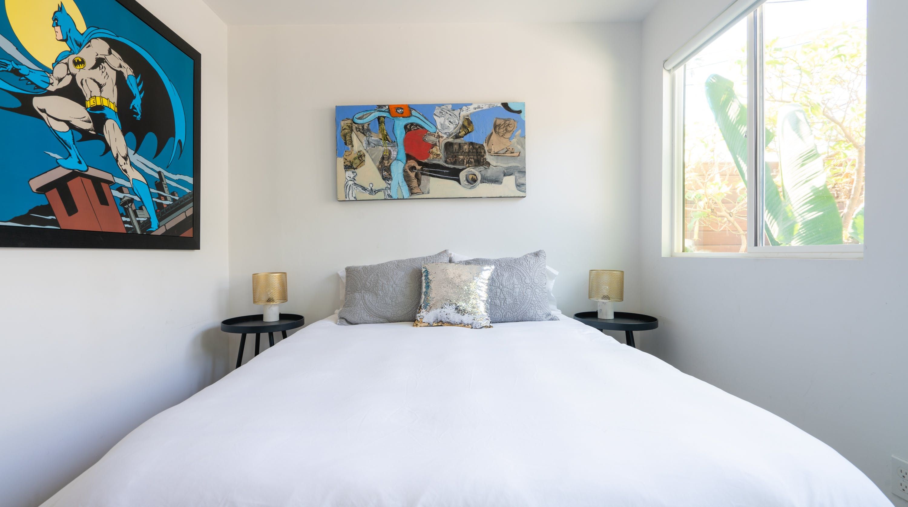 Settle into the most perfect seaside location. Nestled between Abbot Kinney and Rose Avenue, you're a stone's throw from a plethora of innovative restaurants, cool bars and stylish shops. The house also comes with bikes, which are especially handy for the quick five-minute cycle to the beach, or for when you're looking to explore slightly further afield. Back at the home and you're set back off the street, with a private entrance that's separate from the main house – allowing you to come and go as you please. If you bring a car, there's parking on the back driveway, which is an added bonus. The interior is decorated in soothing neutral tones, with bright splashes of colour courtesy of the eclectic wall art, which ranges from large painted canvases to comic books and Vogue covers. The cherry on top of the cake is the lovely outdoor area, which is a perfect place to sip your morning coffee or cook up an end-of-day barbecue.