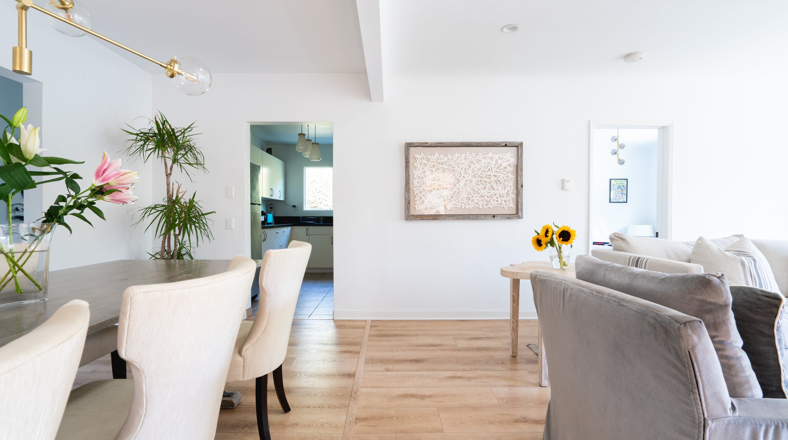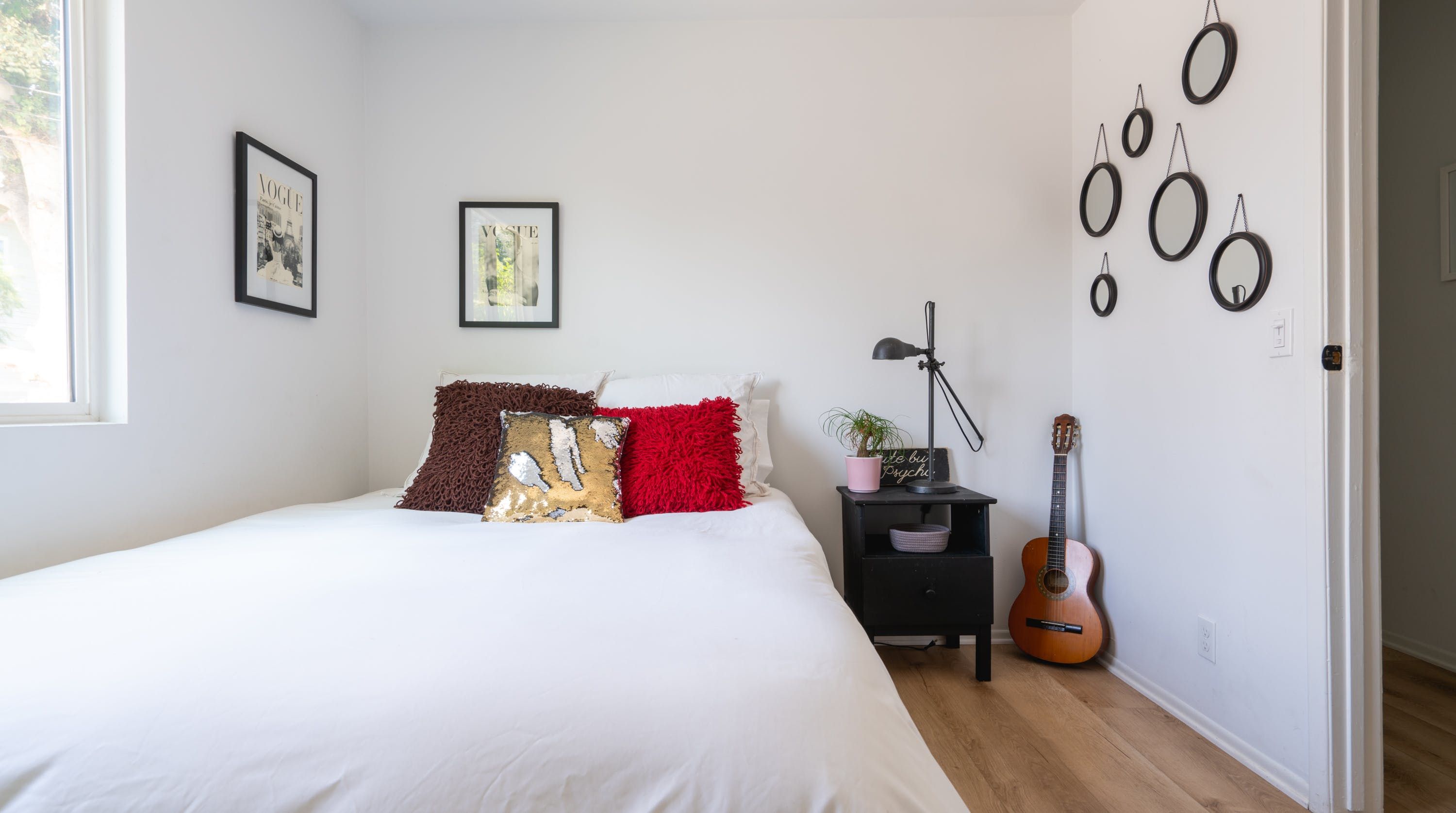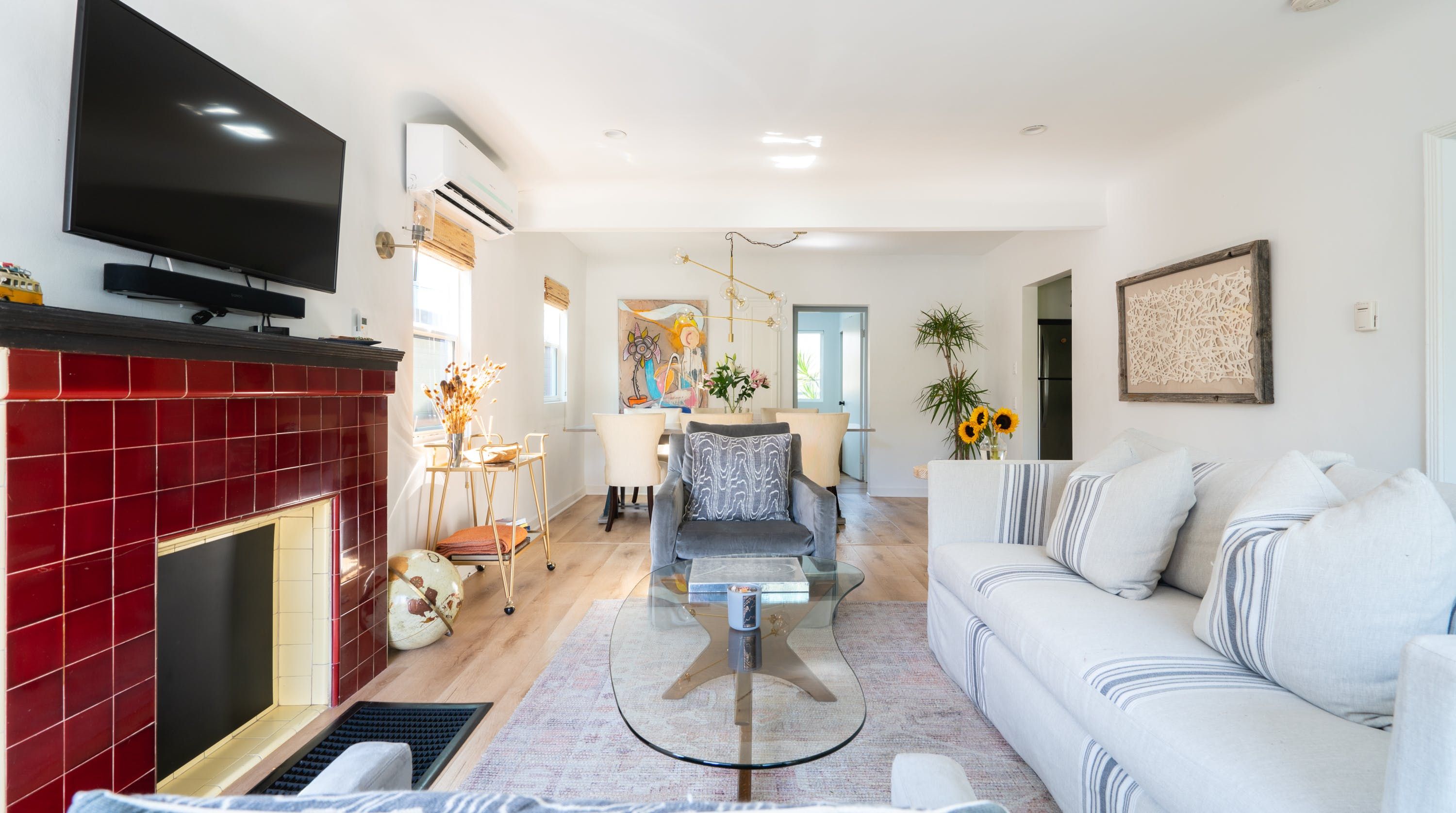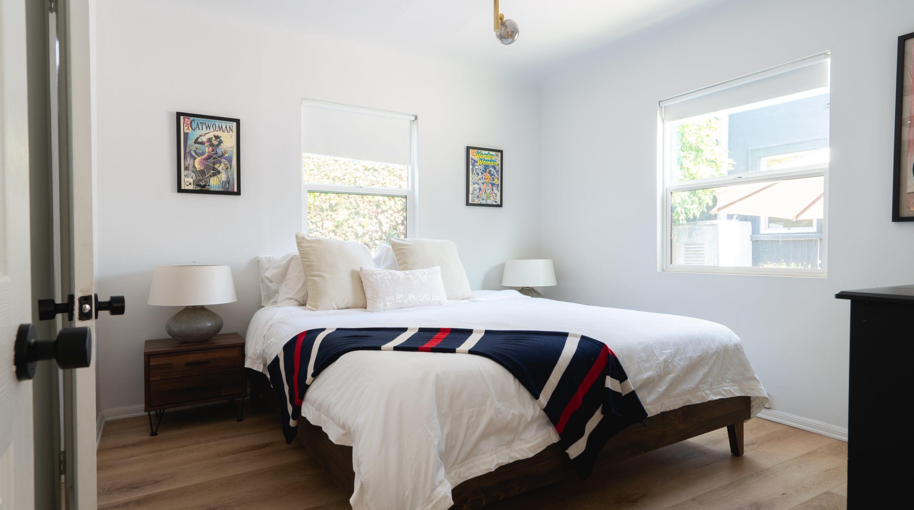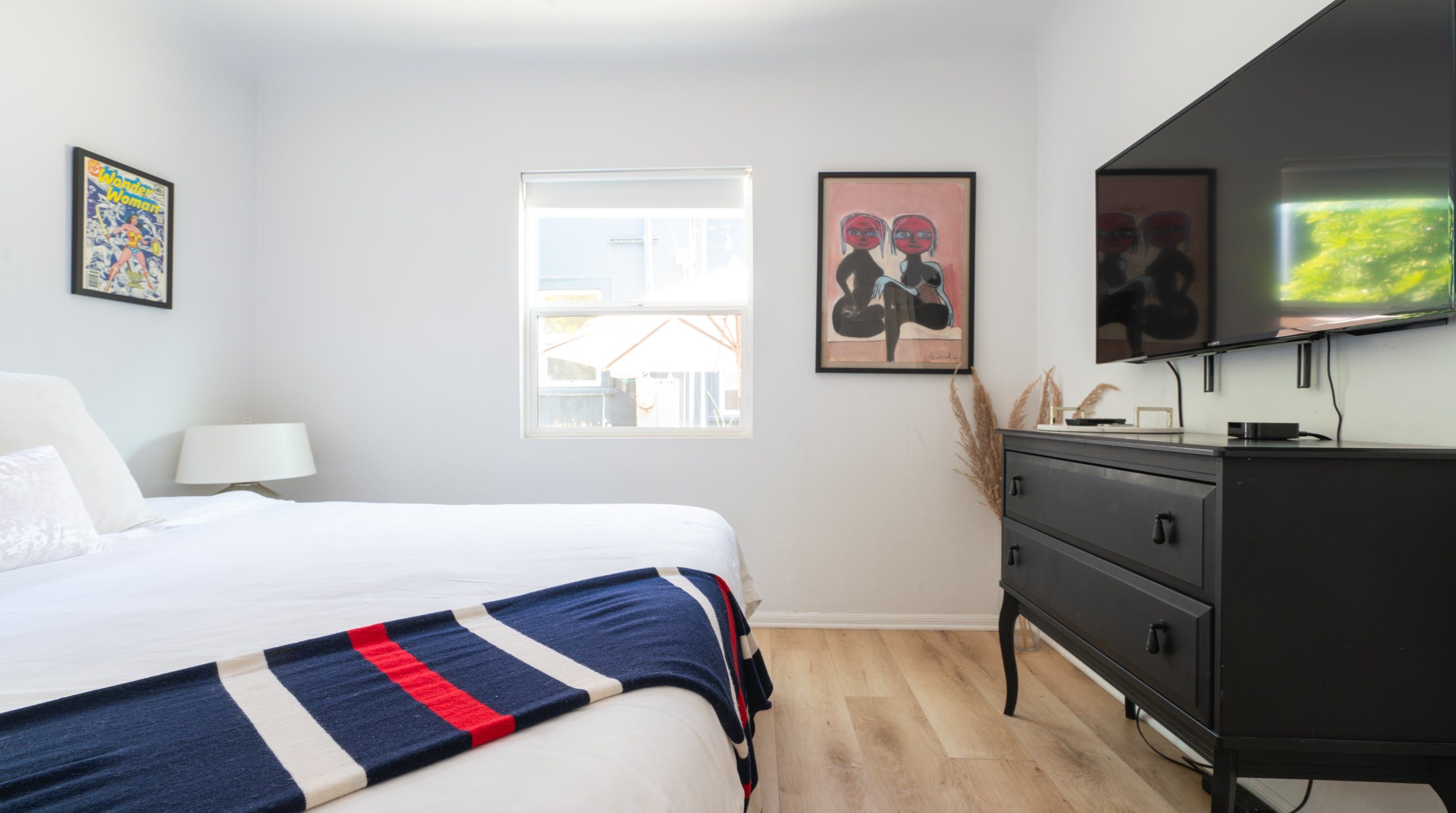 Settle into the most perfect seaside location. Nestled between Abbot Kinney and Rose Avenue, you're a stone's throw from a plethora of innovative restaurants, cool bars and stylish shops. The house also comes with bikes, which are especially handy for the quick five-minute cycle to the beach, or for when you're looking to explore slightly further afield. Back at the home and you're set back off the street, with a private entrance that's separate from the main house – allowing you to come and go as you please. If you bring a car, there's parking on the back driveway, which is an added bonus. The interior is decorated in soothing neutral tones, with bright splashes of colour courtesy of the eclectic wall art, which ranges from large painted canvases to comic books and Vogue covers. The cherry on top of the cake is the lovely outdoor area, which is a perfect place to sip your morning coffee or cook up an end-of-day barbecue.