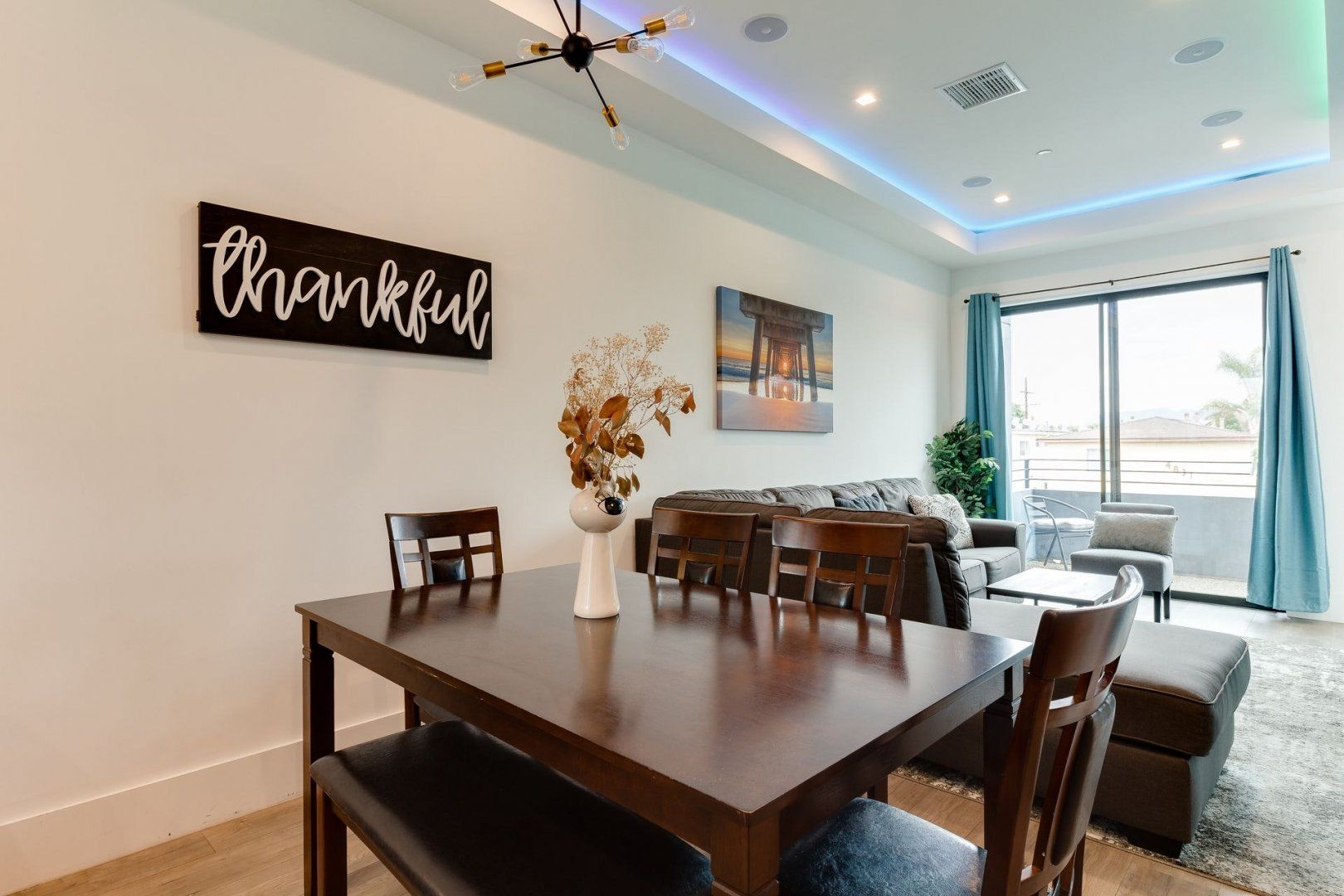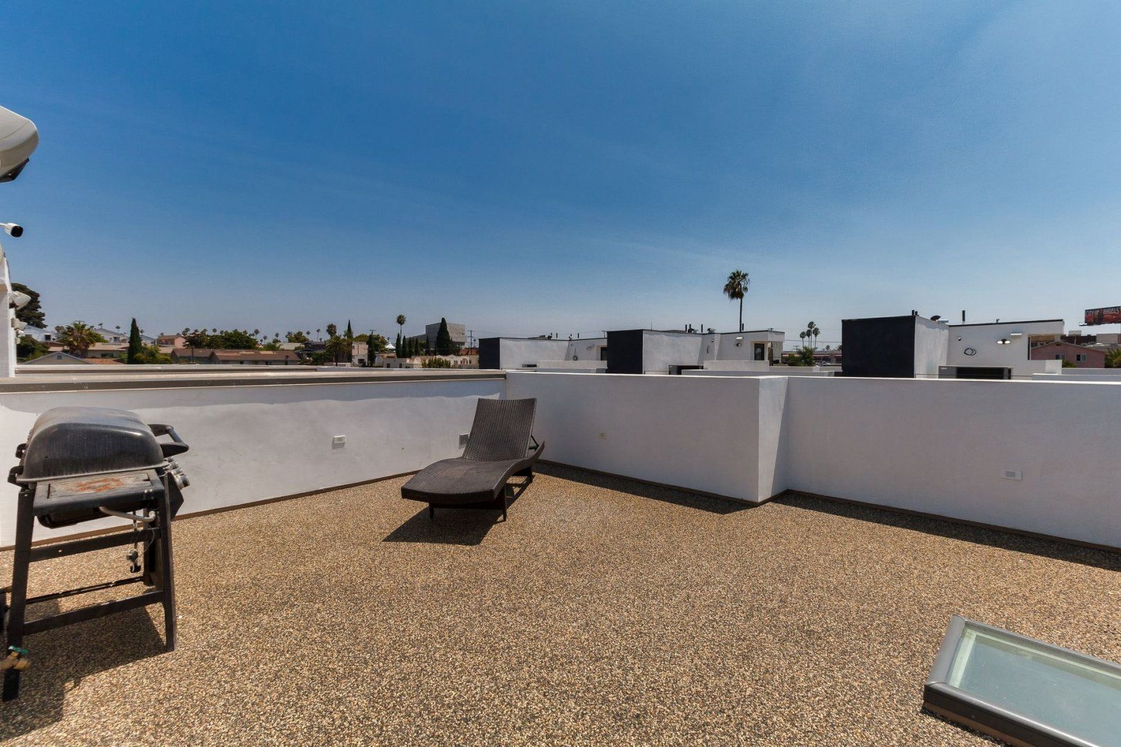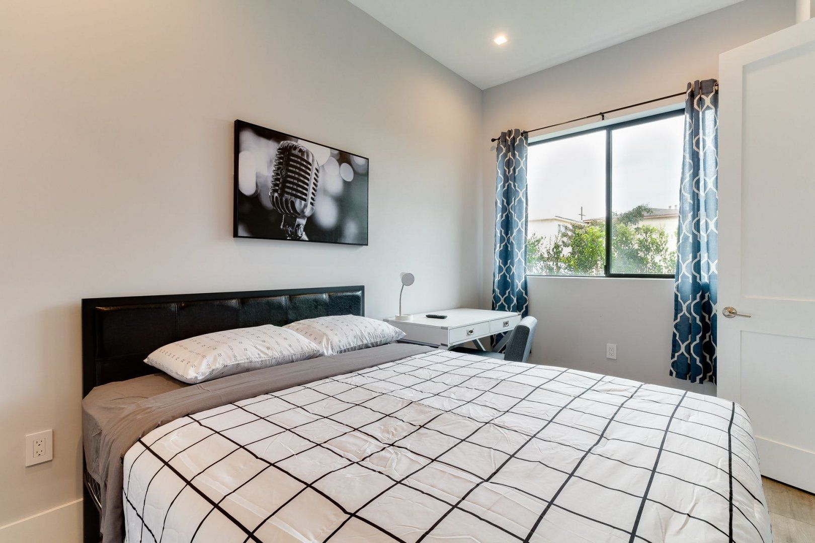 Thoughtful design is evident in this home’s interiors – the plush sofa invites you to sit back and enjoy your new read, whilst the kitchen is perfectly kitted-out for intimate meals with your group. Head to the building’s rooftop for a light bronzing session on the loungers and soak up the LA vistas. If work is on the agenda, the bright living space is a peaceful spot for emails, whilst the surrounding neighbourhood offers an abundance of cool cafe spots for you to work at.