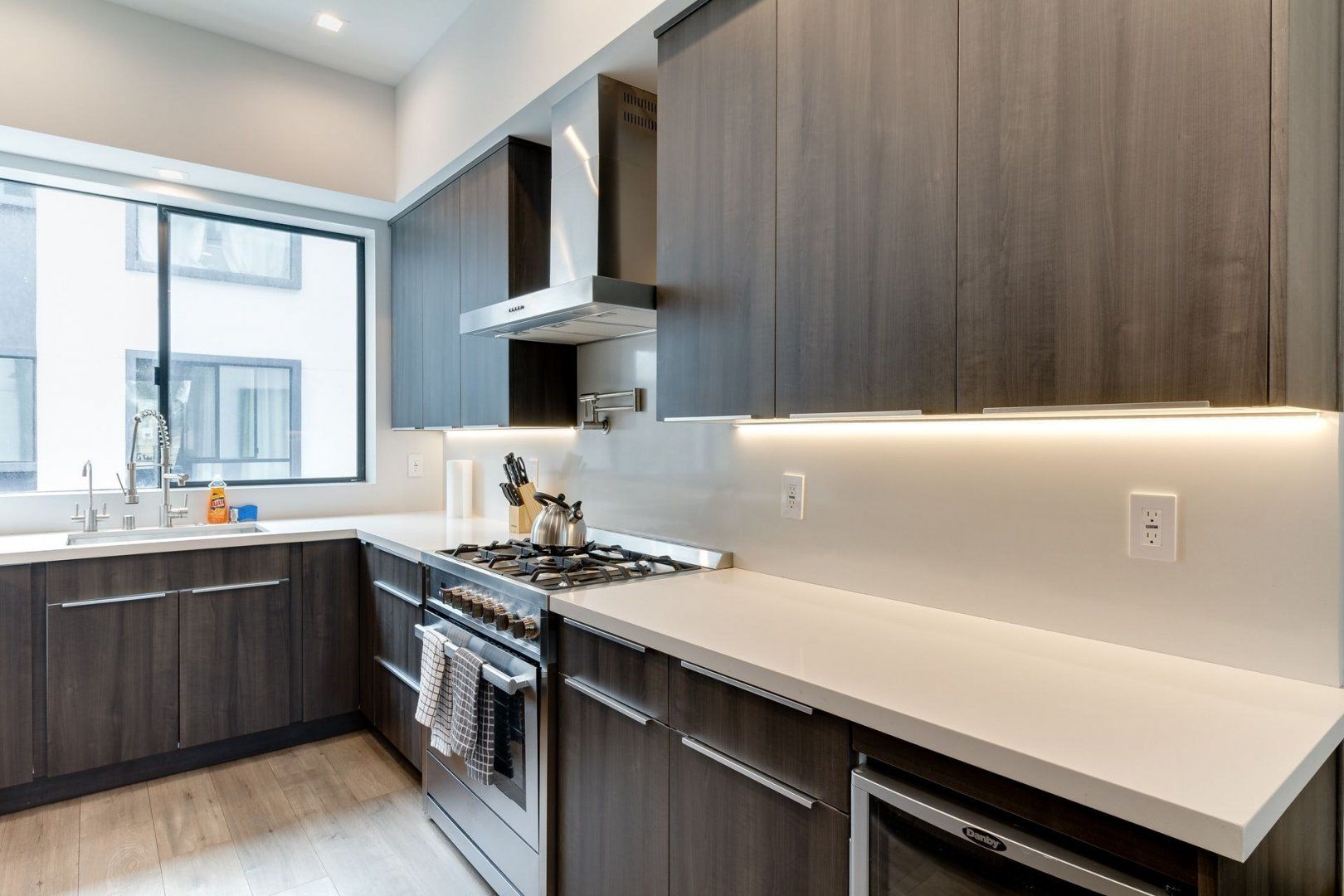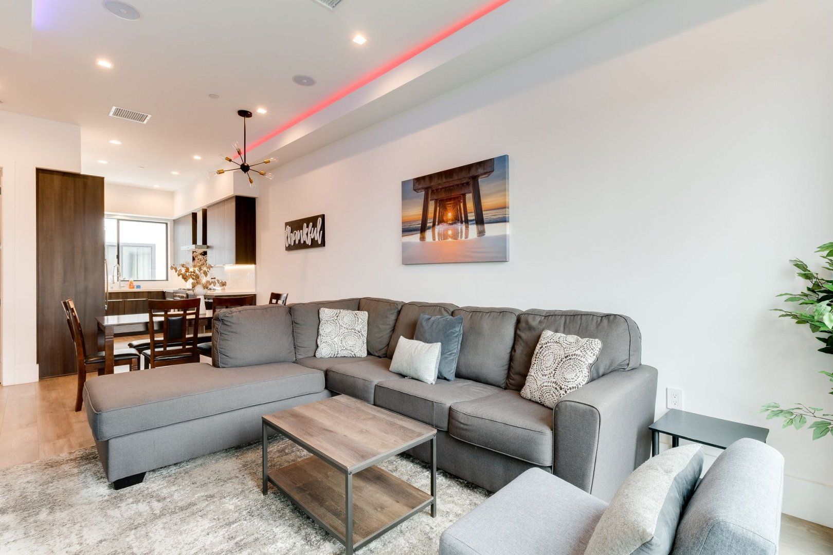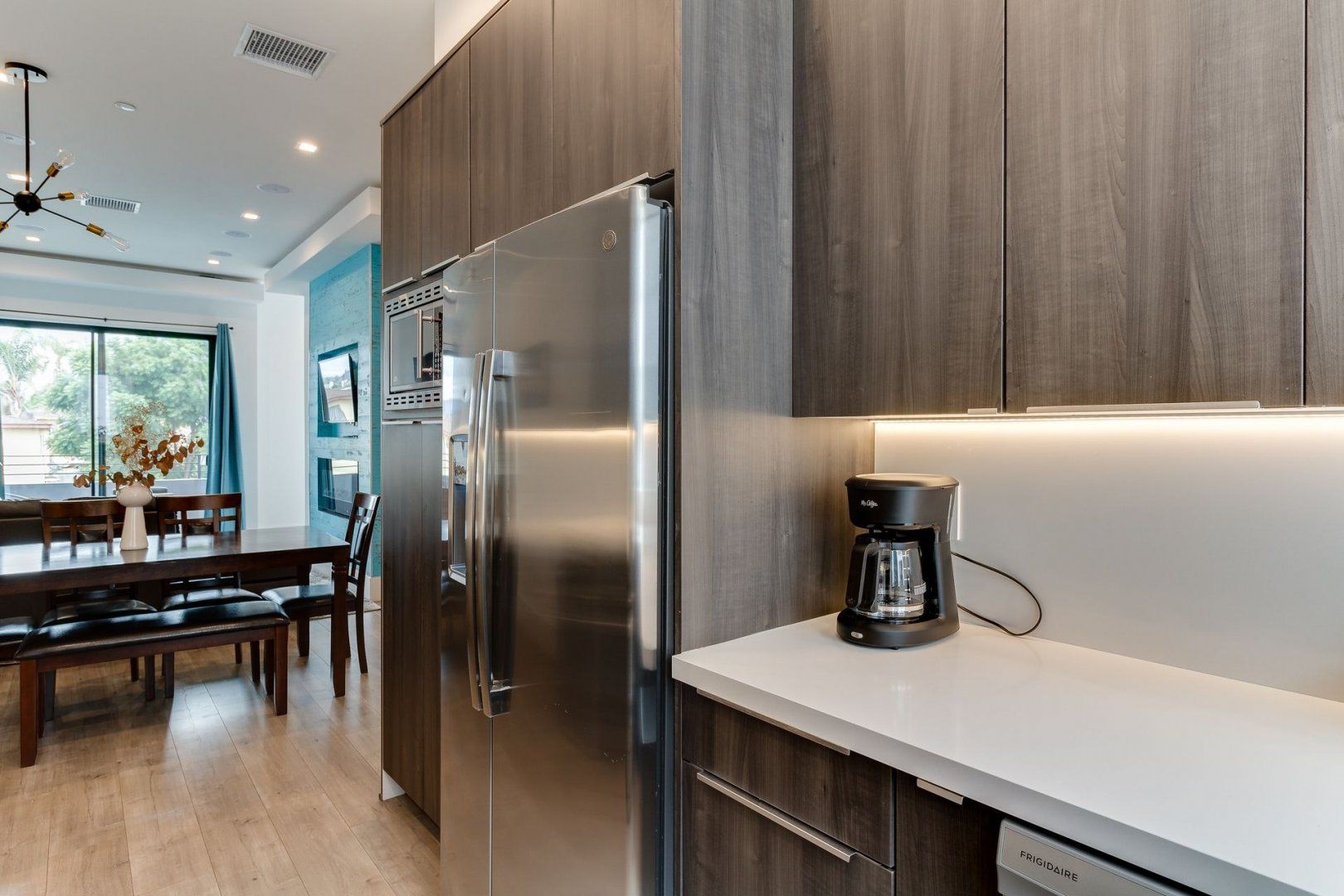 Thoughtful design is evident in this home’s interiors – the plush sofa invites you to sit back and enjoy your new read, whilst the kitchen is perfectly kitted-out for intimate meals with your group. Head to the building’s rooftop for a light bronzing session on the loungers and soak up the LA vistas. If work is on the agenda, the bright living space is a peaceful spot for emails, whilst the surrounding neighbourhood offers an abundance of cool cafe spots for you to work at.