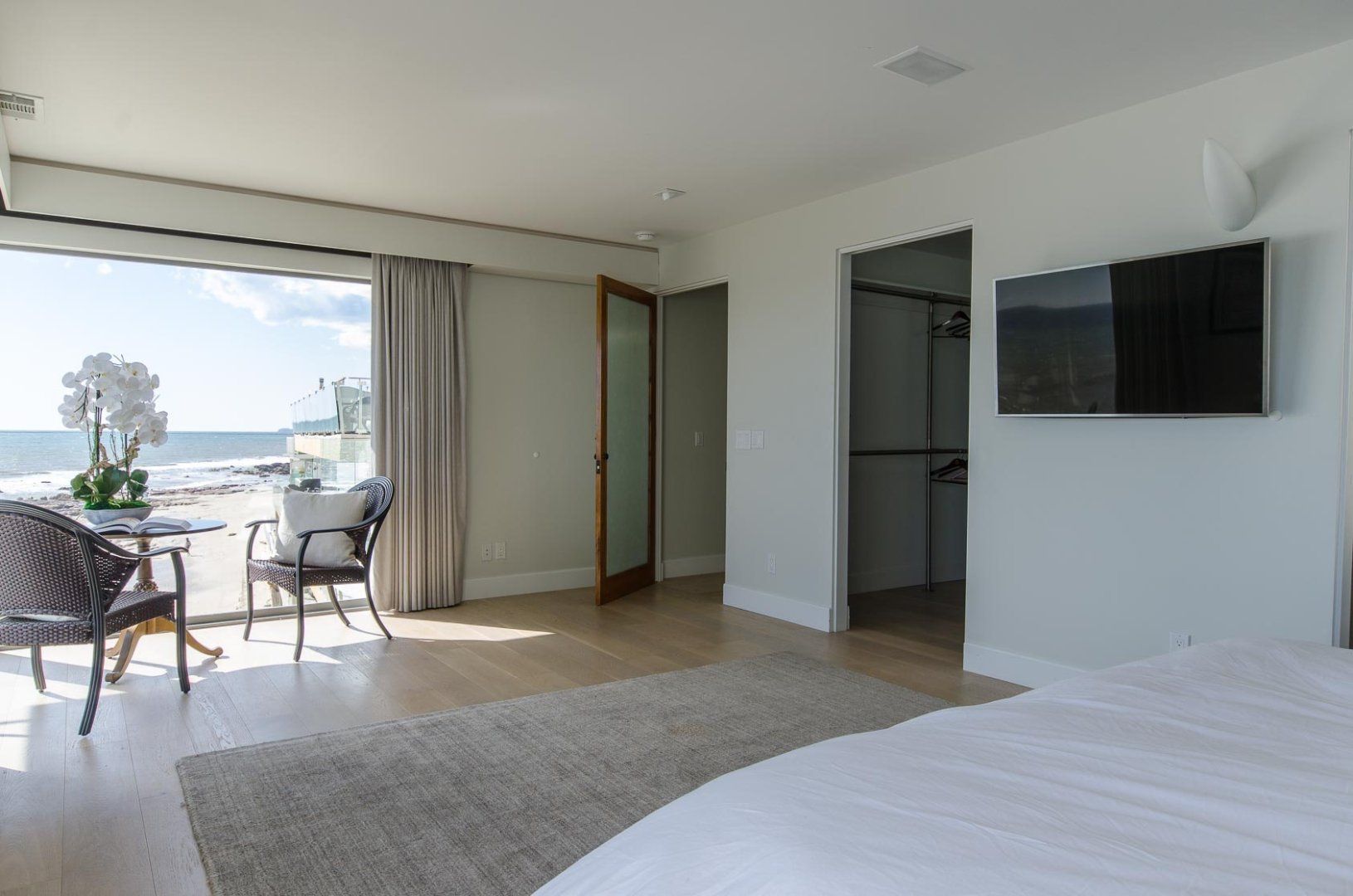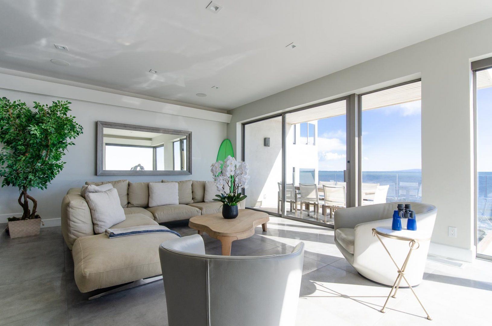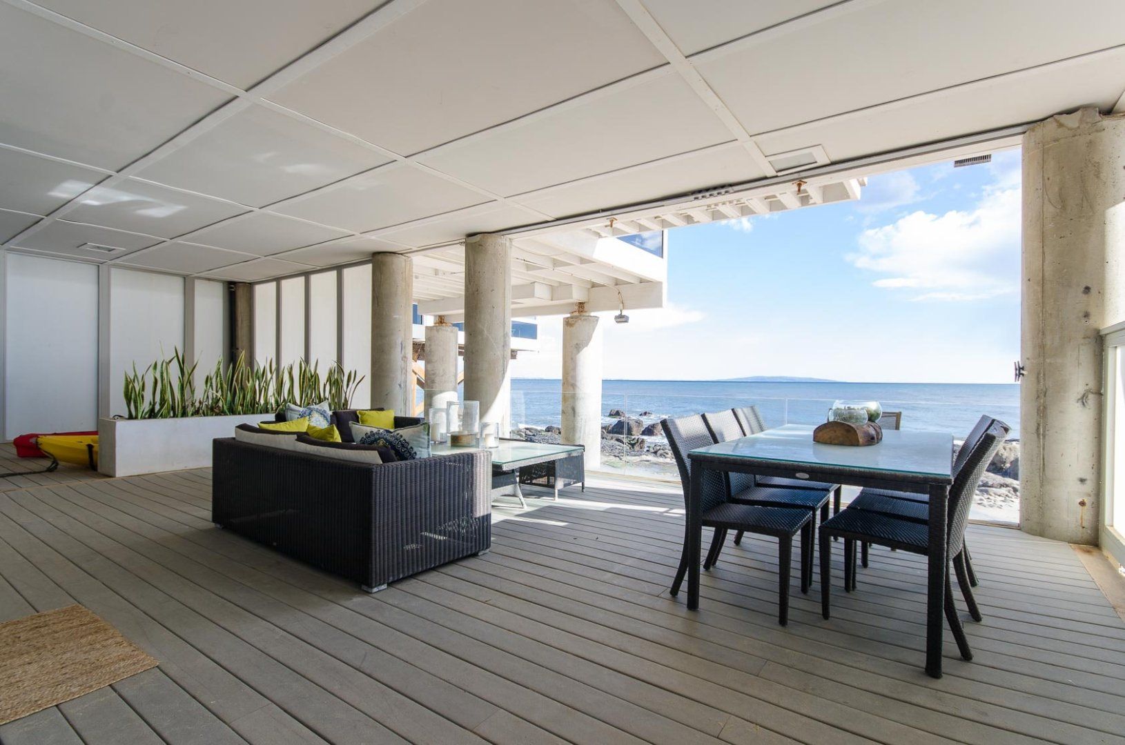 When presented with a view of such beauty, the only response that can really do it justice is 'wow'. That was our reaction as we stood on one of the home's many balconies and gazed out at the endless Pacific Ocean. You don't even have to head outside to take in this stunning panorama, thanks to the huge floor-to-ceiling windows that take up most of the walls. With your attention naturally drawn away from the home, it might take you a moment before you can appreciate just how well the interior has been put together. The cleansing white living area and handsome wood-panelled kitchen are both boosted by a collection of impressive accoutrements, including an inbuilt Bose sound system, Miele cooking appliances and a Jacuzzi bathtub. A little more low-key but no less appreciated are three sea kayaks and fishing poles that are also available for guests to use. To reach the beach, all you have to do is descend the stairs, pass the home's deck with alfresco dining area and hey presto, you're there. Countless hours of fun await, whether you're atop the waves or out exploring Santa Monica, which is less than a quarter of an hour's drive away.