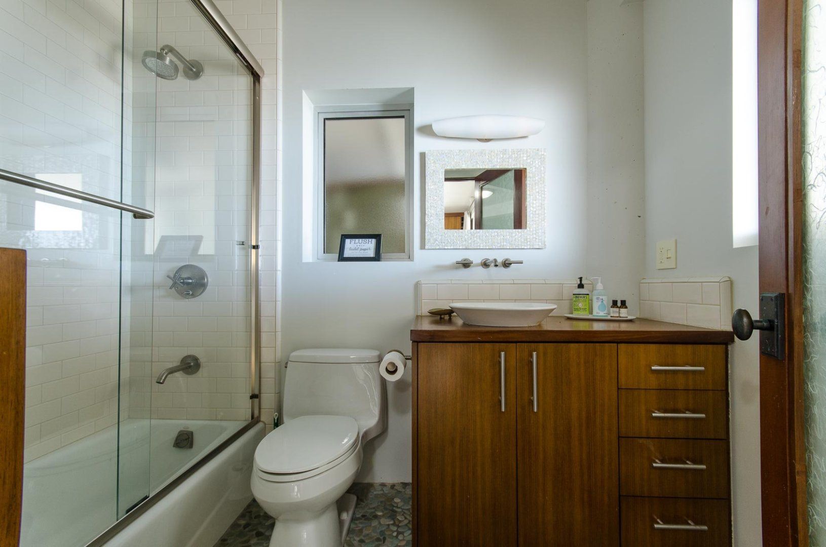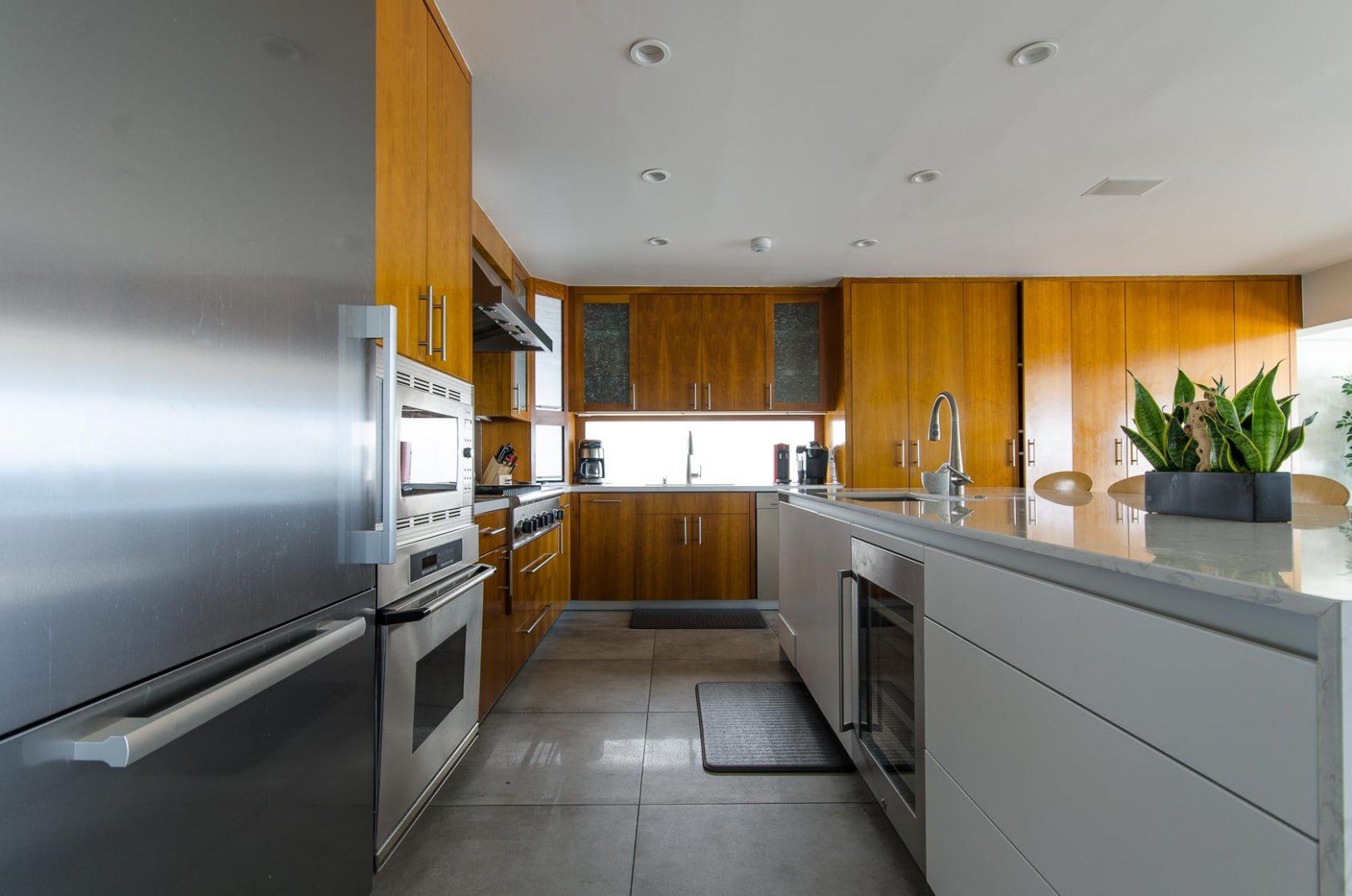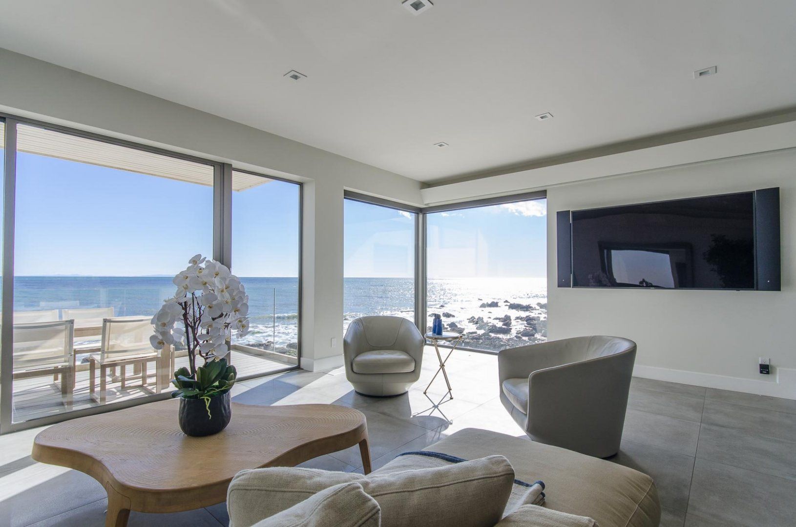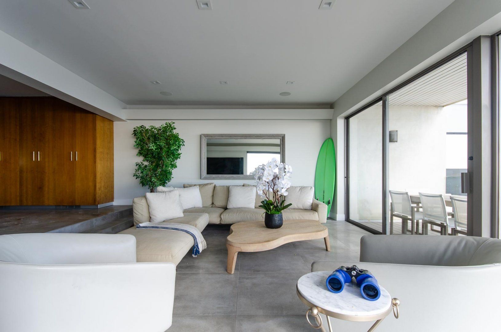 When presented with a view of such beauty, the only response that can really do it justice is 'wow'. That was our reaction as we stood on one of the home's many balconies and gazed out at the endless Pacific Ocean. You don't even have to head outside to take in this stunning panorama, thanks to the huge floor-to-ceiling windows that take up most of the walls. With your attention naturally drawn away from the home, it might take you a moment before you can appreciate just how well the interior has been put together. The cleansing white living area and handsome wood-panelled kitchen are both boosted by a collection of impressive accoutrements, including an inbuilt Bose sound system, Miele cooking appliances and a Jacuzzi bathtub. A little more low-key but no less appreciated are three sea kayaks and fishing poles that are also available for guests to use. To reach the beach, all you have to do is descend the stairs, pass the home's deck with alfresco dining area and hey presto, you're there. Countless hours of fun await, whether you're atop the waves or out exploring Santa Monica, which is less than a quarter of an hour's drive away.