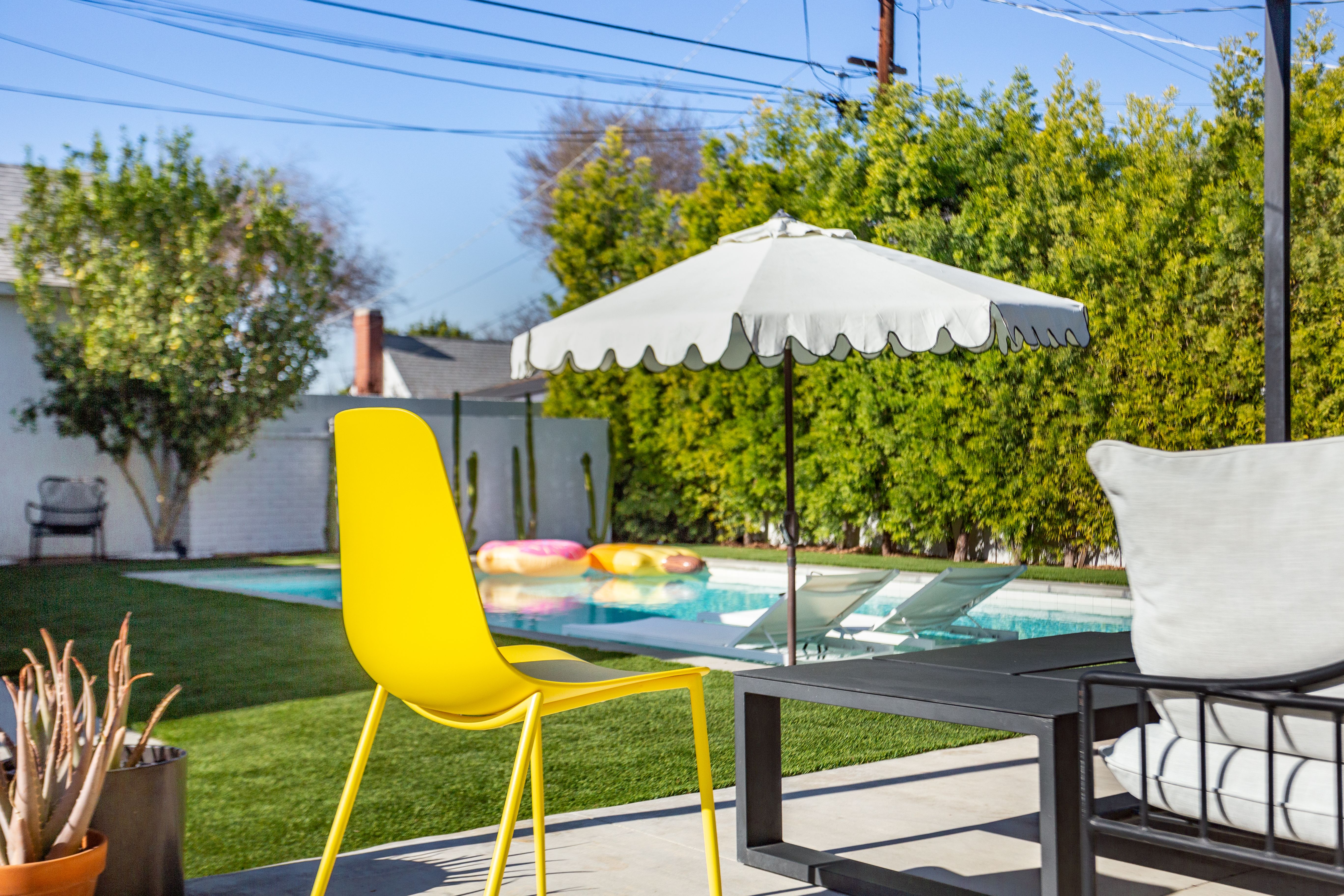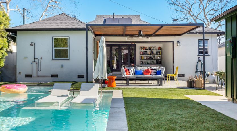 Indulge in the ultimate LA lifestyle at this modern home in Crenshaw. Take a dip in the crystal blue pool, surrounded by palm trees, and sip margaritas in the comfortable outdoor lounge. The bright and stylish living room and dining room are great for entertaining, while LA’s vibrant and diverse restaurant scene is on your doorstep. The sunroom is perfect for unwinding with a good book, while the sunroom can be used as an indoor-outdoor office should you need to work during your stay. Within driving distance of all the city’s major attractions, this is the ideal spot for a So-Cal retreat.
