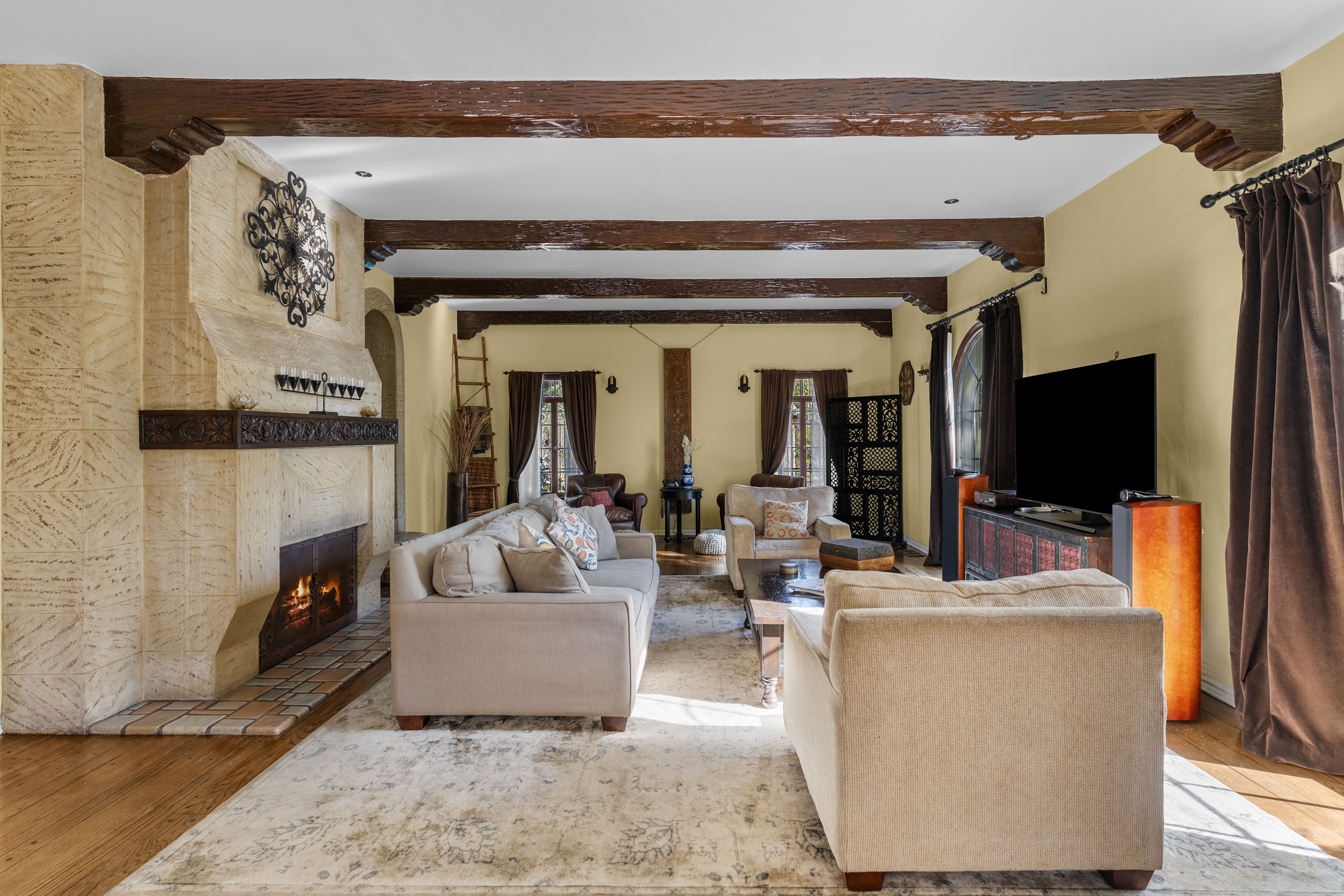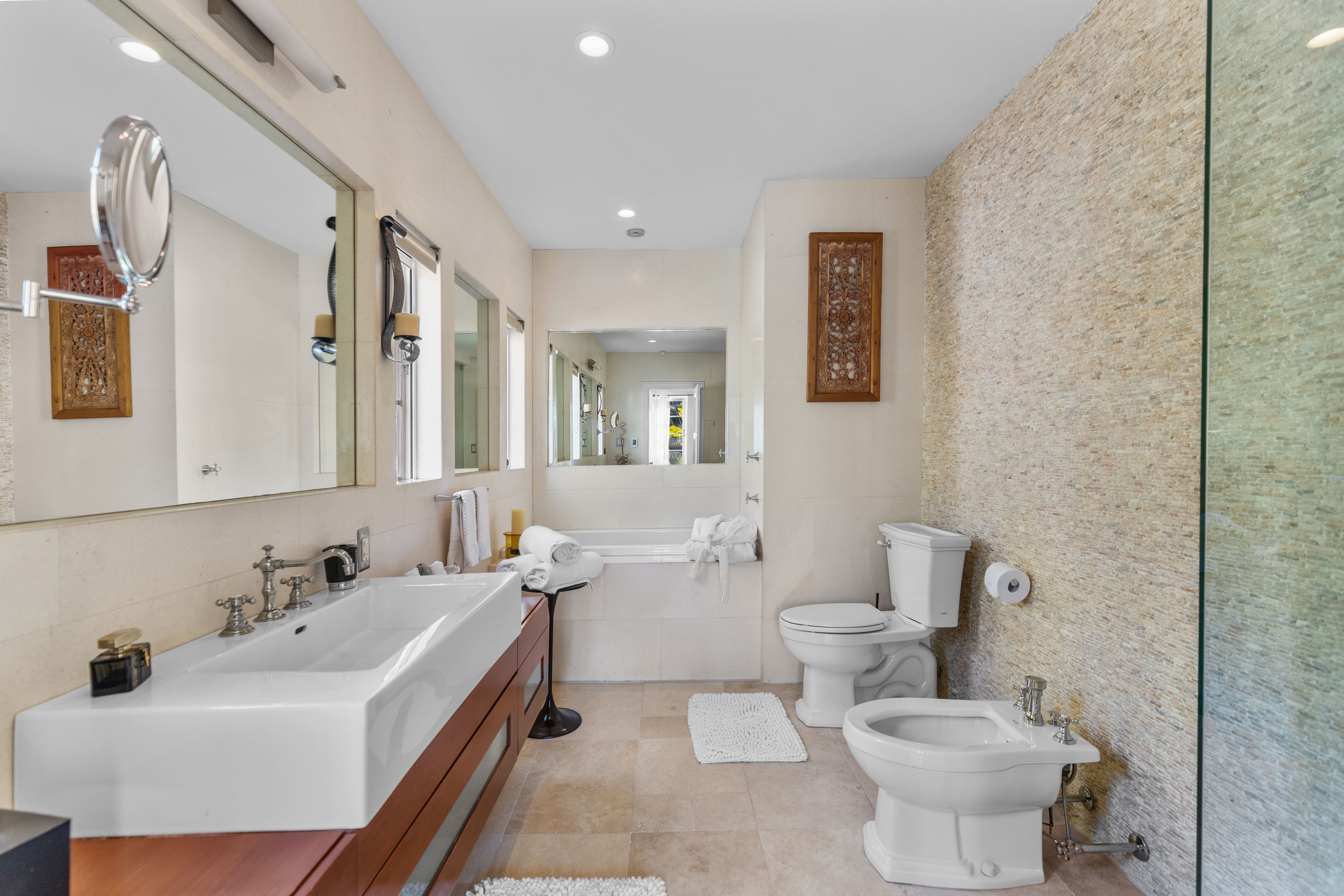 Experience the best of Los Angeles from this stunning Mediterranean-style estate in Griffith Park in the Hollywood Hills. Admire views of the Griffith Observatory from the breakfast nook, lounge on the shaded lanai, and swim in the heated saltwater pool. This is an idyllic base in LA – it feels secluded and peaceful but you’ll only be ten minutes from Hollywood’s nightlife, shopping, and excellent restaurants. The villa was originally built in 1931 and boasts carefully preserved architectural details including arched doorways, hand-carved mahogany doors, and decorative tiles. There's also a hidden recording studio where Ricky Martin, Kevin Bacon, and many other artists have laid down tracks.