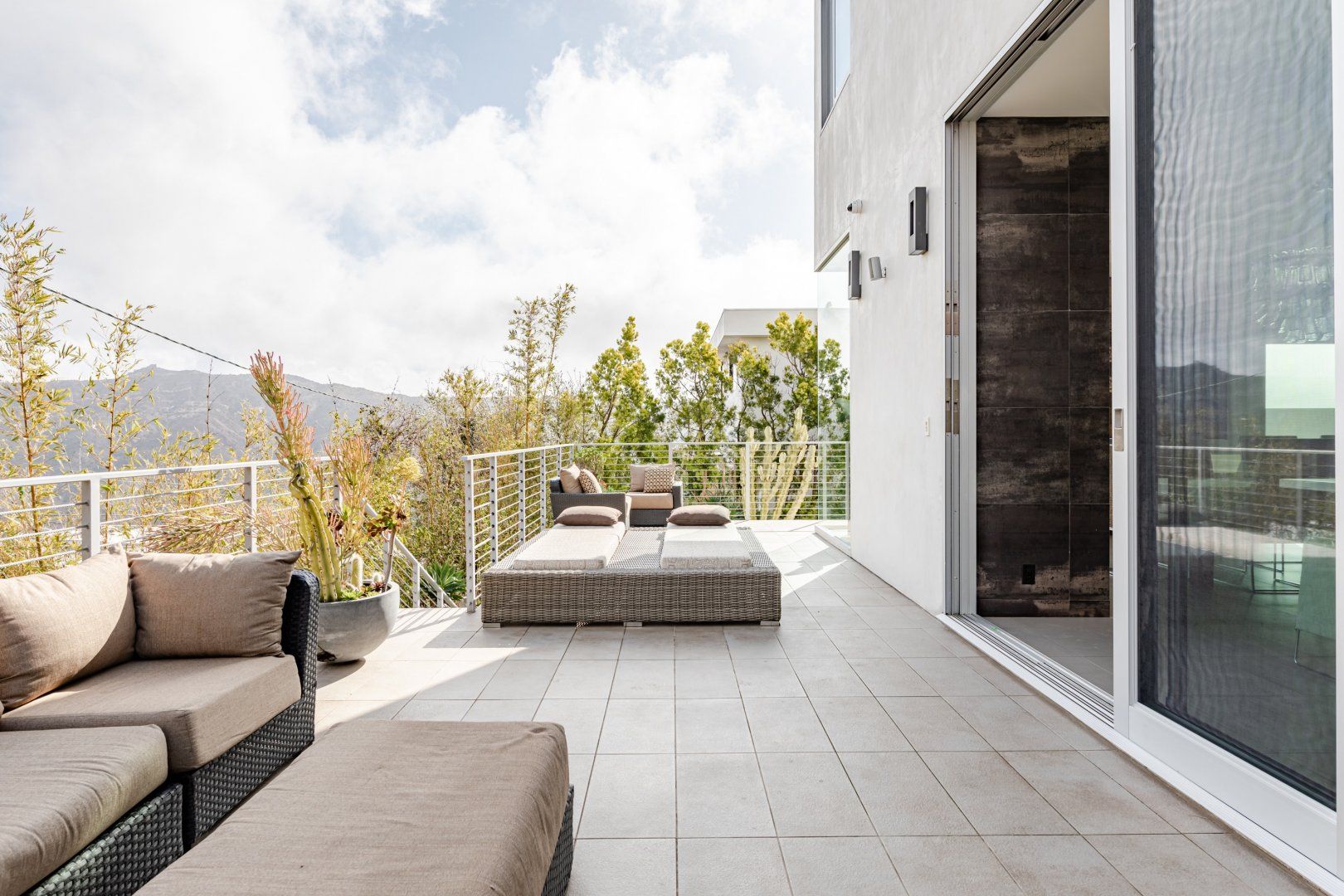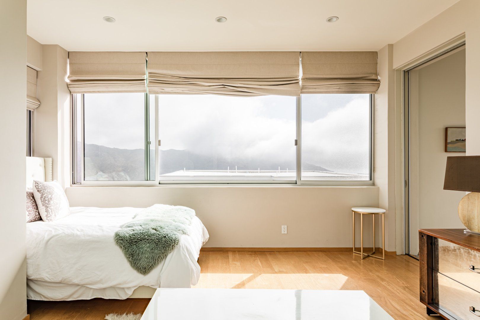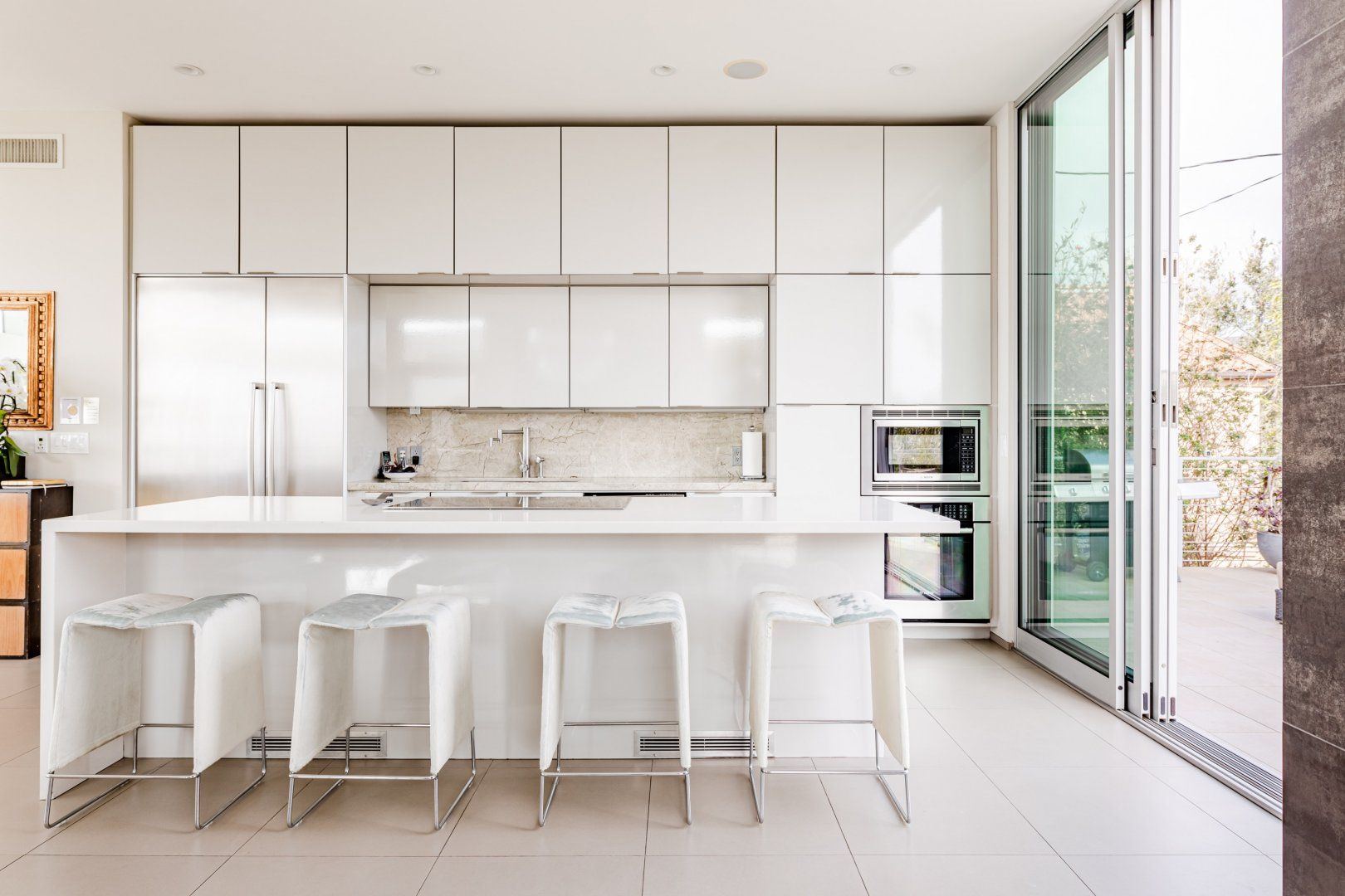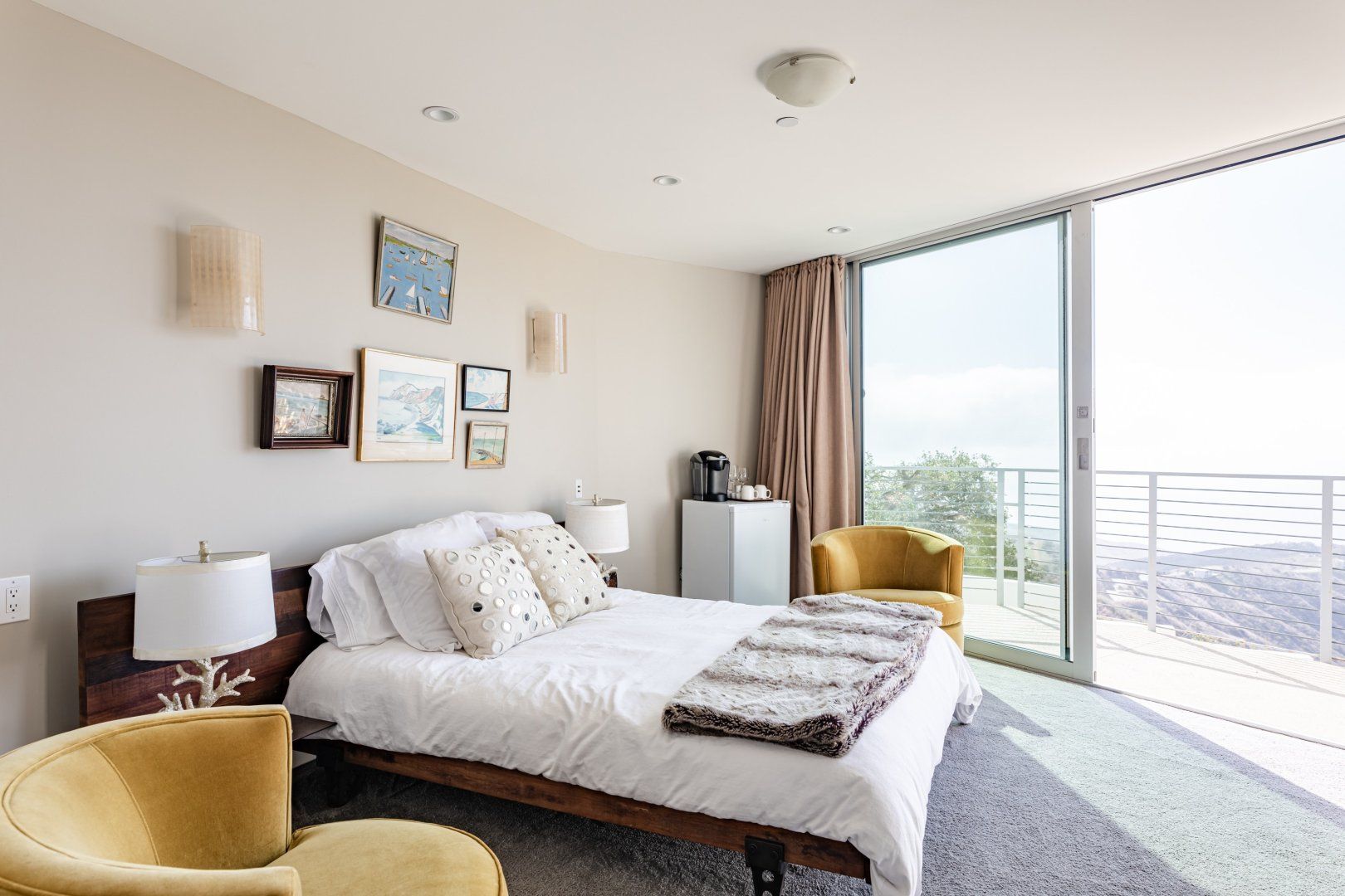 Radiating style, this architectural paradise is undoubtedly one of the more glamorous and unique homes in our Los Angeles edit. It's high above the Malibu surf, so you can soak up the sunshine while watching the changing moods of the Pacific. This home conquers indoor-outdoor living, with retracting glass doors opening up the interior to the elements, allowing you to feel the sea breeze while reading a good book from the floor-to-ceiling library. The open-concept kitchen, dining area and living room benefit from bespoke features like a marble fireplace, a dazzling chandelier, and an antique Asian wall screen.