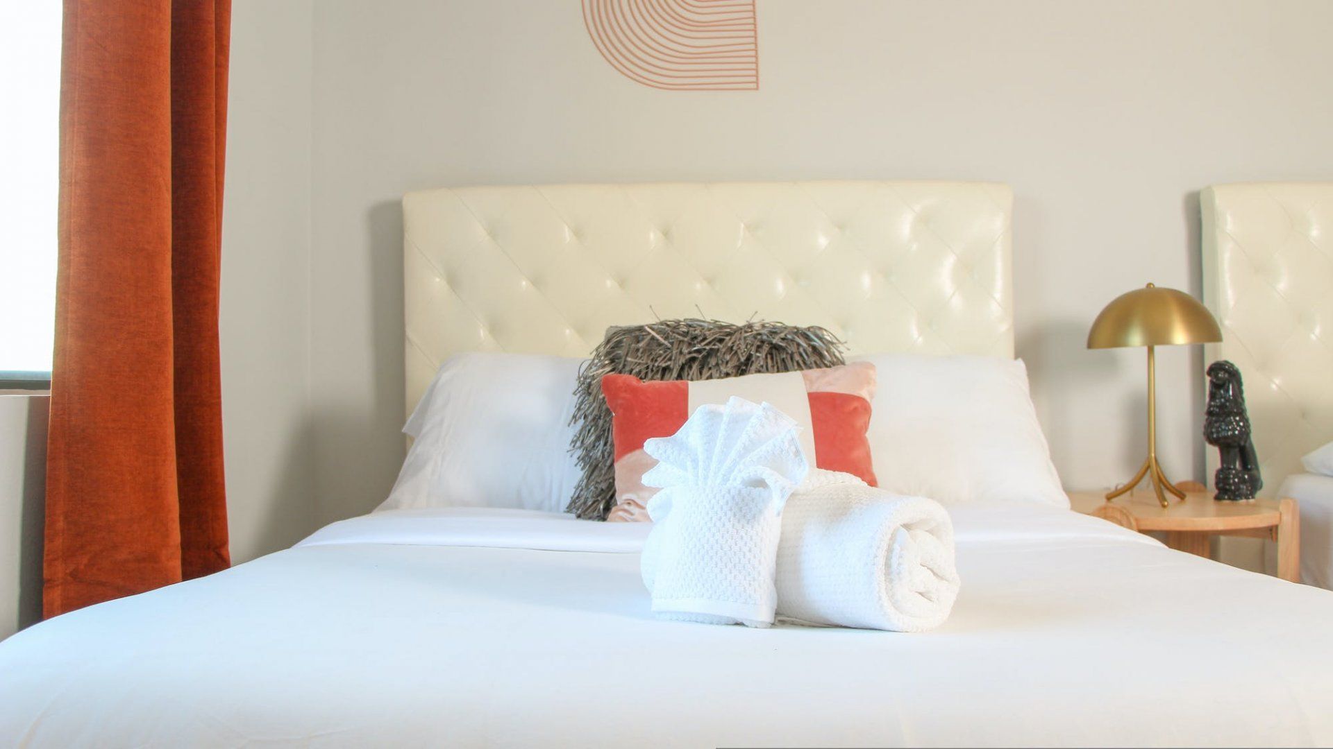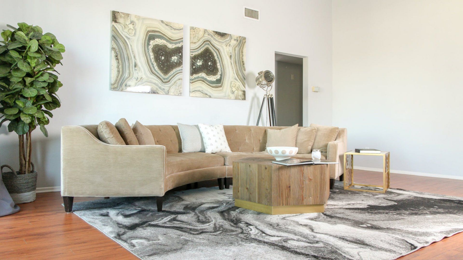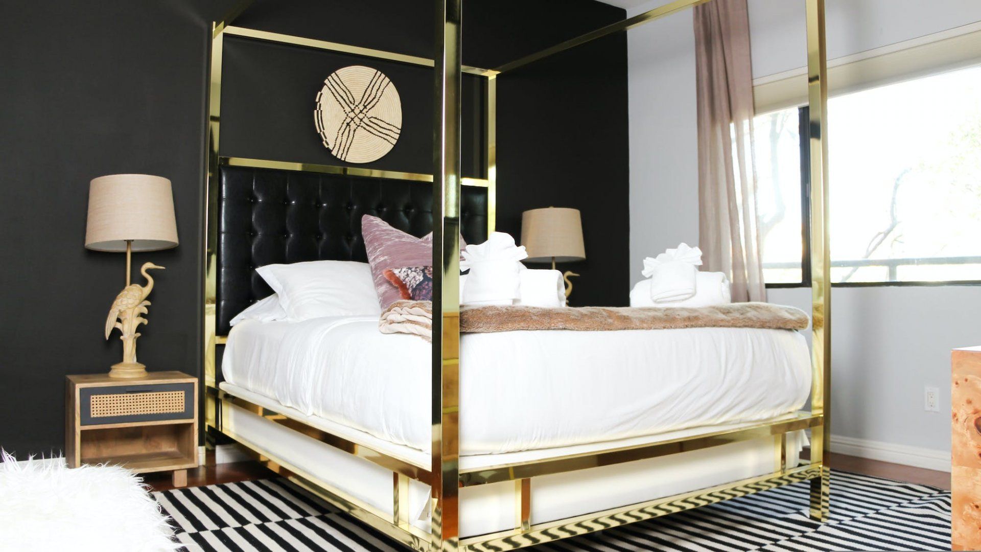 This two bedroom apartment has got a distinctly glamorous feel. The kitchen and bathrooms might be a bit underwhelming design-wise, but the rest of the home has glam factor galore - we love all the gold accents, and fabulous patterns and textures throughout.