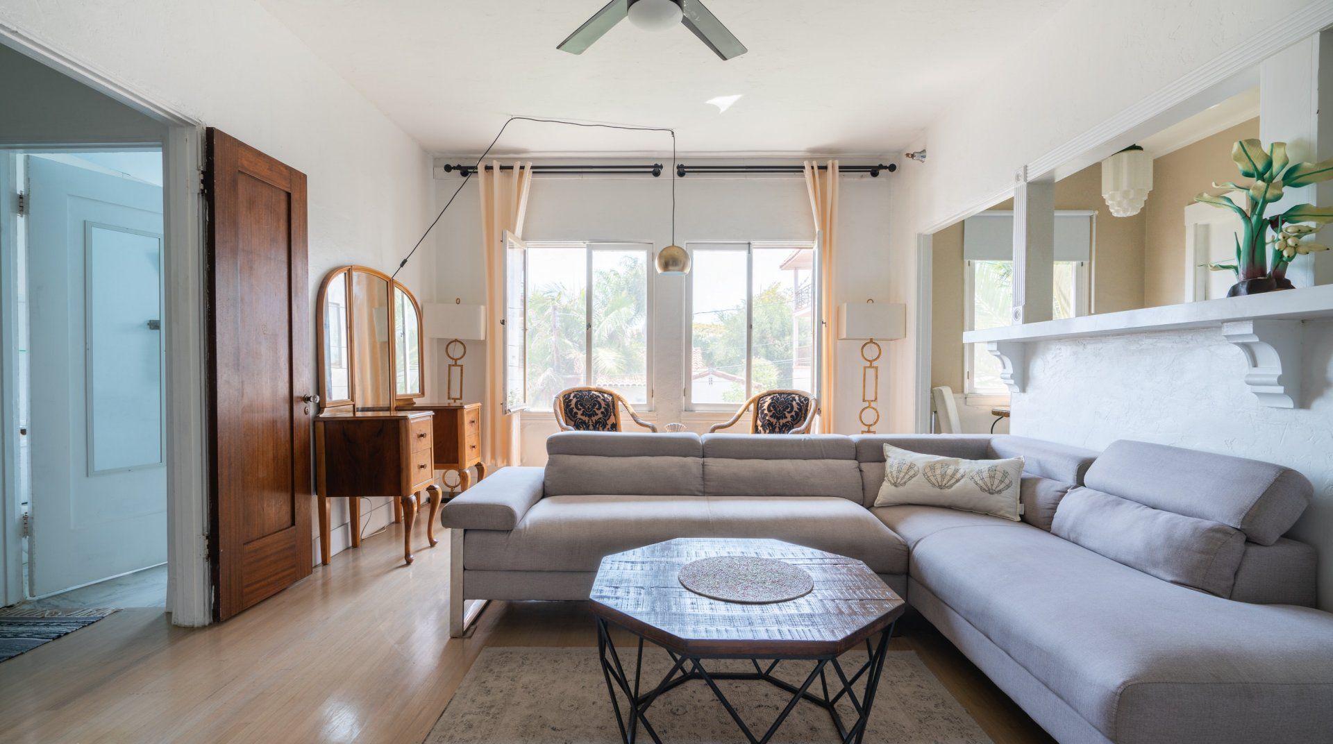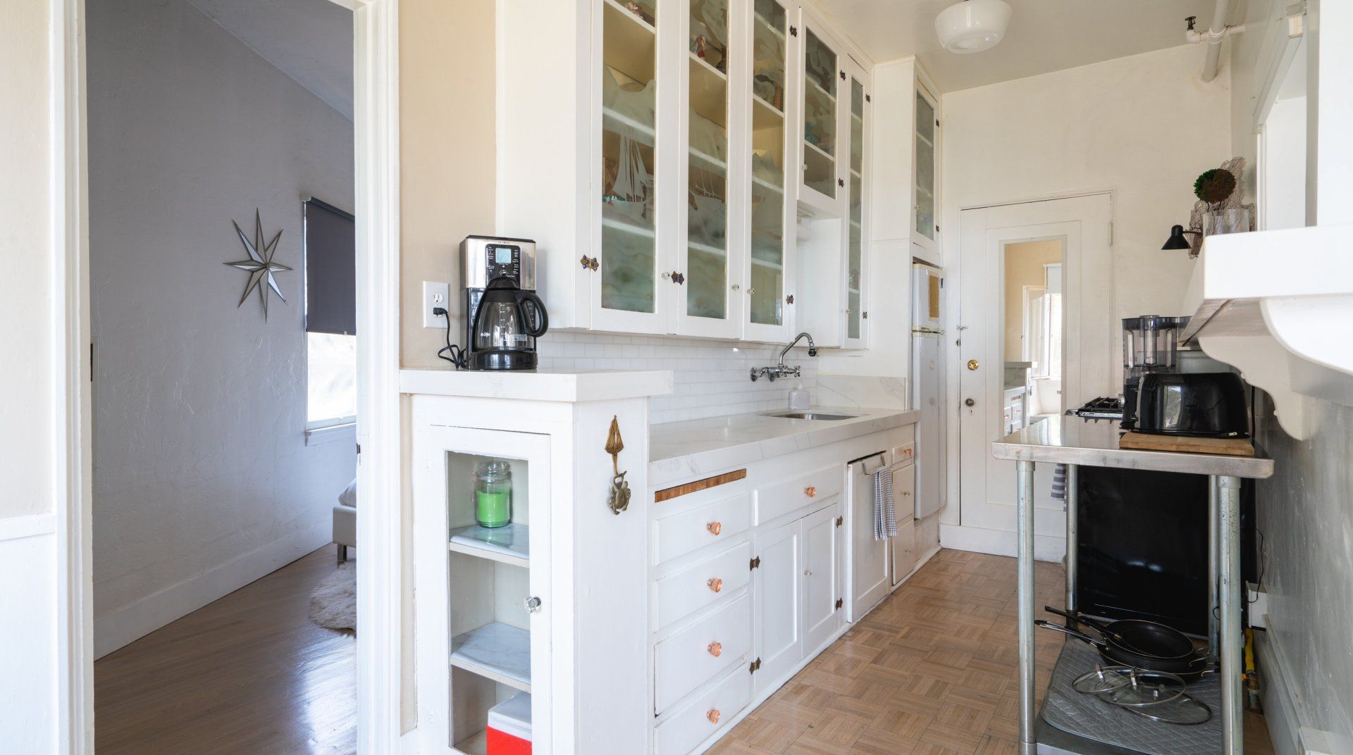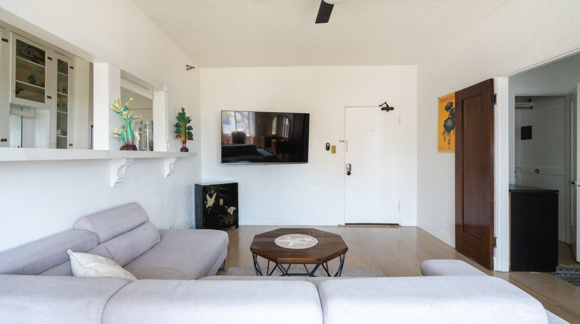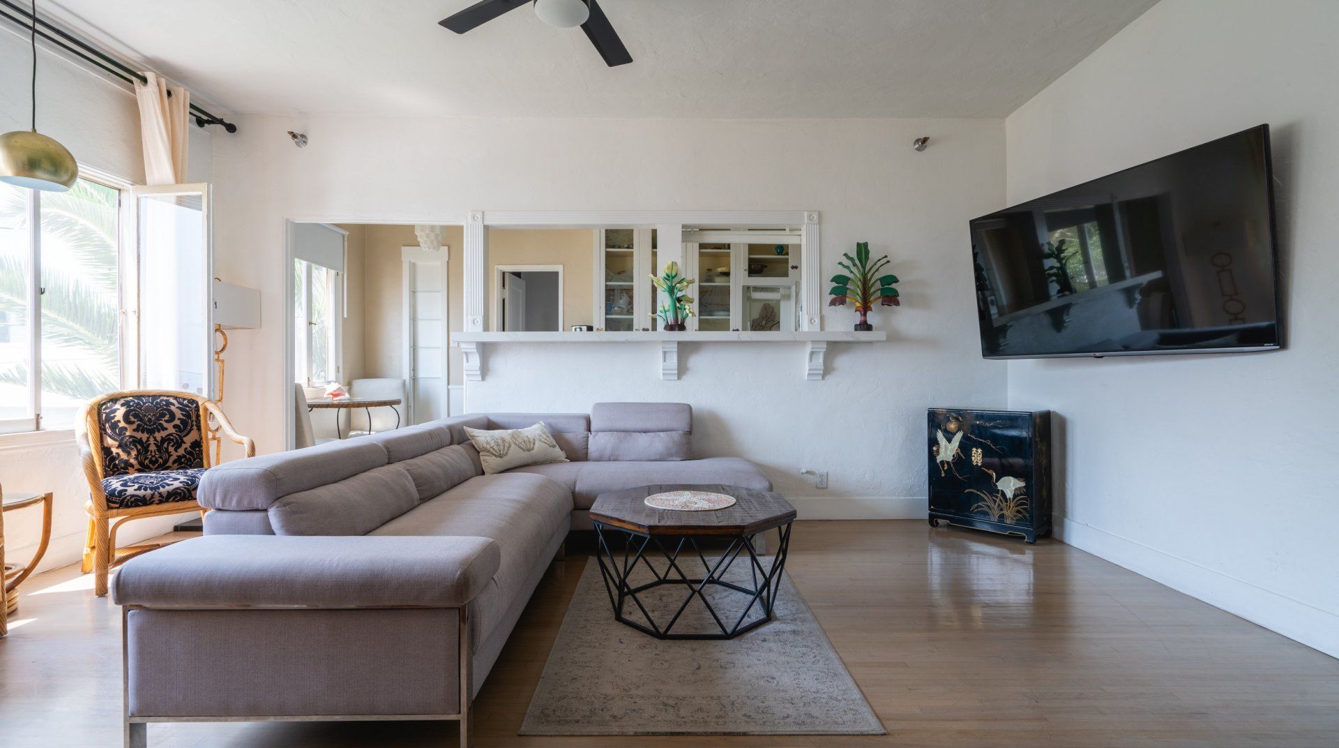 We love how the cutouts in the kitchen blend the space together with the living room for a more social atmosphere. Unwind after sandy days in the comfortable bedroom, and wash up in the pastel blue tiled bathroom. You’ll be in a great location for exploring this wonderful stretch of coast – the Cabrillo Marine Aquarium is just a four-minute walk, while the sprawling Angel Gate Park is only fourteen minutes away. By car, you can visit Long Beach in fifteen minutes or Redondo Beach in thirty. And if you’d like to explore the beautiful island of Catalina, San Pedro has a ferry station just ten minutes away by car from home.