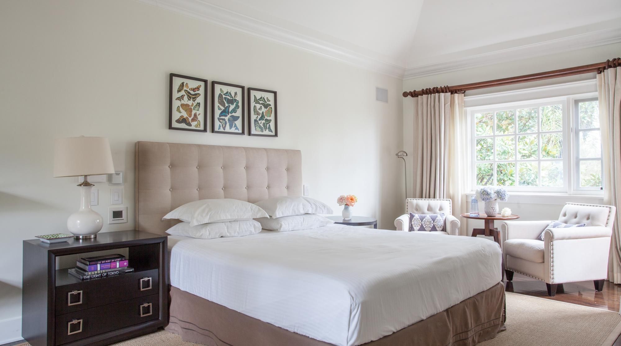We adore this fabulous home in a highly exclusive area of West Hollywood, a mere ten-minute walk away from Sunset Boulevard with its mix of iconic music venues and buzzing bars. We love the boutiques here, too – there are options to satisfy the most discerning of fashionistas. No less impressive than the location – this grand and spacious home has a pared-back, elegant style and is flooded with natural light. The heated pool is a real showstopper, surrounded by chic white sun-loungers and a super glamorous canopied double daybed. For the more energetic, there's even a tennis court if you fancy a game. The upper terraces have killer views of the infamous Hollywood Hills – so grab a drink, take a seat and congratulate yourself on such a great find. This place is designed for entertaining – at night, gather around the fire pit or have a glass of champagne in the hot tub. Groups of friends or multi-generational families will be glad to know there's a separate guest house here for extra privacy. So, if you're looking for old school glamour and elegance, with room to spread out – this home is ideal.
