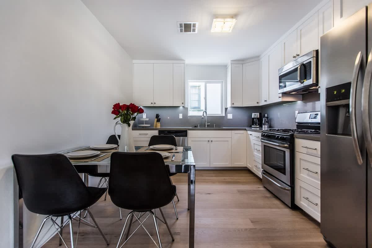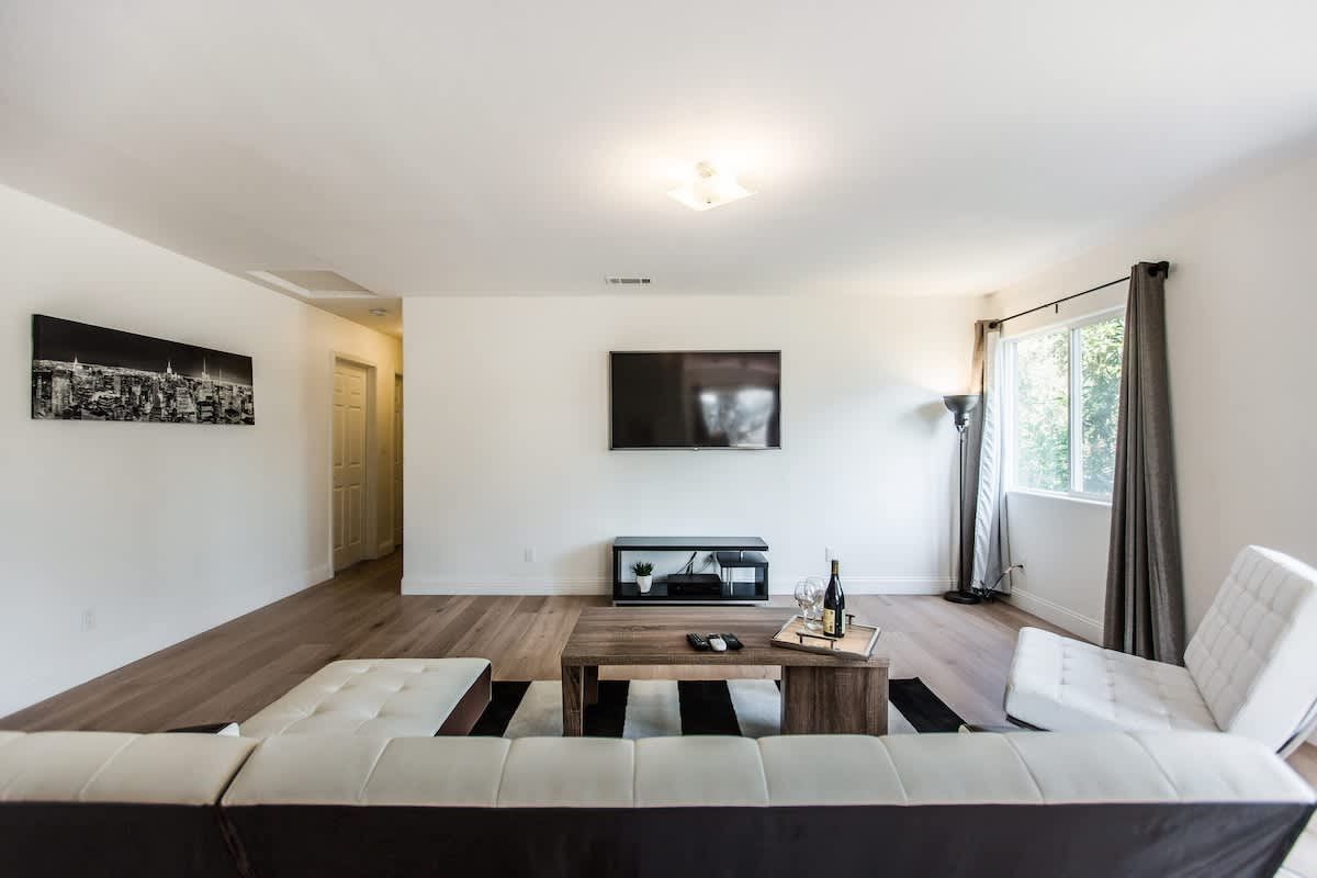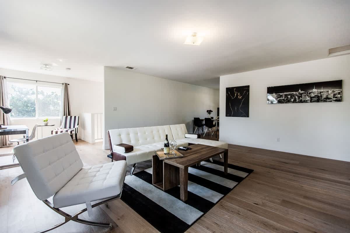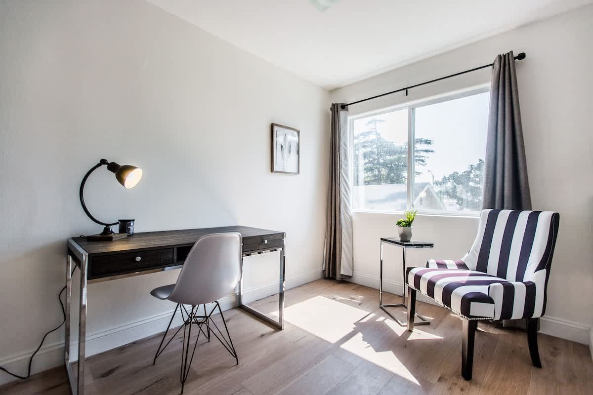 This apartment is set in a peaceful neighbourhood in the western part of Los Angeles, but it's still within reach of all the city's best sights. So much so that you can even see the Hollywood sign from the living room window. You're less than a ten-minute drive from Downtown LA, while a selection of bars and restaurants are within walking distance. Inside, the interiors are fairly simple, and at full capacity, one guest will sleep on the sofa bed in the living area. However, it's perfectly comfortable for long or short stays, plus the shared garden offers an additional place to relax.