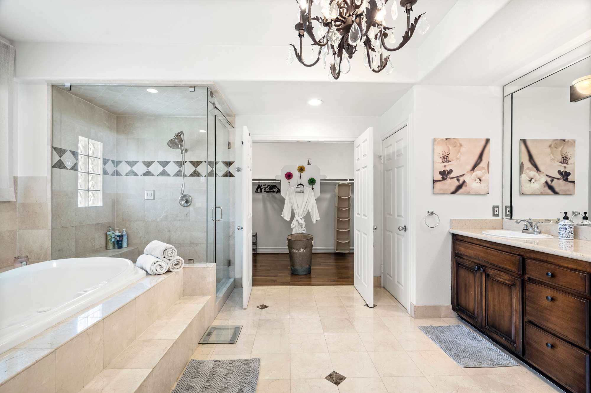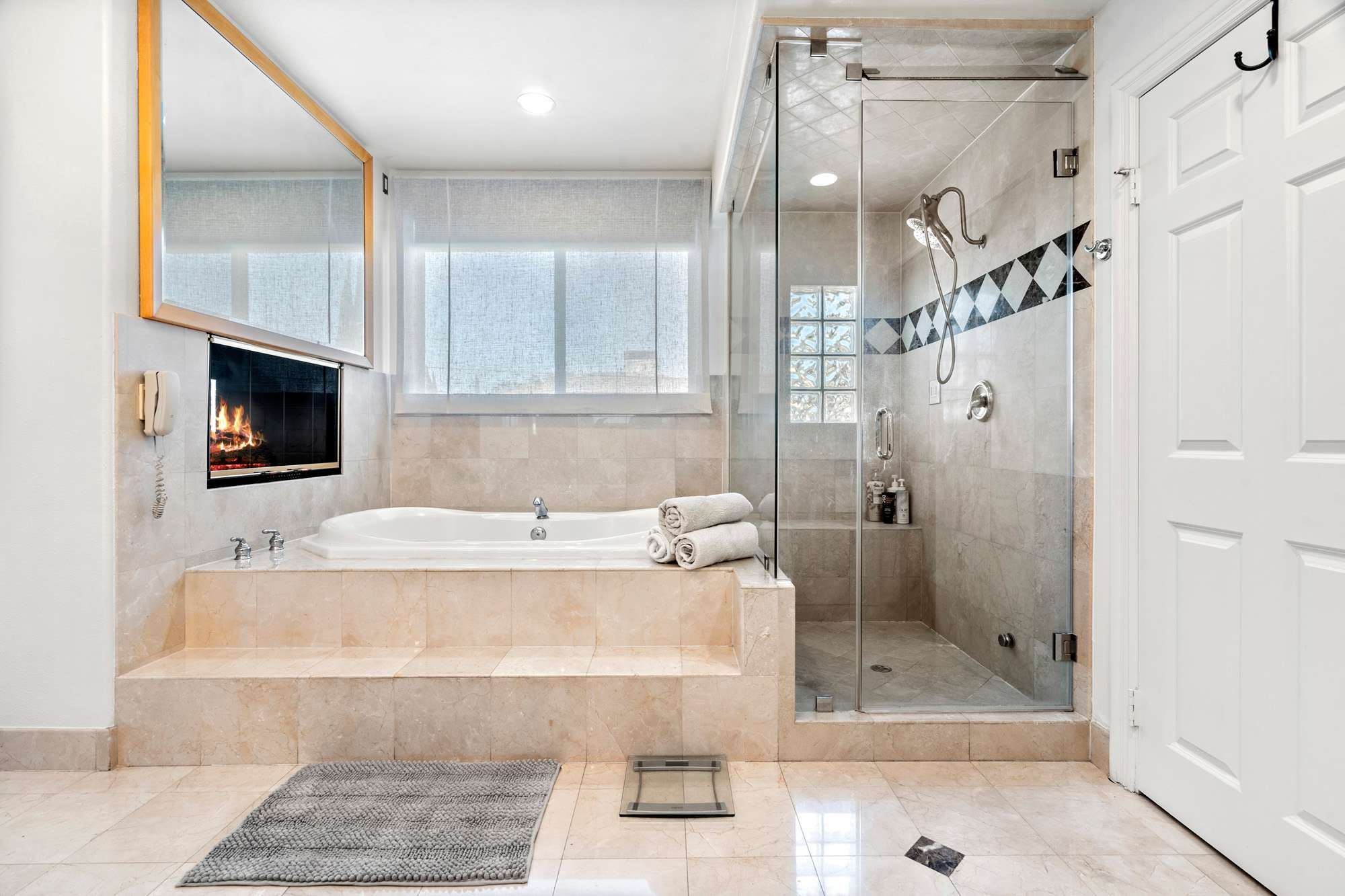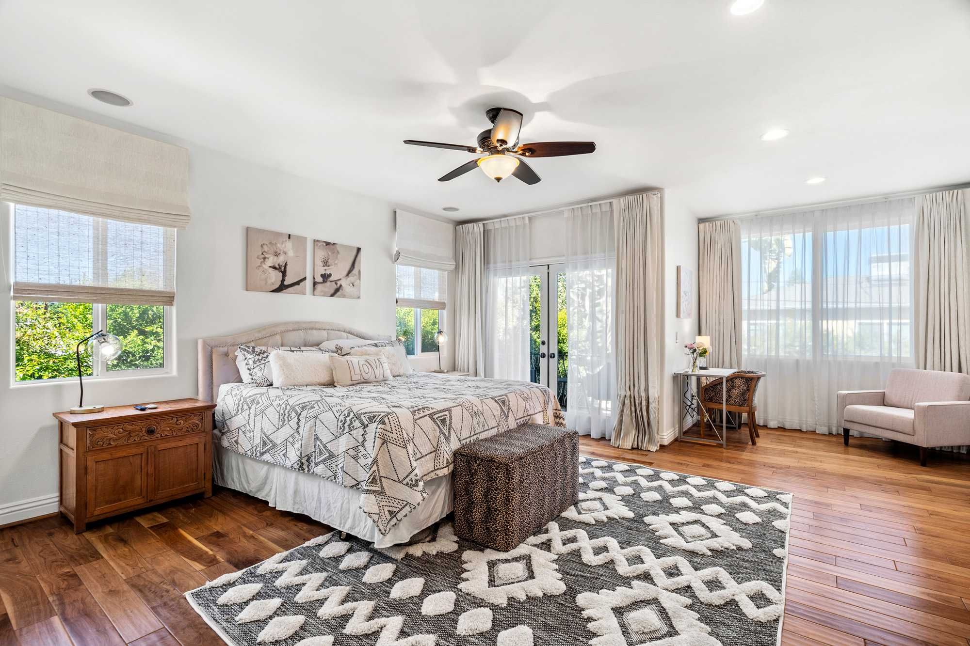 This Sherman Oaks home is an excellent Los Angeles base. Ideal for entertaining, the house has an open-concept layout, with a chef’s kitchen that makes dining in a treat. Outside, you’ll find a private swimming pool and plenty of space to soak up the sun – there’s also a built-in barbecue. We love the fireplaces, high ceilings, and how bright the home is. The main bedroom suite is a delight, with a stunning en-suite bathroom designed for relaxation.