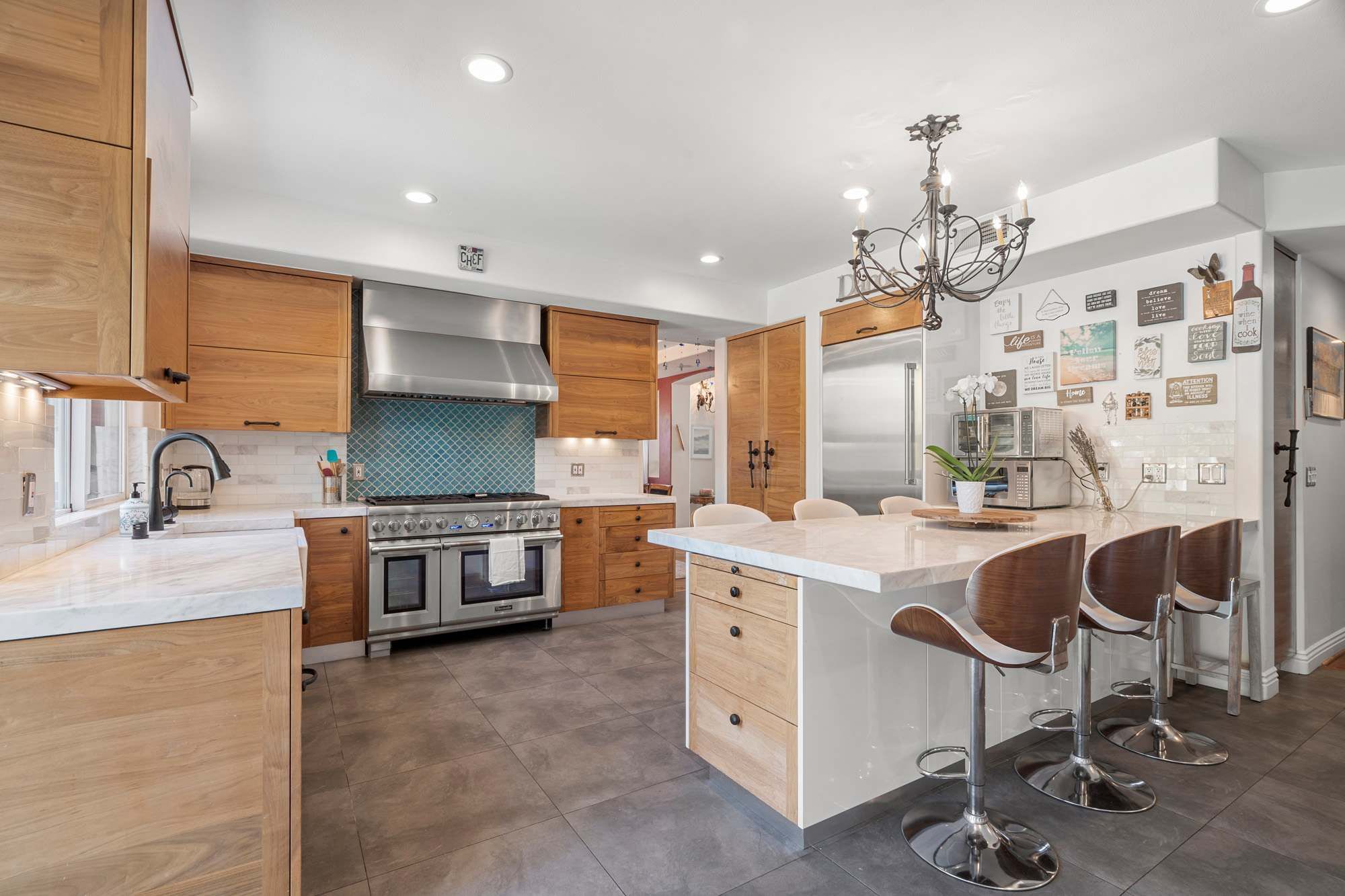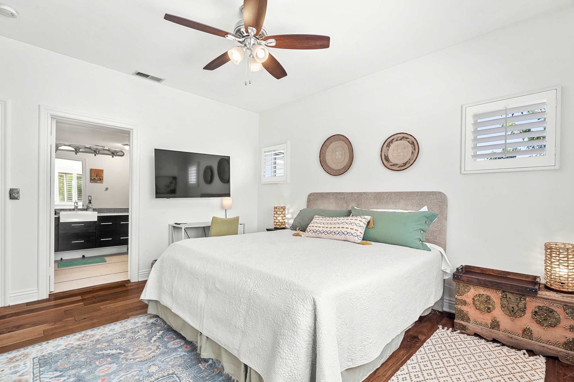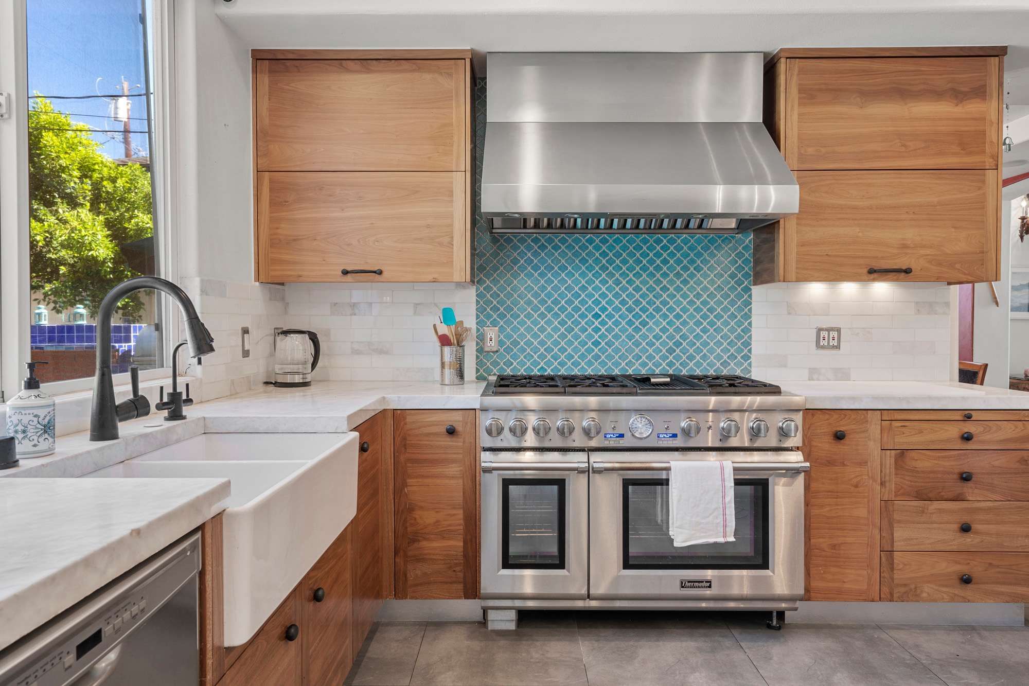 This Sherman Oaks home is an excellent Los Angeles base. Ideal for entertaining, the house has an open-concept layout, with a chef’s kitchen that makes dining in a treat. Outside, you’ll find a private swimming pool and plenty of space to soak up the sun – there’s also a built-in barbecue. We love the fireplaces, high ceilings, and how bright the home is. The main bedroom suite is a delight, with a stunning en-suite bathroom designed for relaxation.