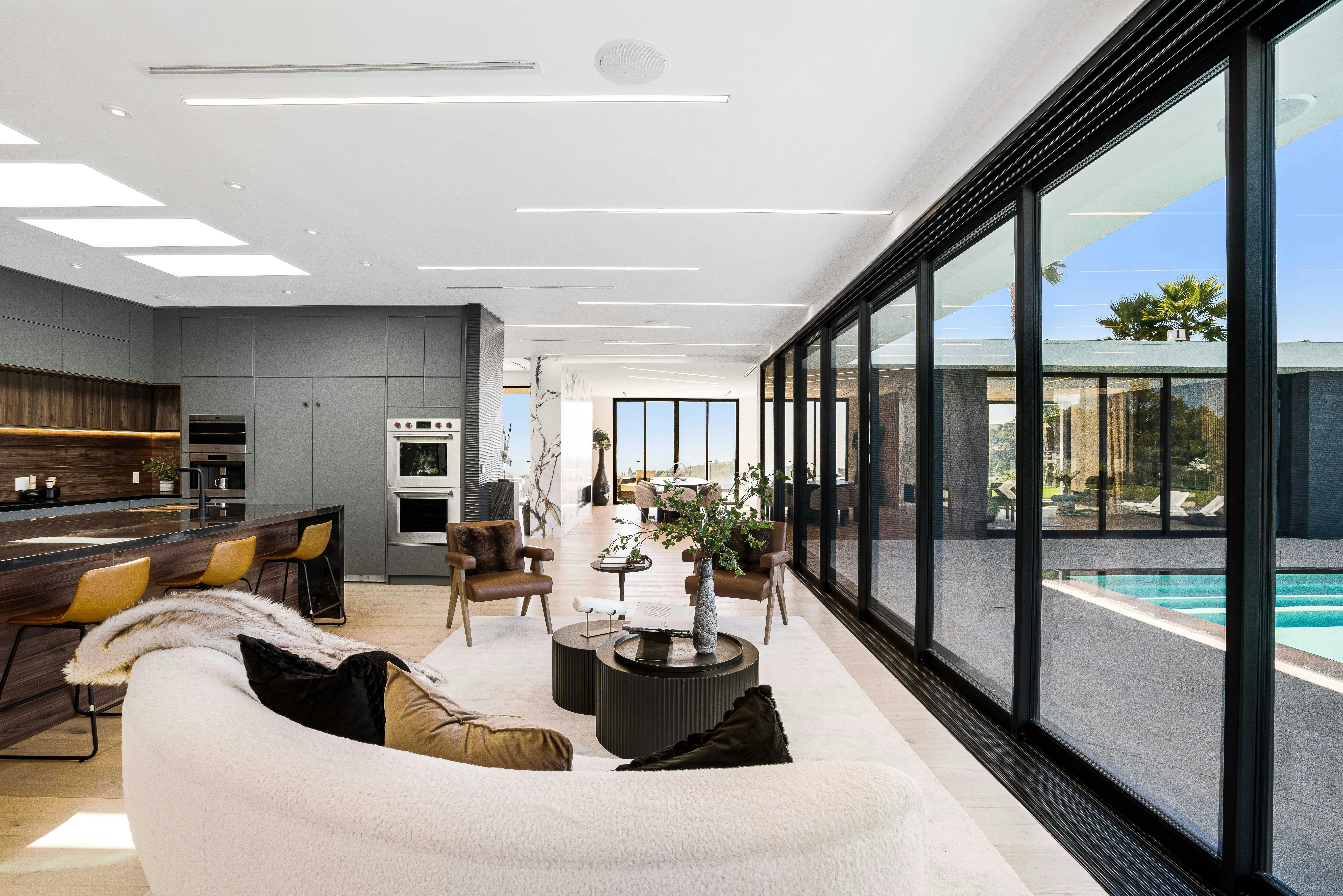 This Hollywood Hills home ticks all of our boxes and then some. For starters, the garden was made for outdoor living. There's a swimming pool with a built-in spa, a balcony with mountain views, and a summer kitchen where you can barbecue all night long. Indoors, bi-folding doors provide easy access to the sun-dappled terraces. Each room is bright, breezy, and extremely stylish – our favourites are the state-of-the-art kitchen and lavish main suite. The cherry on top is the home theatre, a perfect spot for watching films with the whole family.
