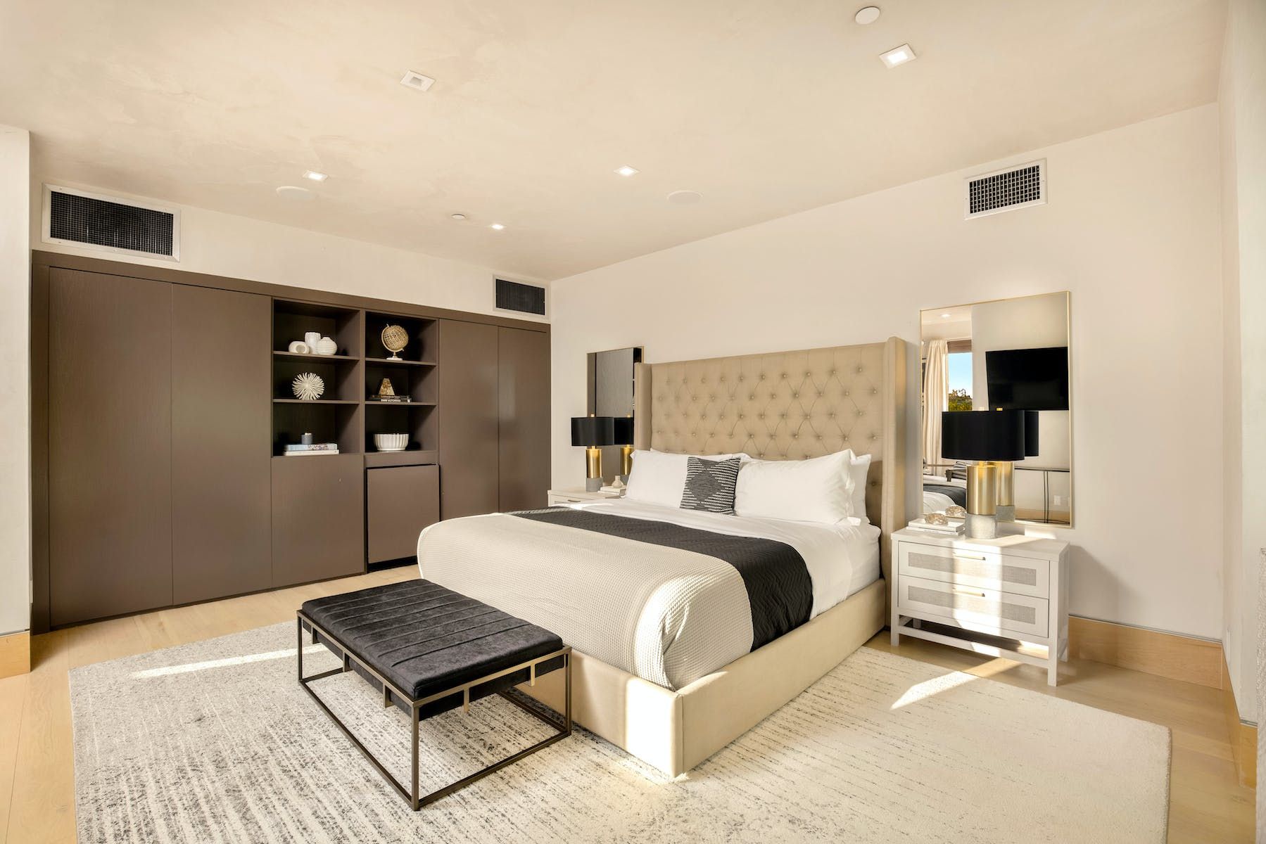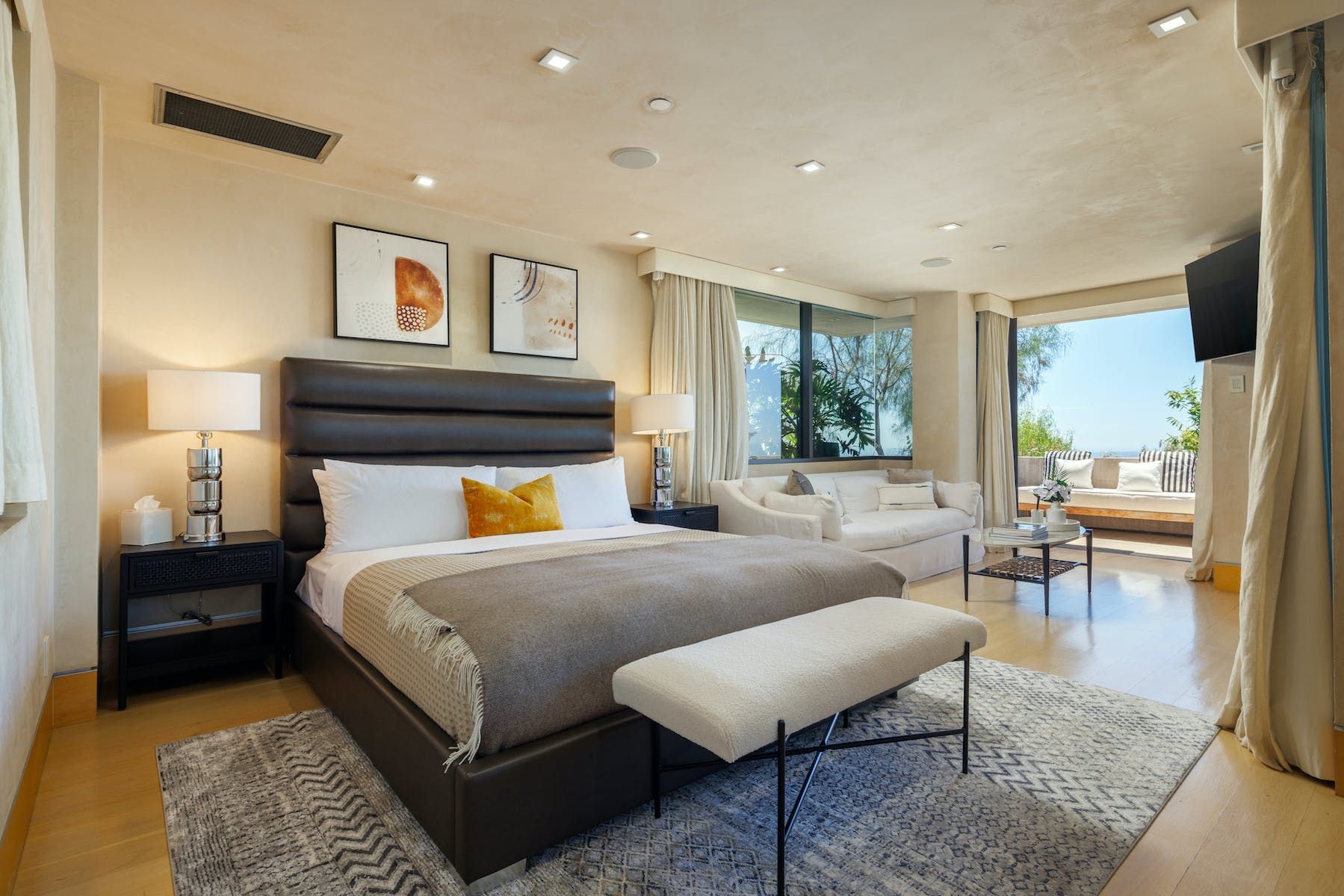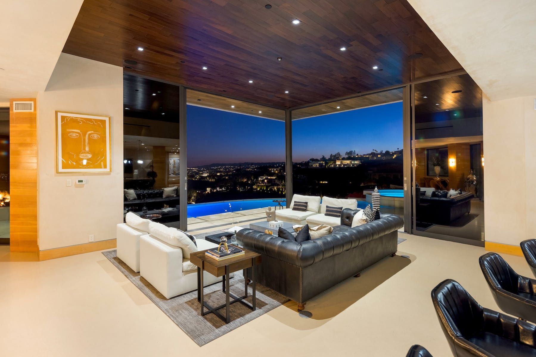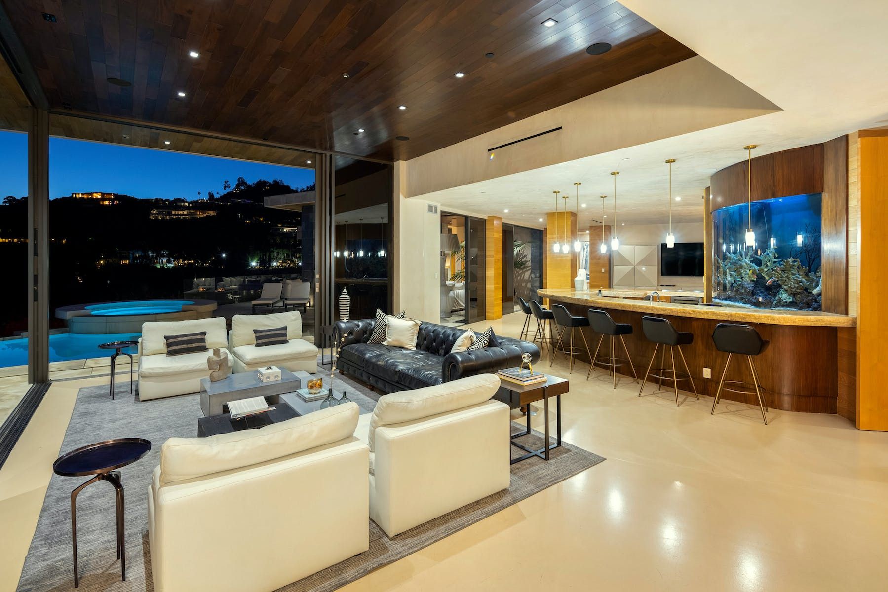 Prepare yourself for a life less ordinary at this achingly cool home of epic proportions, nestled in the lush hills of the coveted neighbourhood, The Birds Streets. With jaw-dropping views and yet just three miles from the glamour of Rodeo Drive, it’s easy to see why Leonardo DiCaprio, Tobey Maguire, Jodie Foster, and many more celebrities take up residence here. Inside, there’s an airy, luminous feel throughout. An impressive bar wrapping around an enormous aquarium, and a futuristic grand piano, bring all the Californian vibes. Whilst outside, heat lamps, a fire pit, and a hot tub set around the beautifully landscaped sun terraces turn up the heat. But let’s talk about those sprawling views out across the infinity pool towards downtown LA - seen from practically every terrace, bedside, freestanding bathtub, or rainfall shower – of which there are many. With each seriously stylish bedroom boasting private en-suites and balconies and spread out across different floors, this home would perfectly suit groups of friends or family coming together. Whilst the dedicated office space will be a bonus for anyone looking to work in this playground of the rich and famous. Just be warned – it’s highly likely you might never want to leave this place…