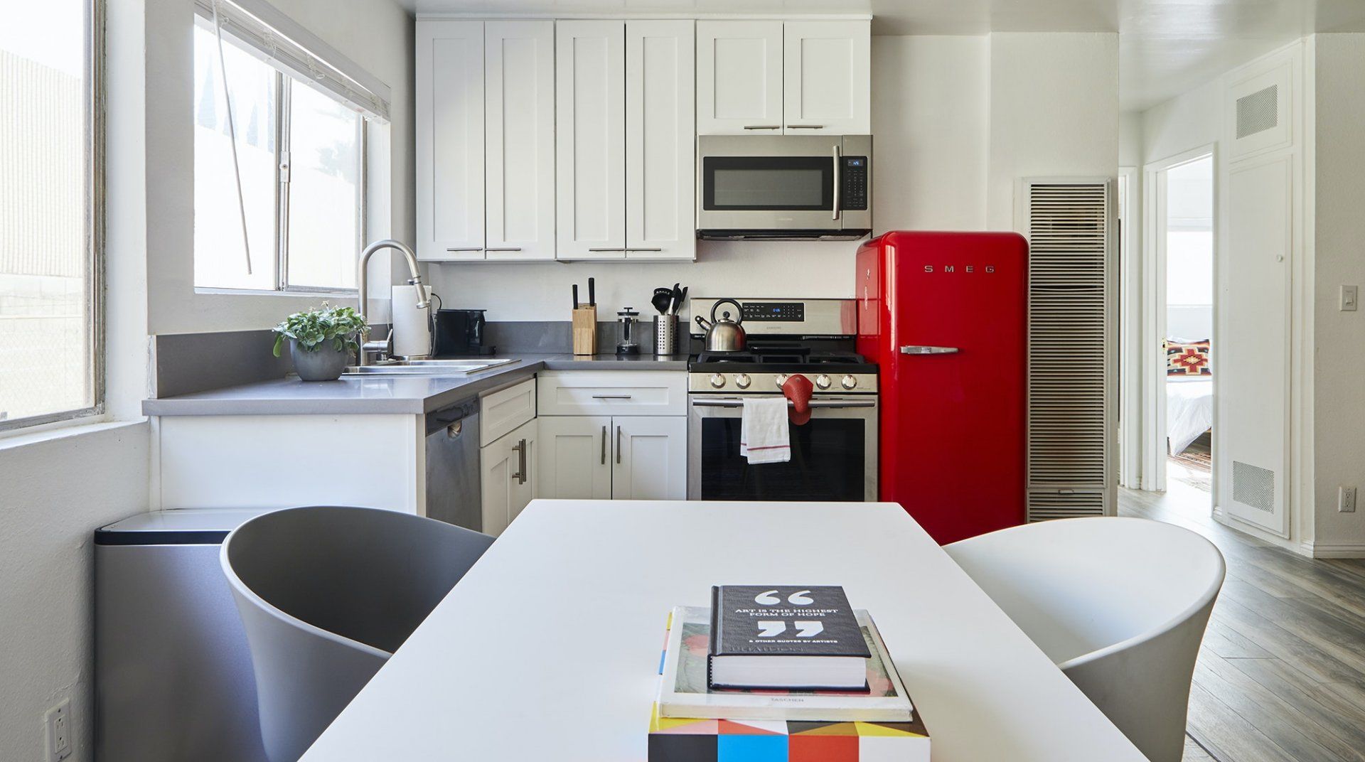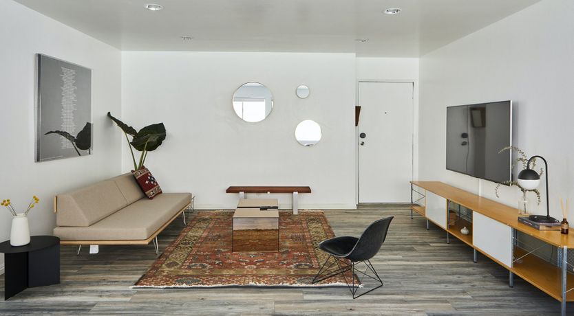This small apartment might not be the most high-end of our homes but it's freshly-feeling, stylishly decorated and a pleasant space to spend time in. Its immediate neighbourhood is on the gritty side, and you may be able to hear noise from the street from inside the home but it's a nice, well-priced base, with lots of natural light and high quality appliances.